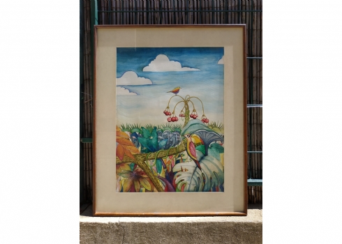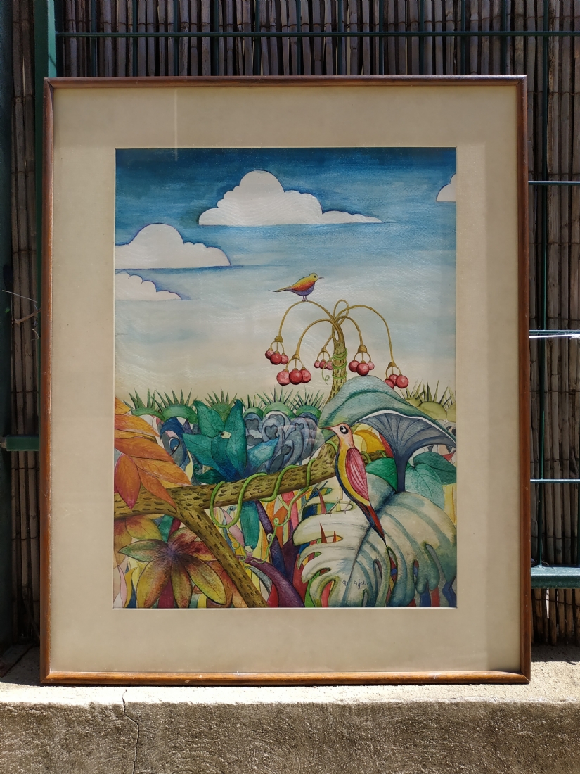 מספר הפריט בקטלוג 27רות תותלה פרויד - ציור ישן, אקוורל על נייר, חתום: 'תותלה' ומתוארך לשנת: 1991, מידות: 60X44 ס"מ.