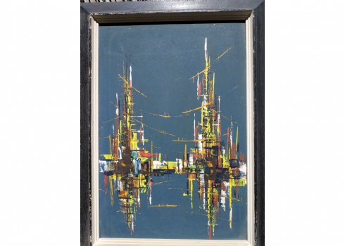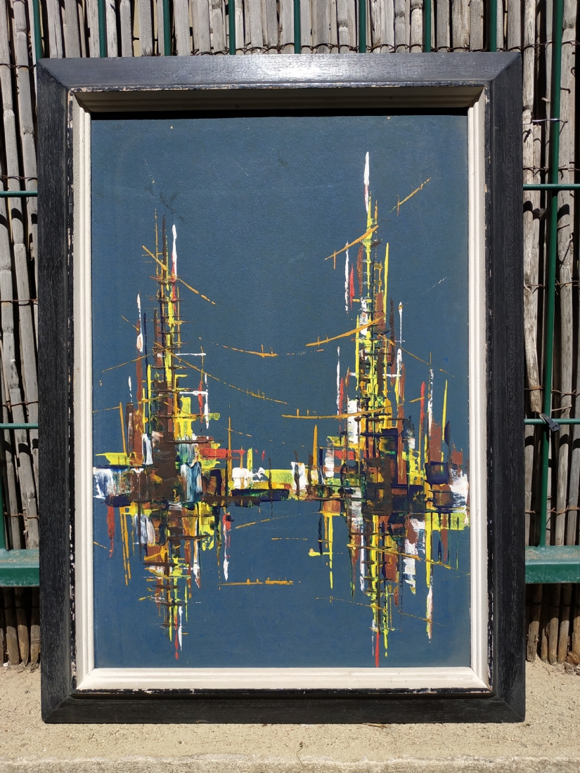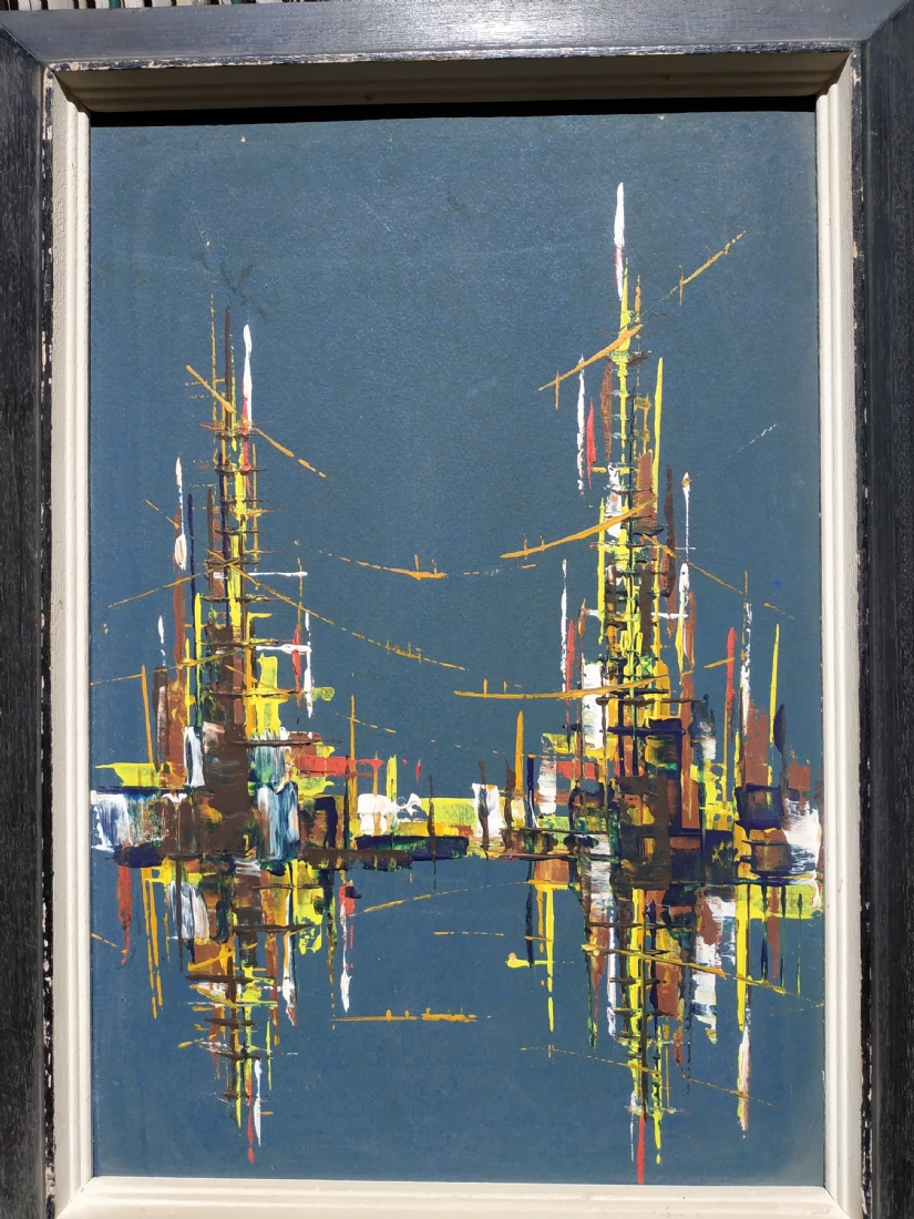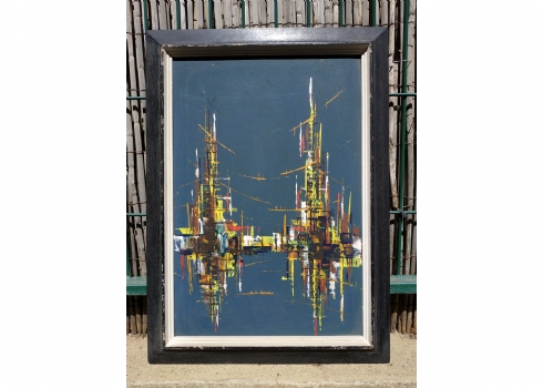 'אוניות בנמל' - ציור ישן, שמן על לוח, לא חתום, מידות: 47X32 ס"מ.