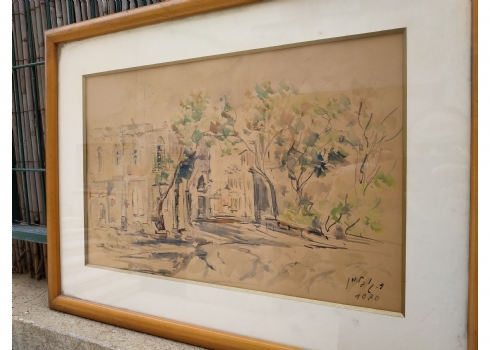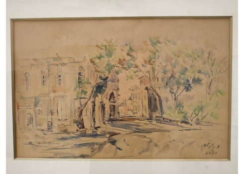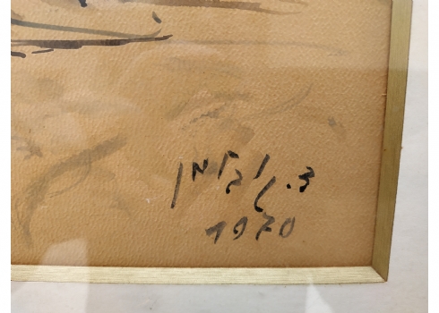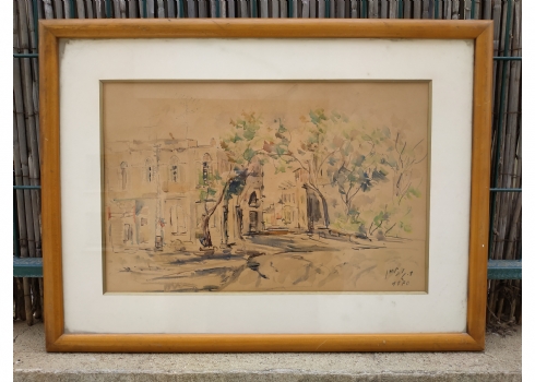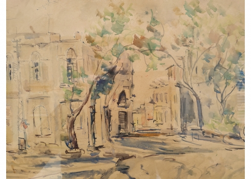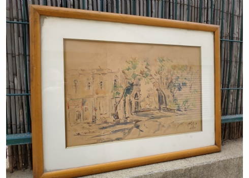 מספר הפריט בקטלוג 117'רחוב בתל אביב' - ציור ישן, רישום טוש ואקוורל על נייר, חתום 'גובלמן' (ד. או צ. גובלמן - נשמח לכל מידע על אמן או אמנית זו), מתוארך: 1970, מידות: 33X48 ס"מ.