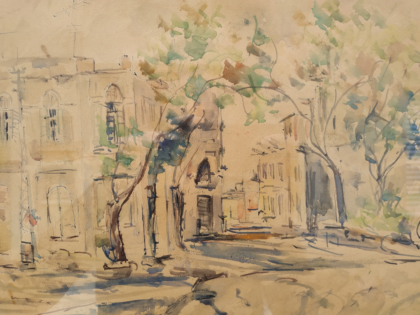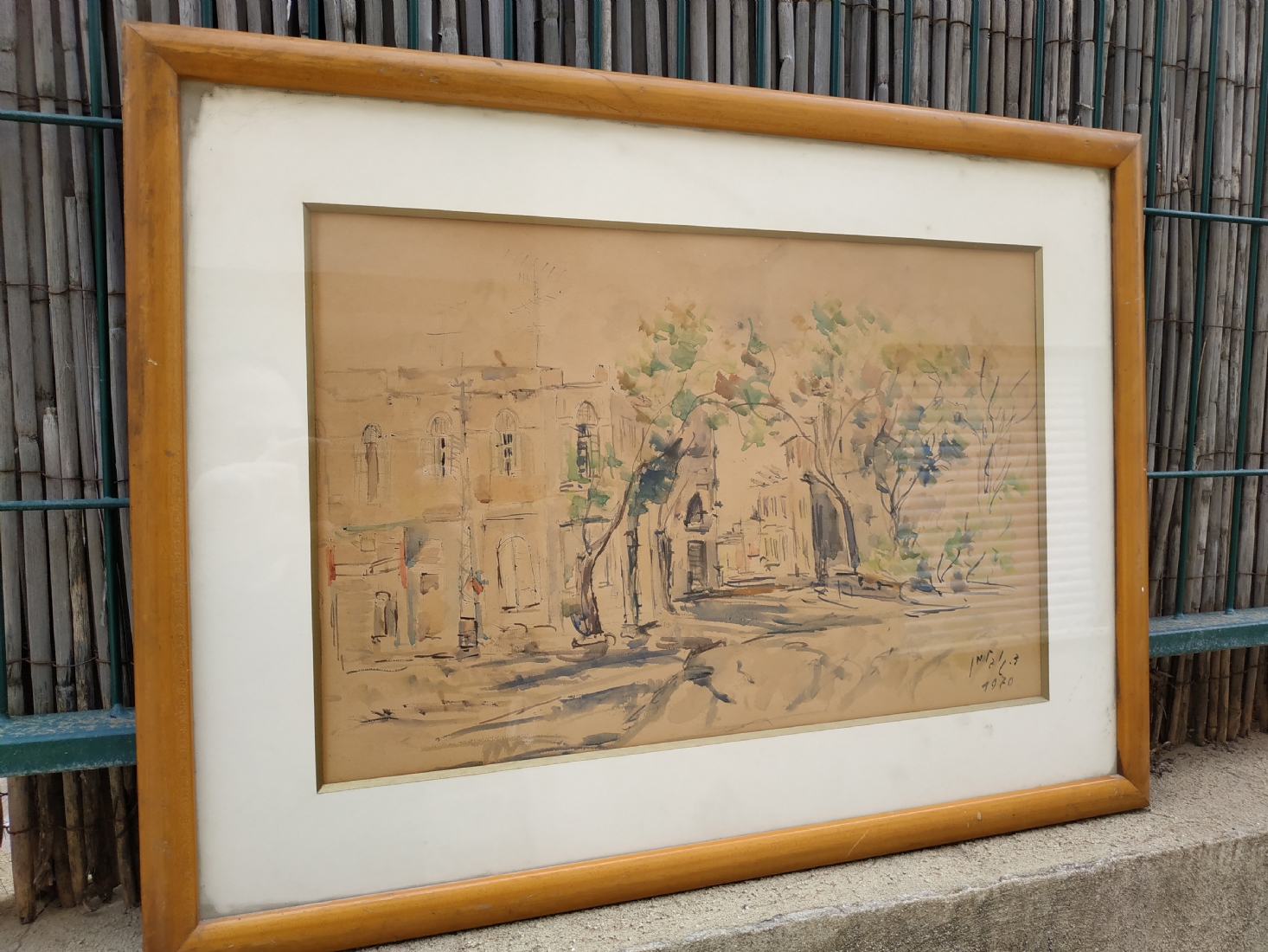 'רחוב בתל אביב' - ציור ישן, חתום 'גובלמן'