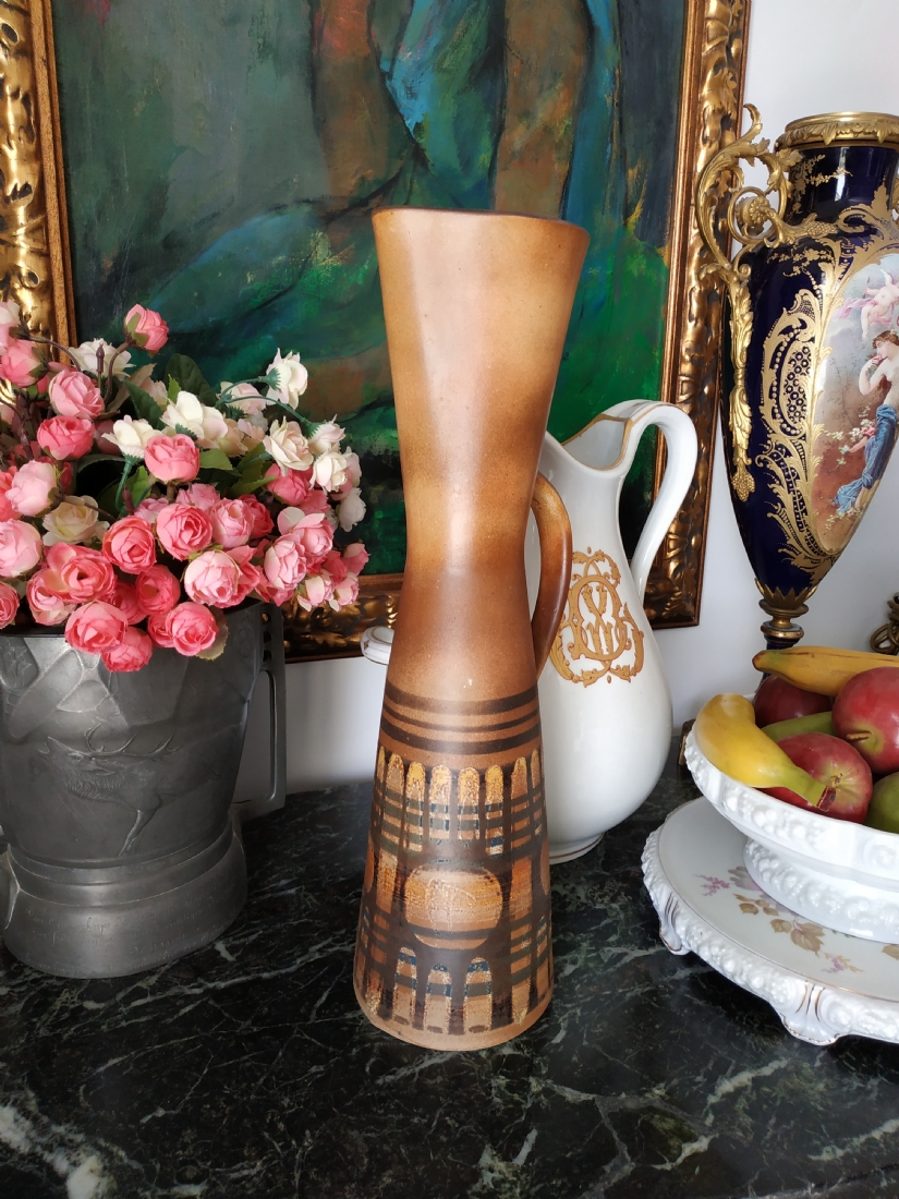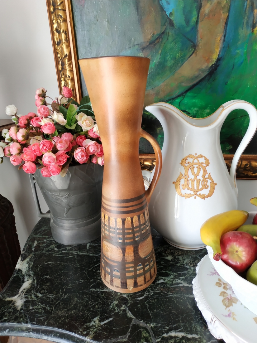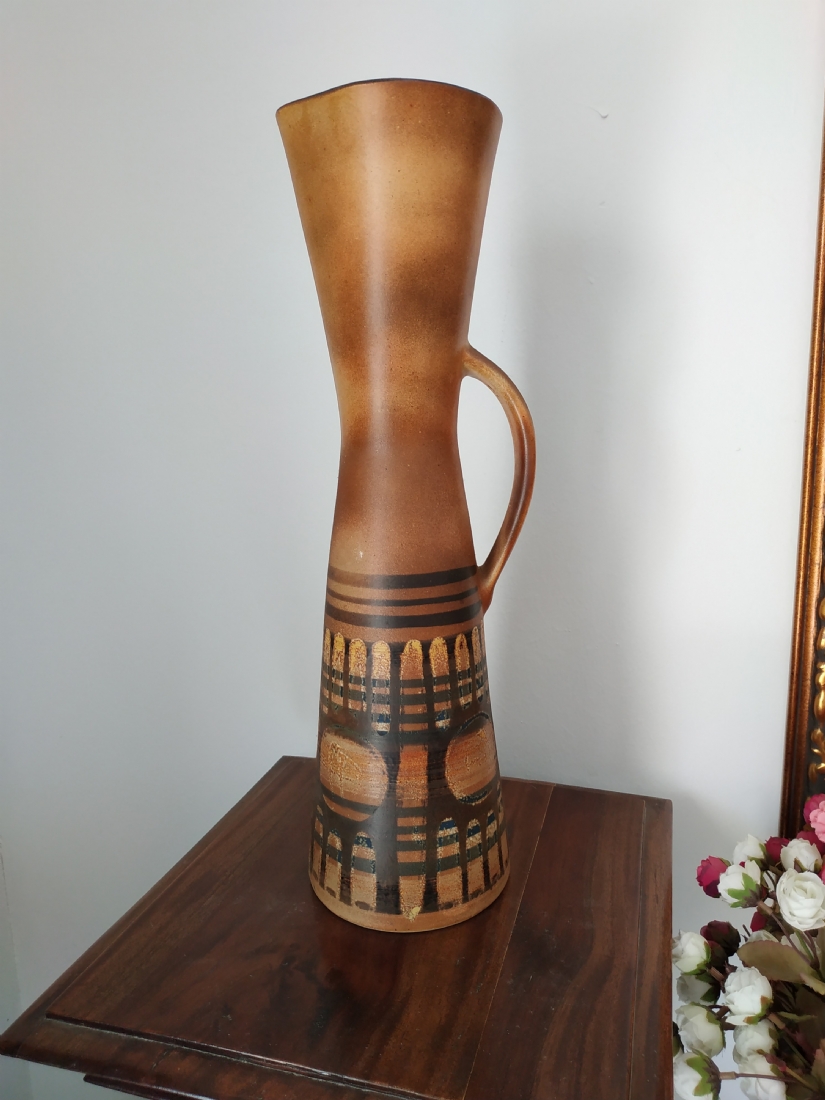 לאספני קרמיקה ישראלית ופרטי ישראליאנה - כד קרמיקה גדול מתוצרת: 'לפיד', מעוטר וחתום, גובה: 47 ס"מ.