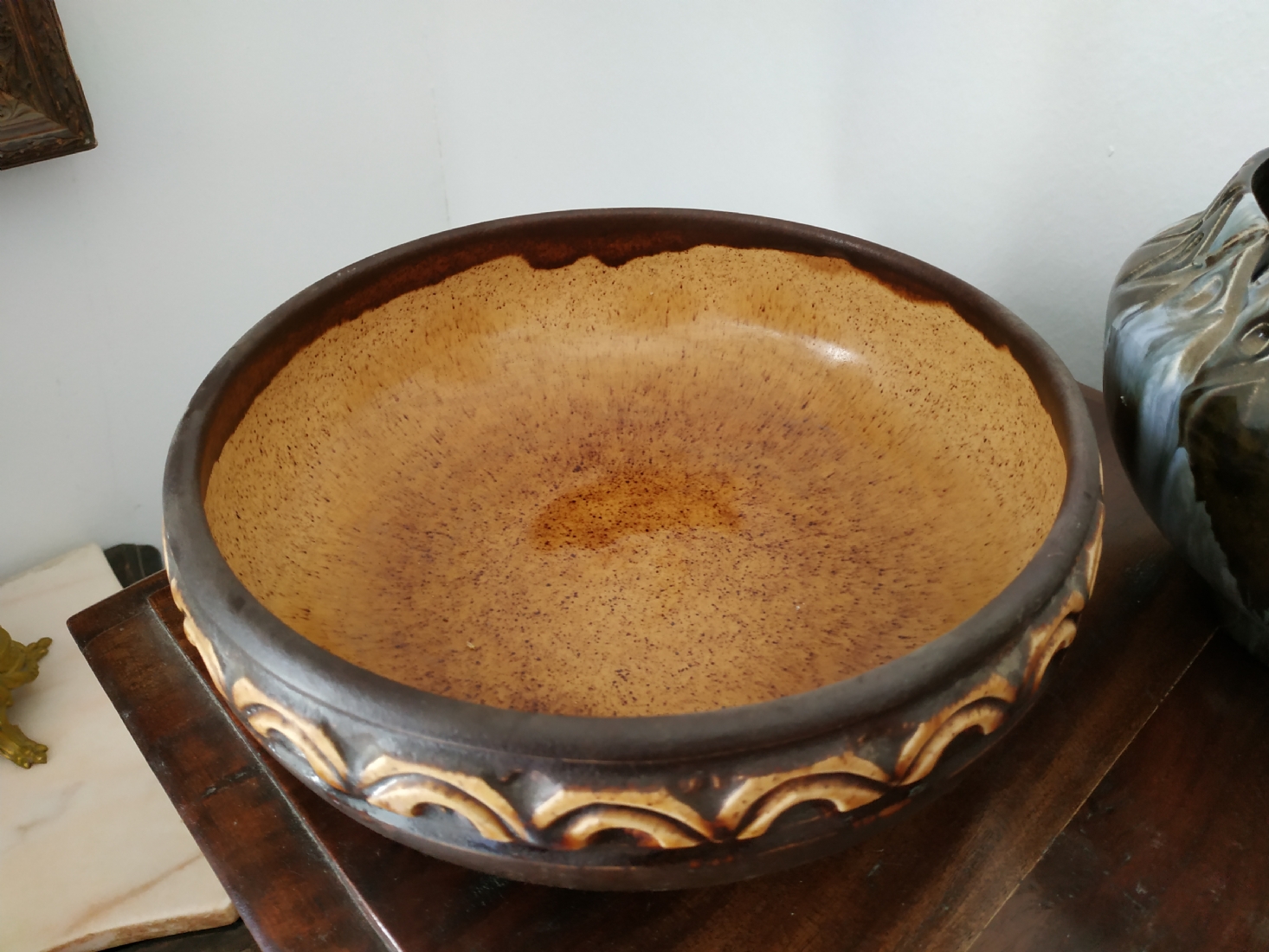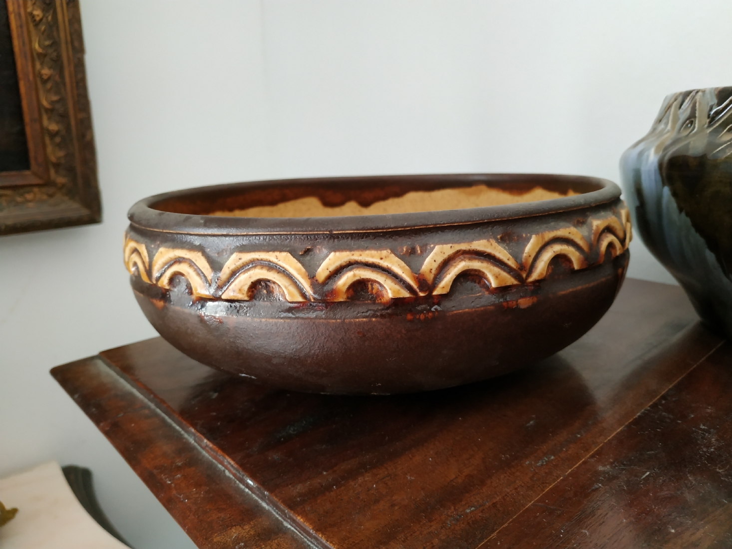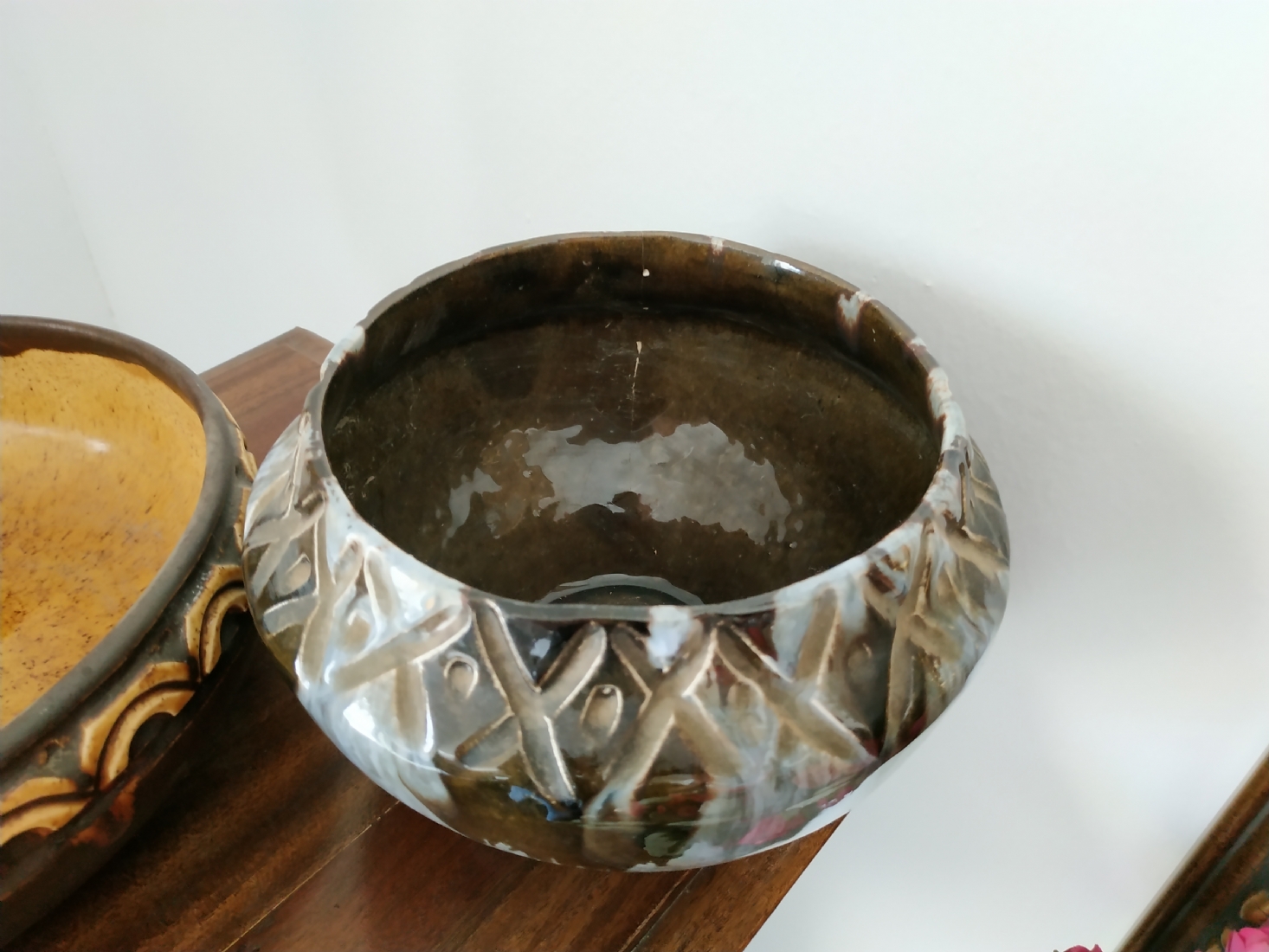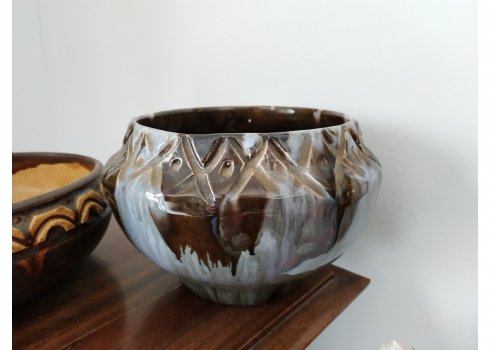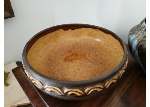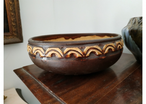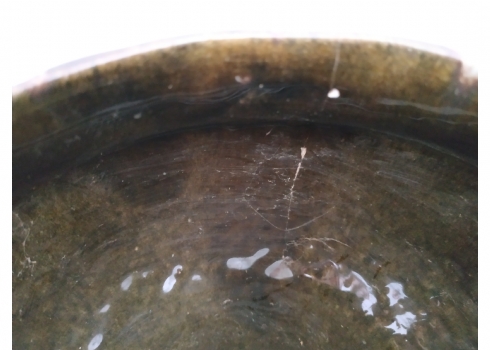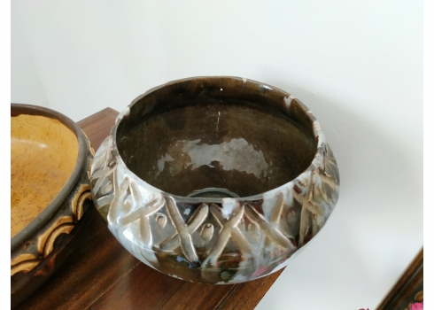 לוט של שני כלי קרמיקה ישראלית ישנים, לא חתומים, לאחד סדק, גובה הקערה הגדולה: 8.5 ס"מ, קוטר: 23 ס"מ.