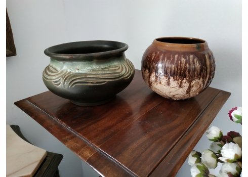 לוט של שני כלי קרמיקה ישראלית ישנים (הגדול מתוצרת קרנת)
