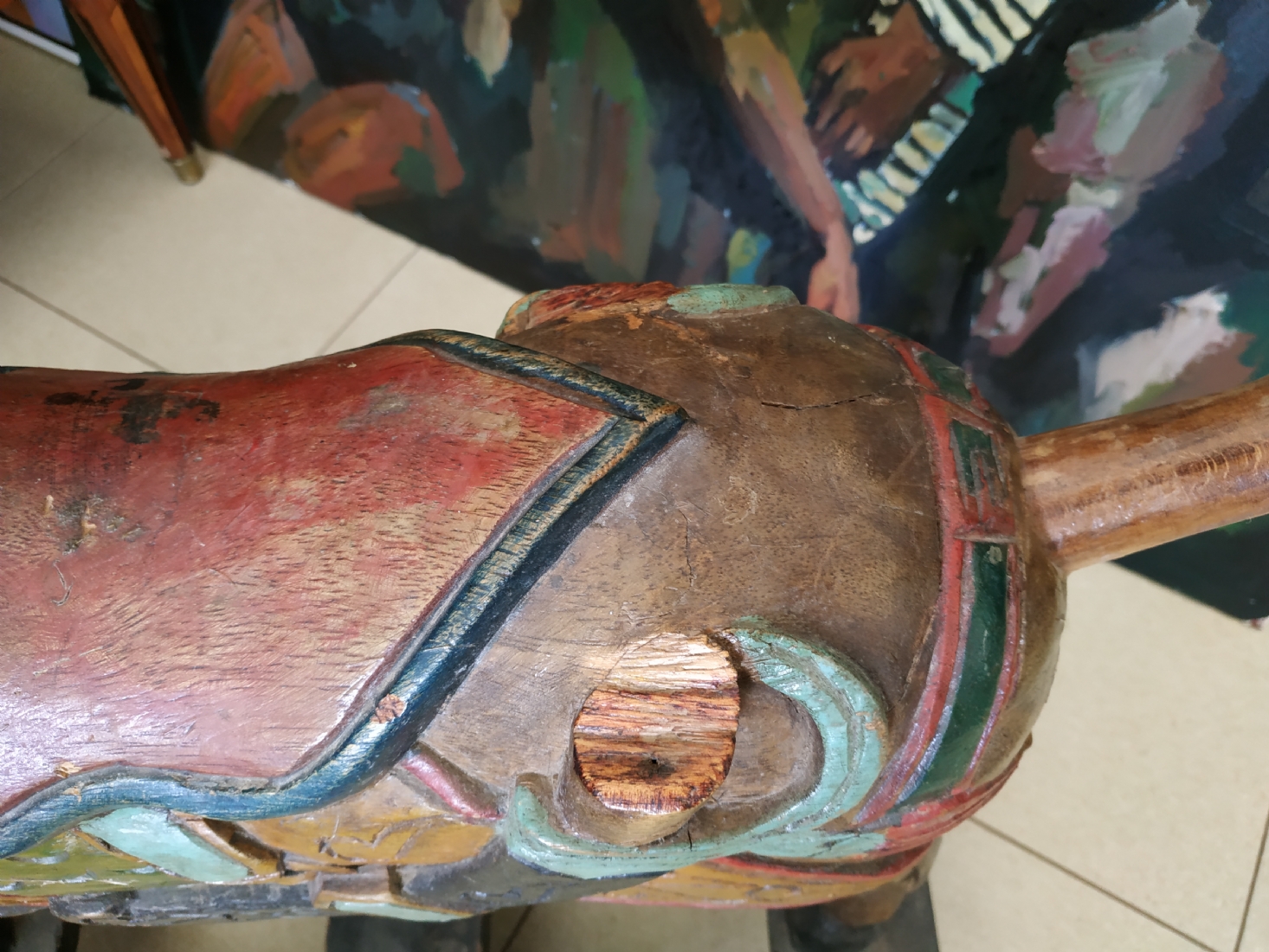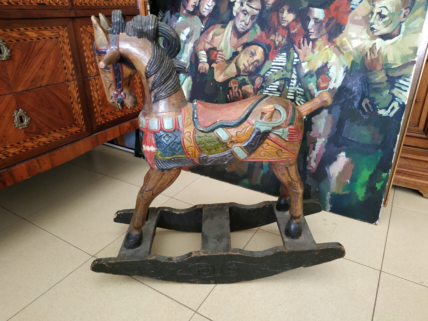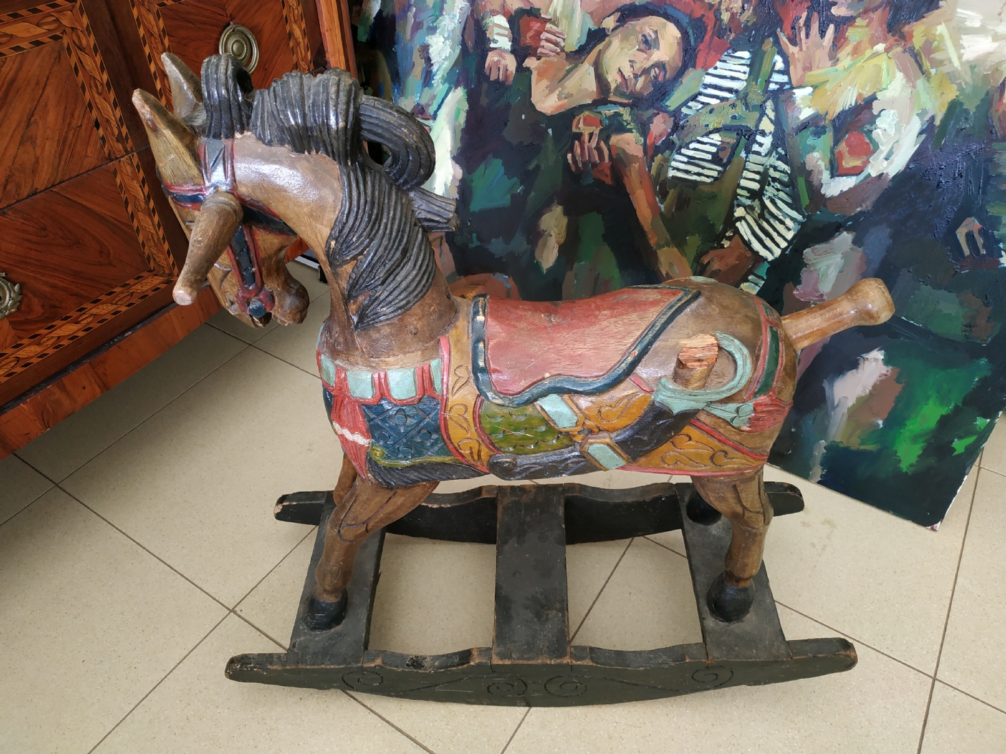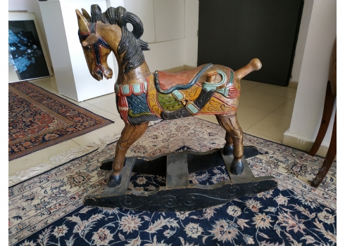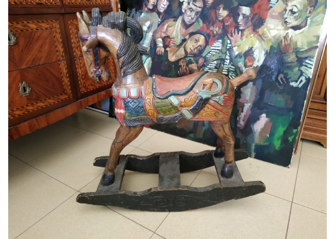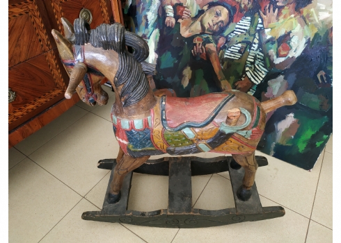 סוס נדנדה הודי ישן, עשוי עץ צבוע