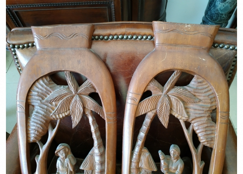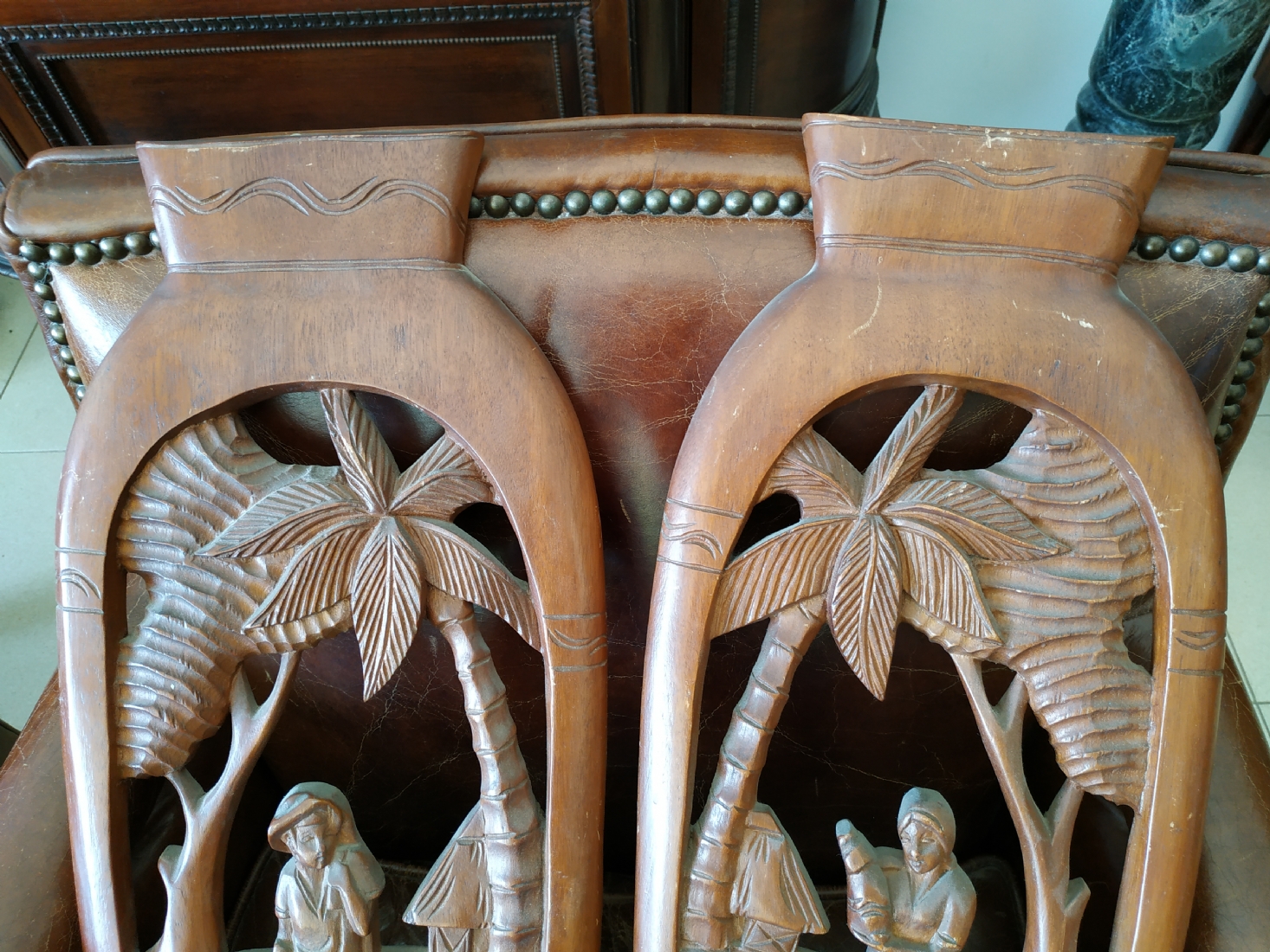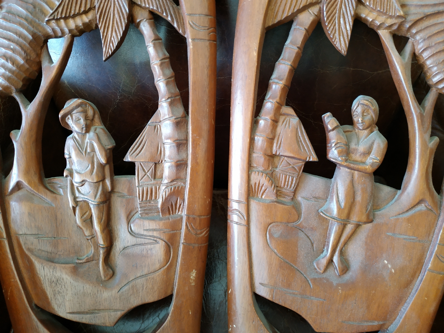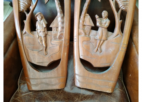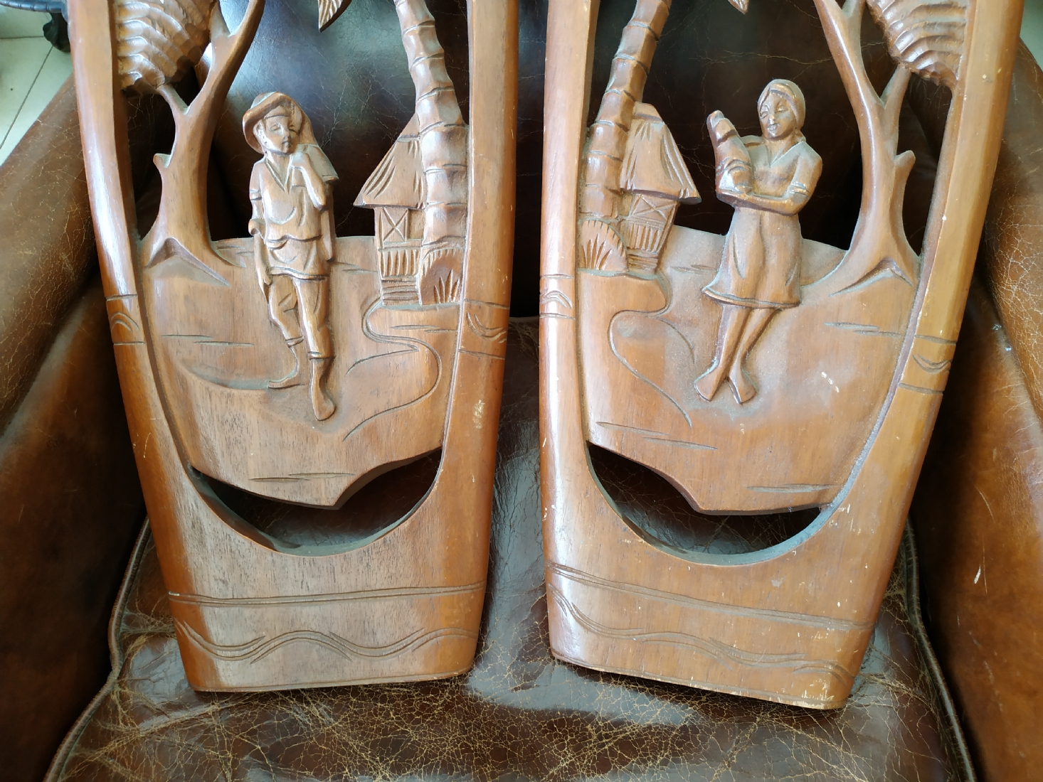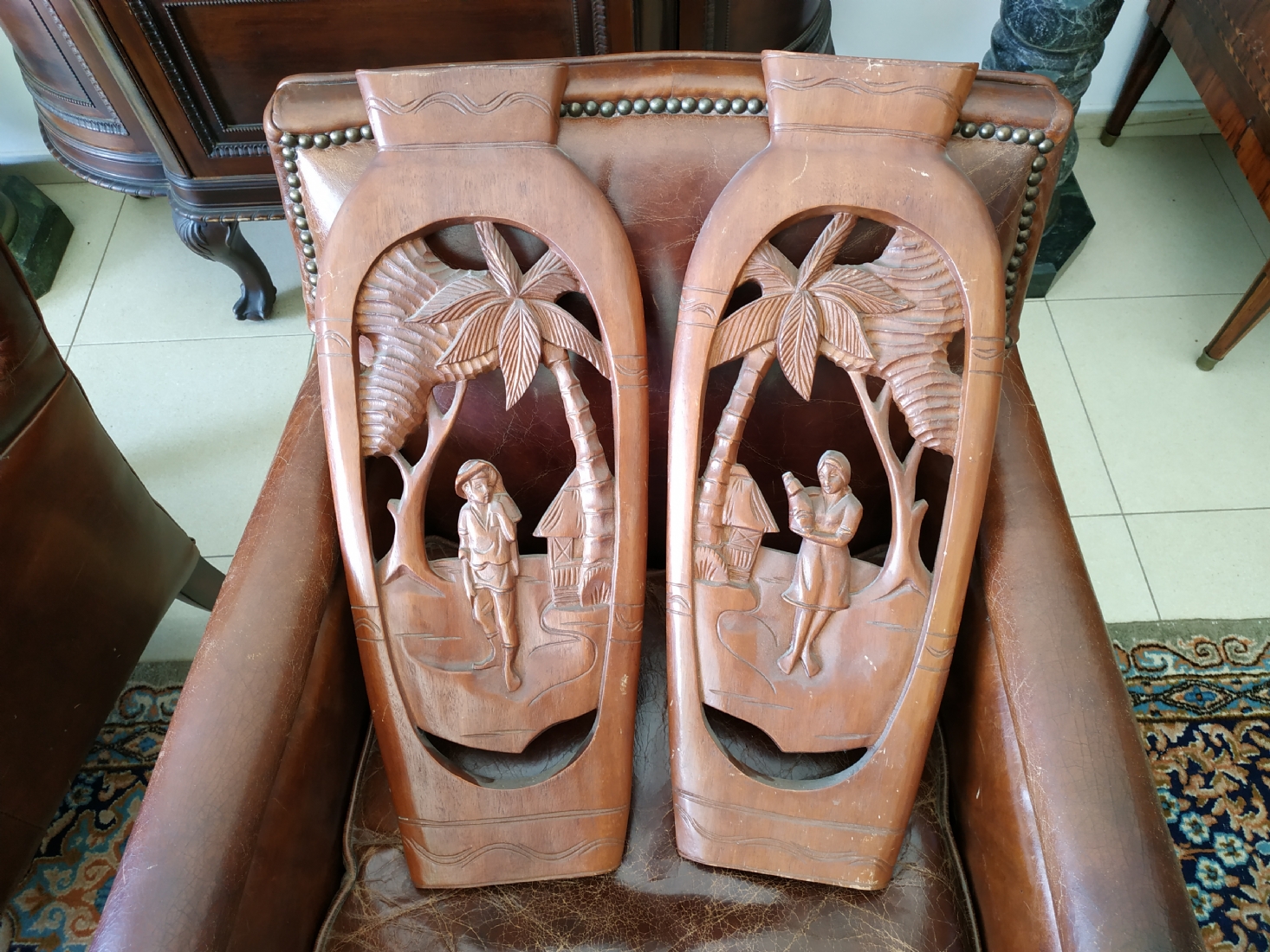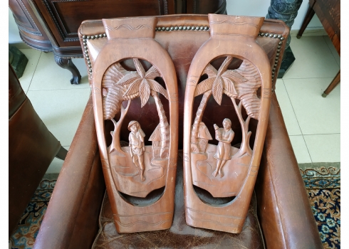 שני קישוטי קיר גדולים עשויים עץ מגולף