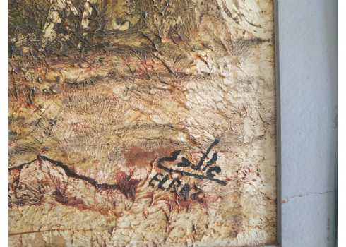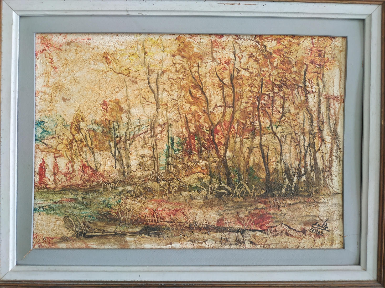 אלבז - 'שלכת' - ציור ישן, שמן על נייר מוצמד לקרטון, חתום, מידות: 34X49 ס"מ.