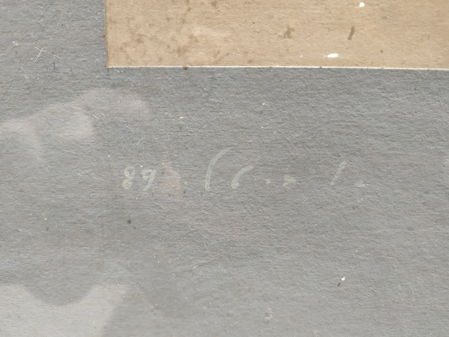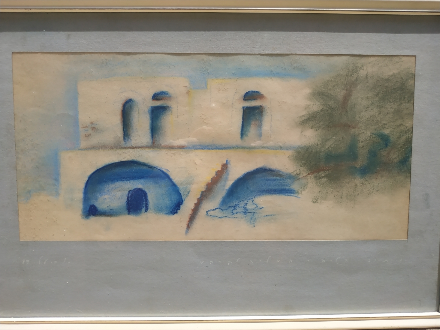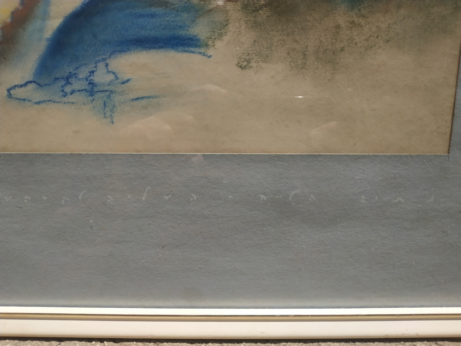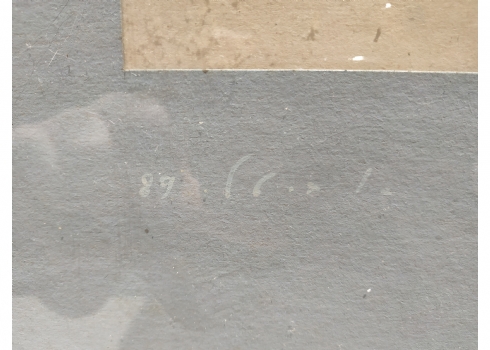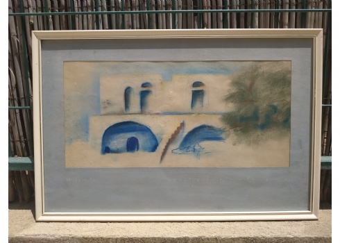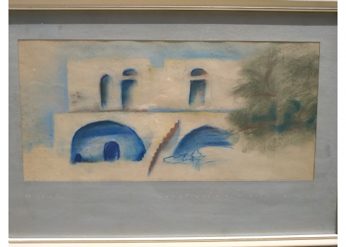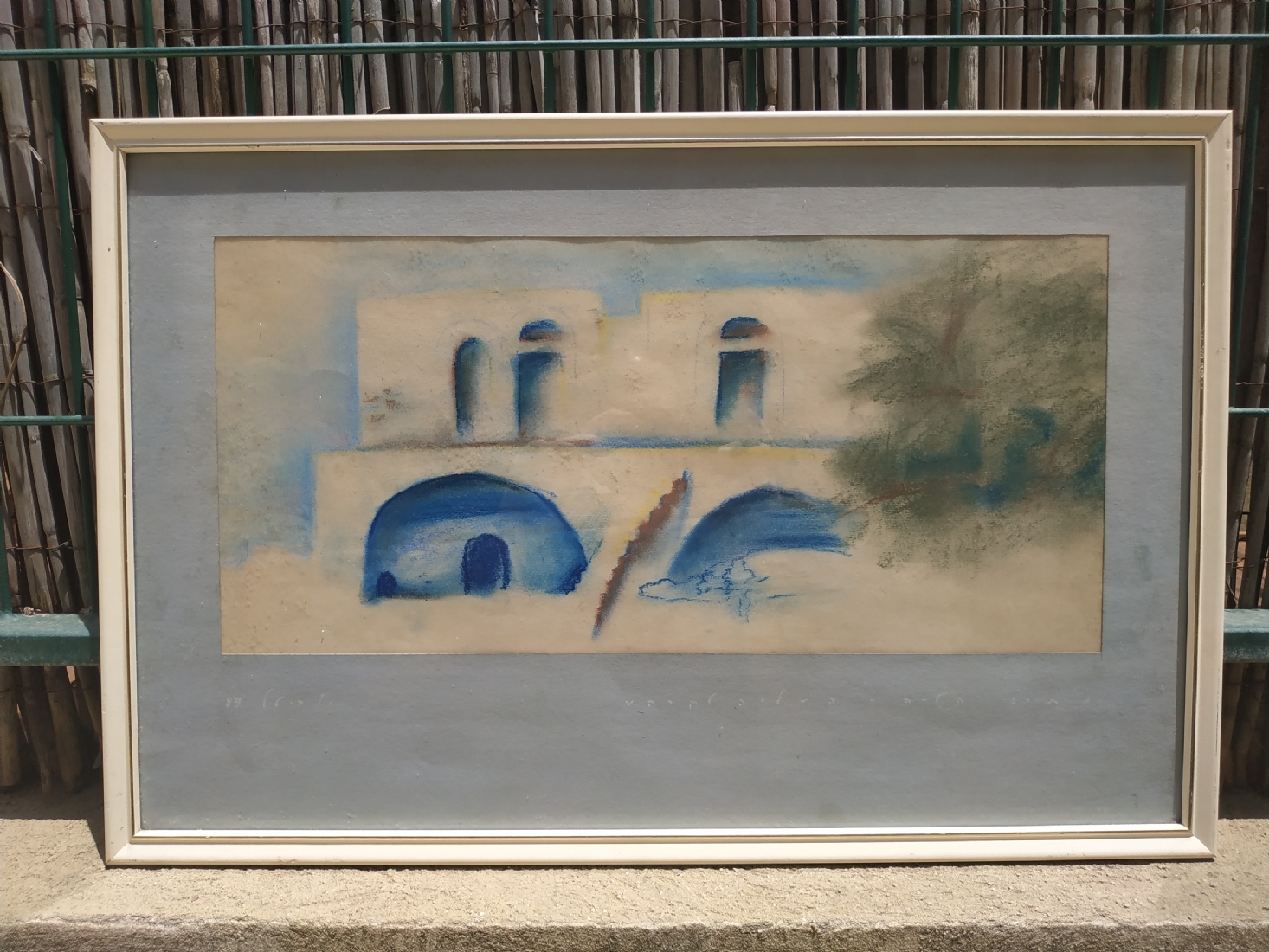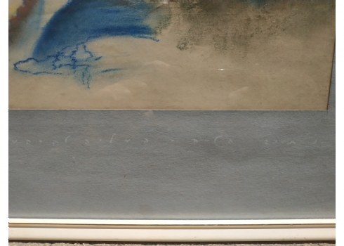 מספר הפריט בקטלוג 218'נתיב הל"ה העליה לקרקע' - גירי פנדה על נייר, חתום: 'אביטל' ומתוארך: 1989, מידות: 23X48 ס"מ.(נשמח לעזרה בזיהוי האמן)