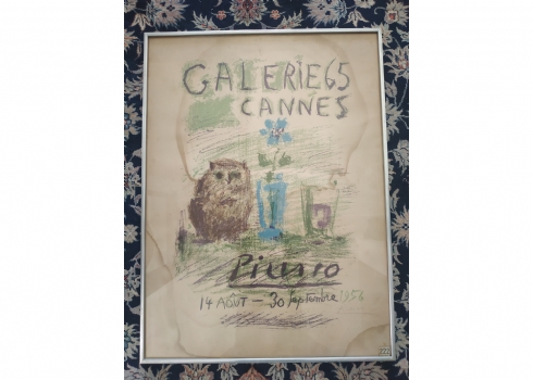 פבלו פיקאסו - כרזה ישנה ‘Galerie 65 Cannes, 1956’, חתומה