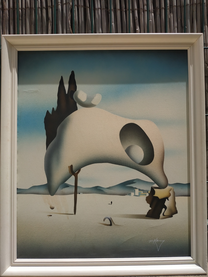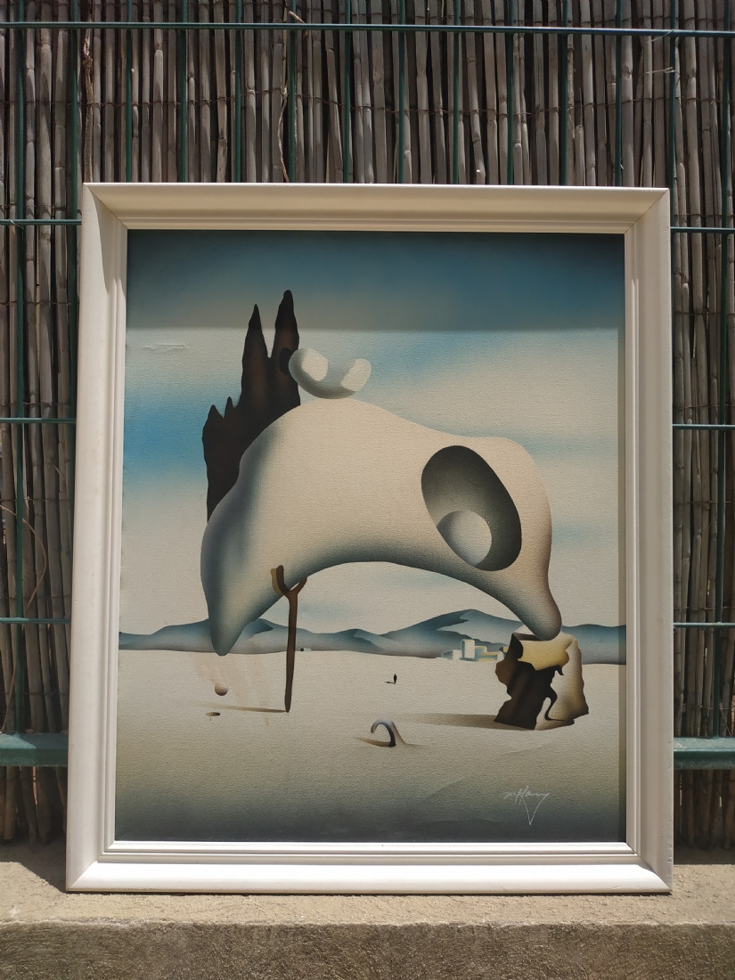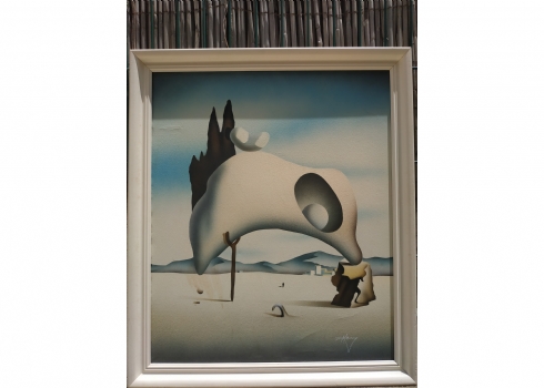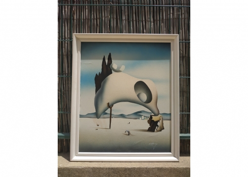 'נוף סוריאליסטי' - תמונה מודפסת על בד, על פי סלבדור דאלי, חתום, מידות: 60X50 ס"מ.