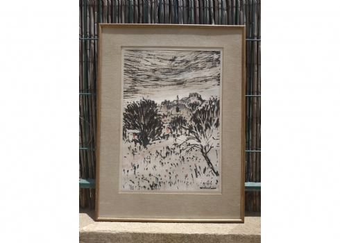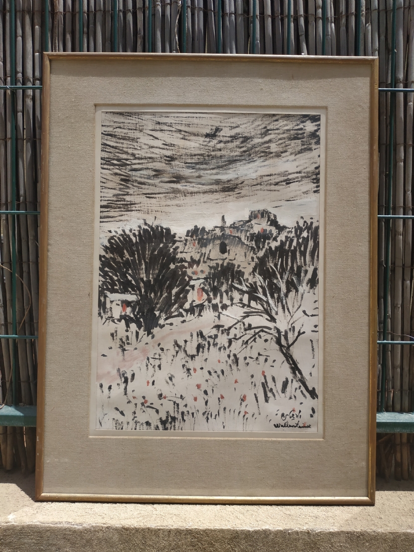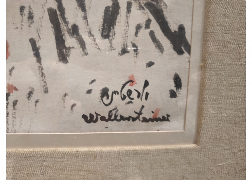 מספר הפריט בקטלוג 240יהודה ולרשטיינר (Wallersteiner) - 'נוף צפת', ציור ישן, אקוורל על נייר, חתום, מידות: 50X35 ס"מ.