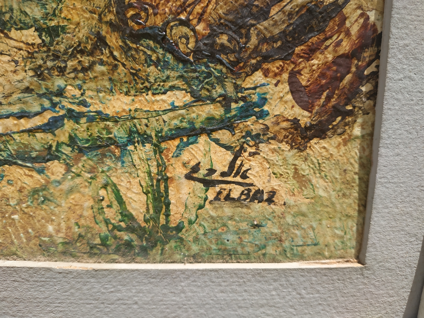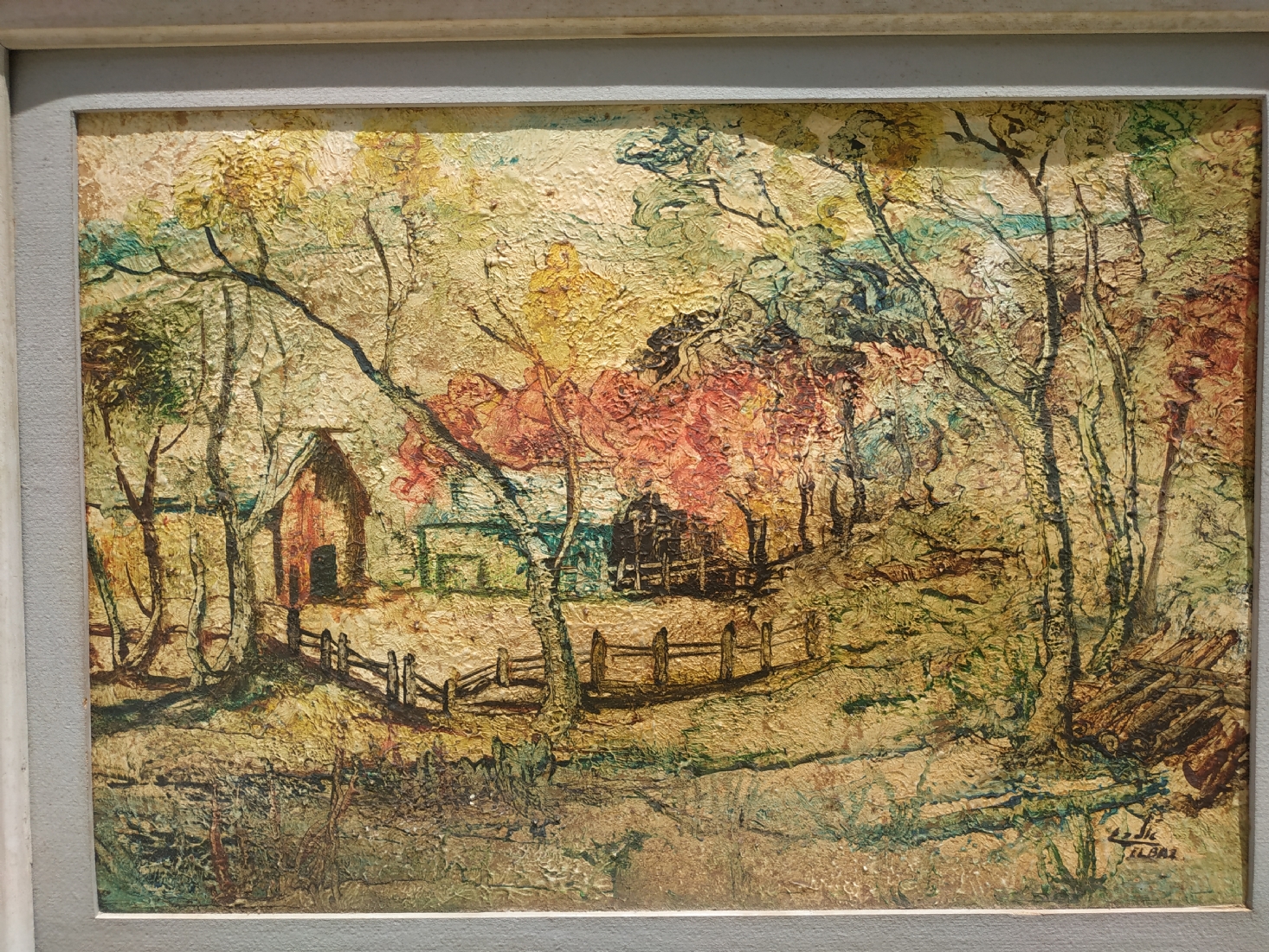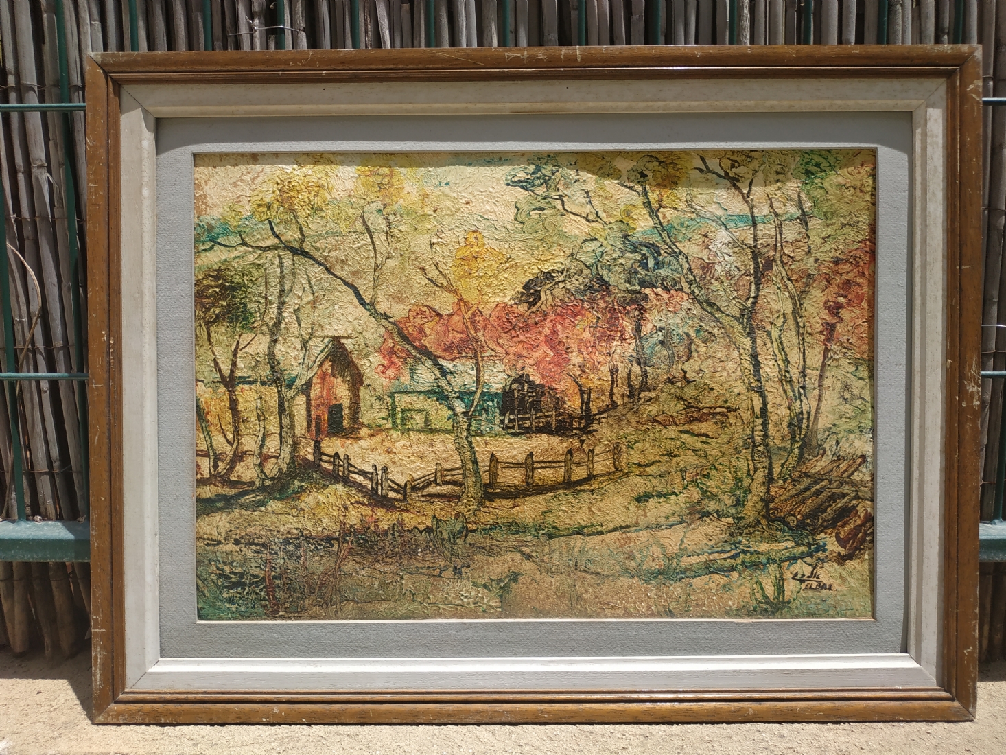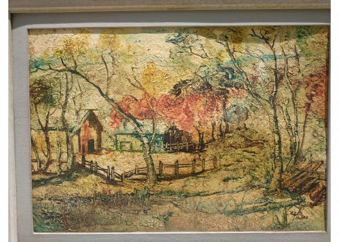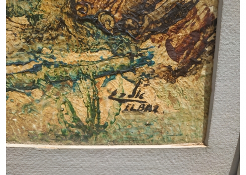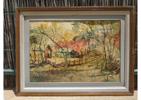 אלבז - 'חווה מגודרת' - ציור ישן, שמן על נייר מוצמד לקרטון, חתום, מידות: 35X50 ס"מ.