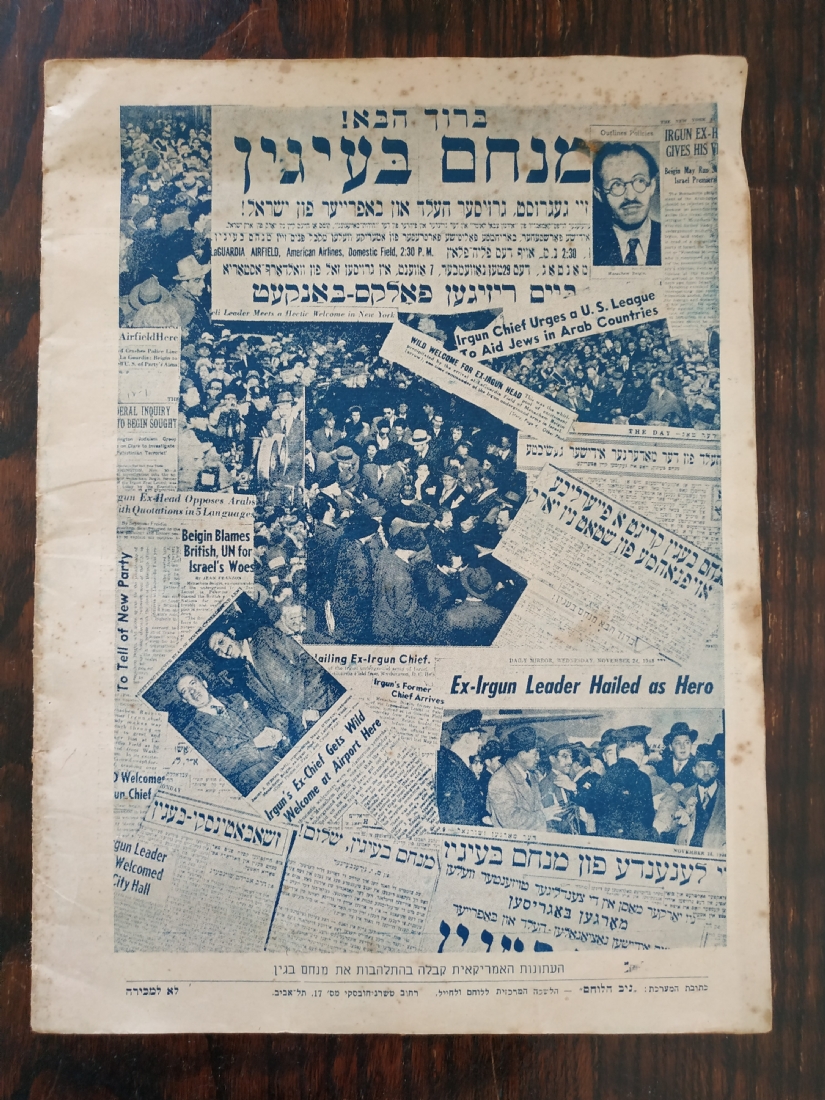 מספר הפריט בקטלוג 20עיתון ניב הלוחם, של תנועת החרות. משנת תש"ט (1948), עיתון פנימי - לא למכירה, ללא קרעים או חוסרים, במצב טוב יחסית, מידות: 31X23 ס"מ. (נרכשו על ידי הבעלים בשוק פשפשים בצרפת).