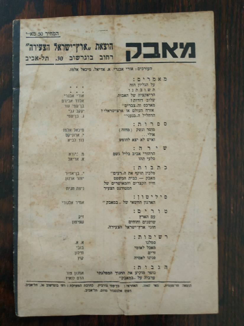 מספר הפריט בקטלוג 19דור במאבק - בטאון ארץ ישראל הצעירה - 1947, מידות 31X24 ס"מ. (נרכשו על ידי הבעלים בשוק פשפשים בצרפת).