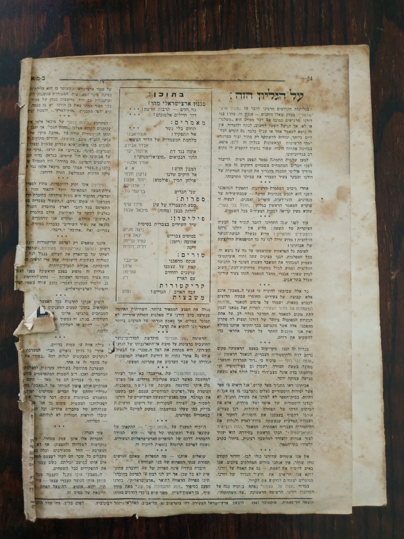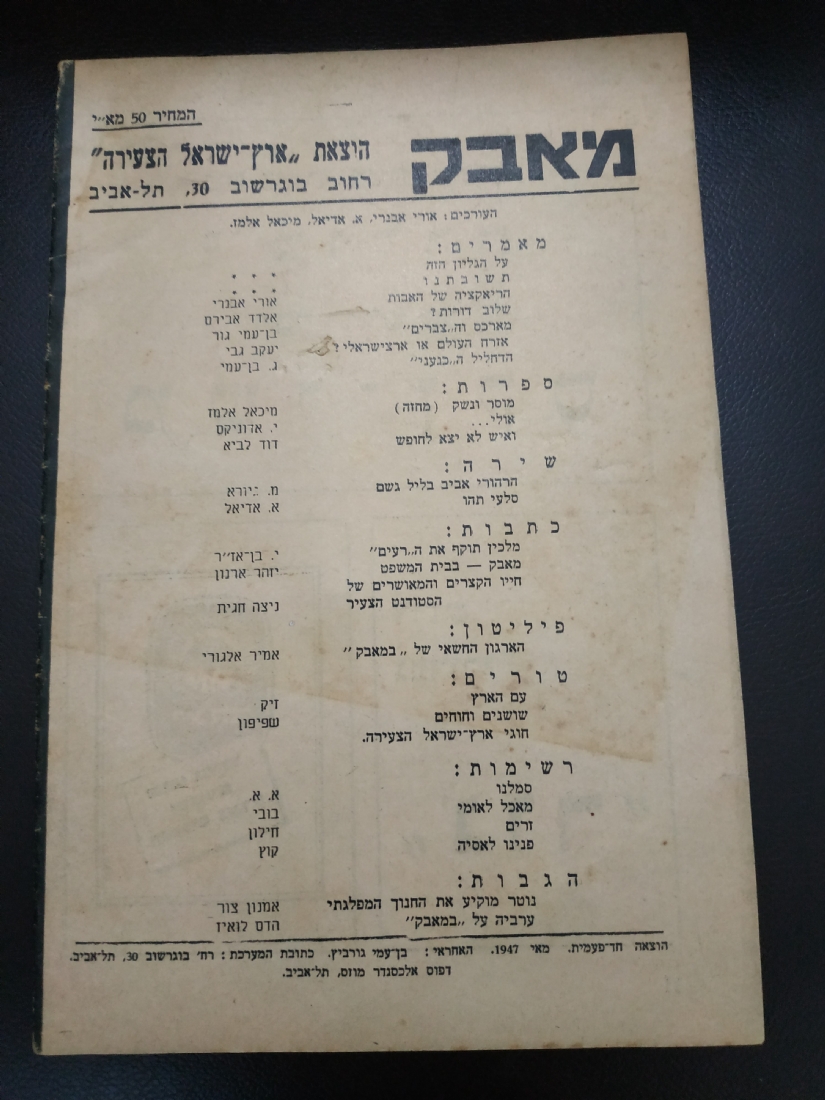 גליון של 'מאבק' בהוצאת 'ארץ ישראל הצעירה', הוצאה חד פעמית, מאי 1947
