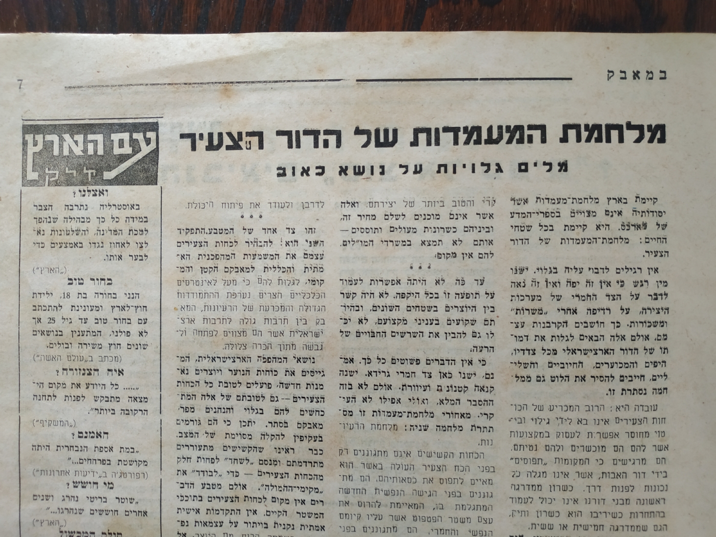מספר הפריט בקטלוג 17גליון של 'מאבק' בהוצאת 'ארץ ישראל הצעירה', הוצאה חד פעמית, מאי 1947, מידות: 23X16 ס"מ. (נרכש על ידי הבעלים בשוק פשפשים בצרפת).