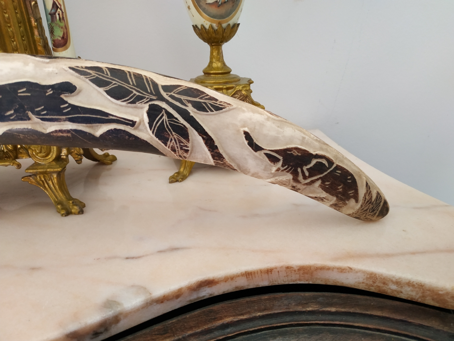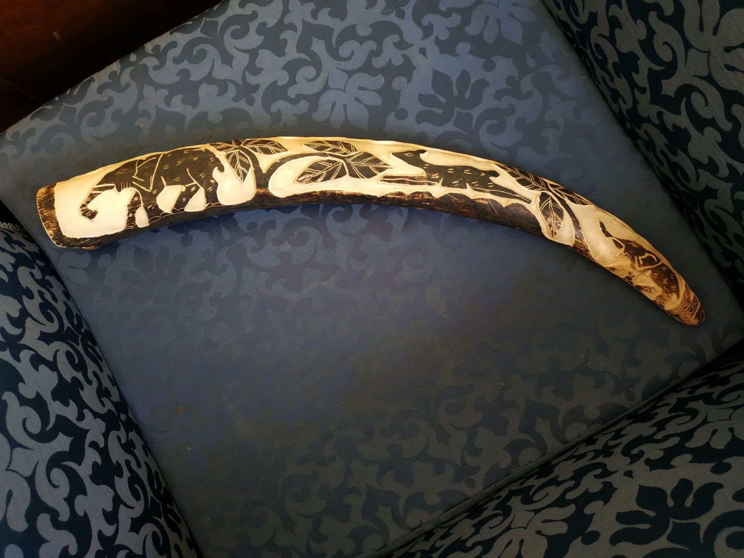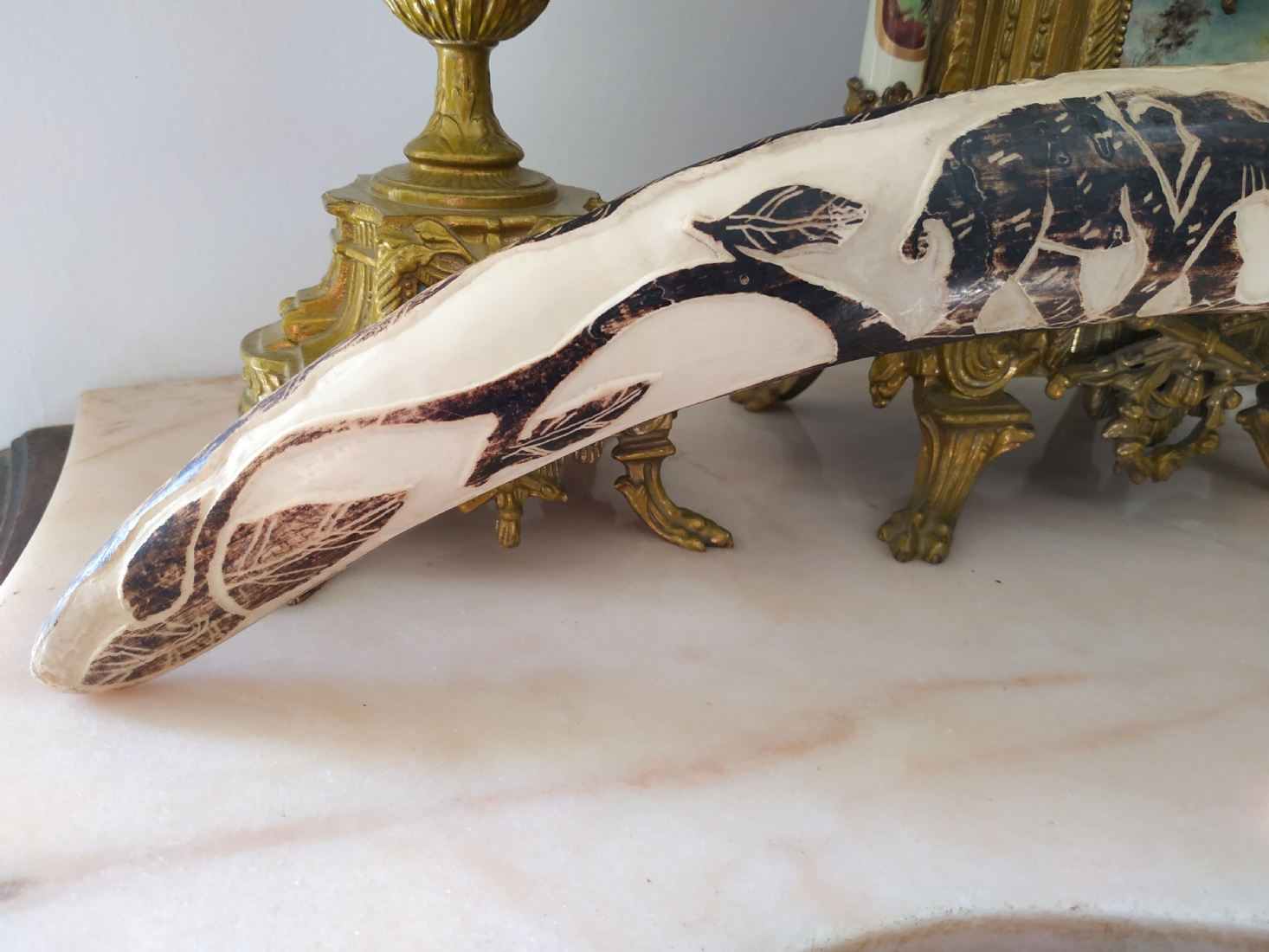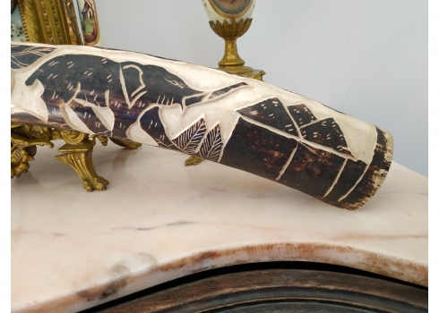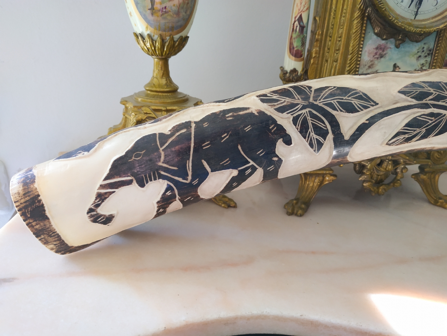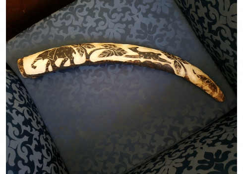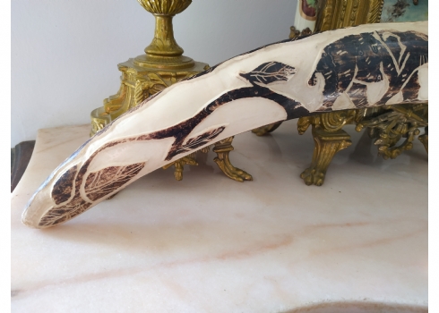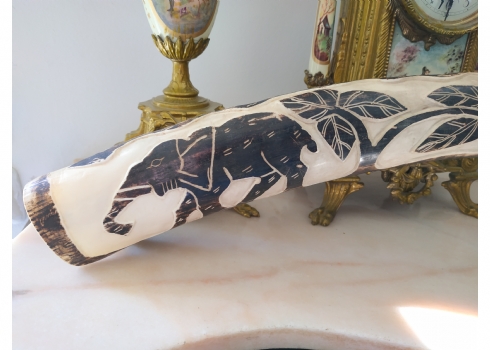 חט שנהב (שן פיל) אפריקאי ישן, מגולף וצבוע