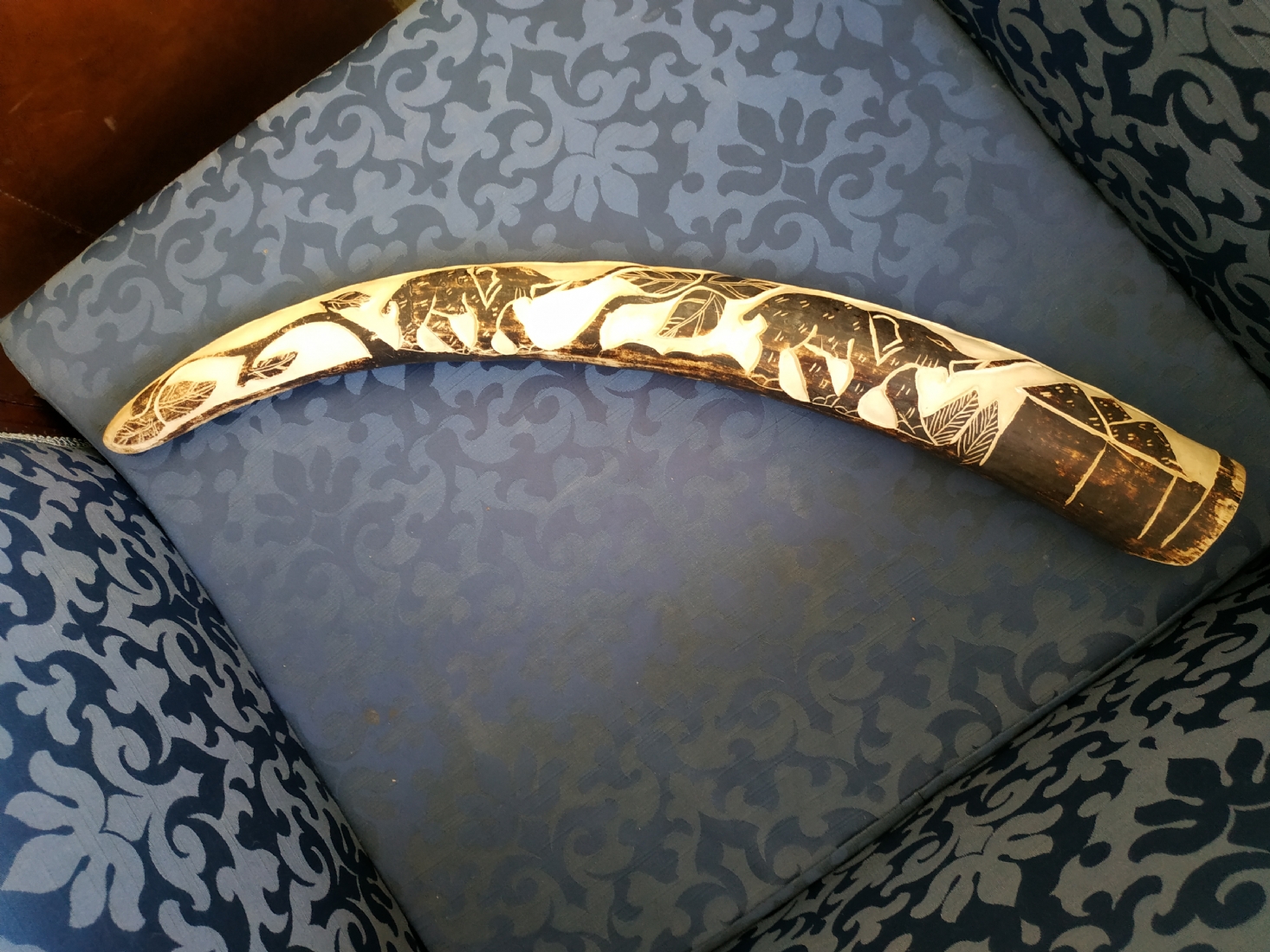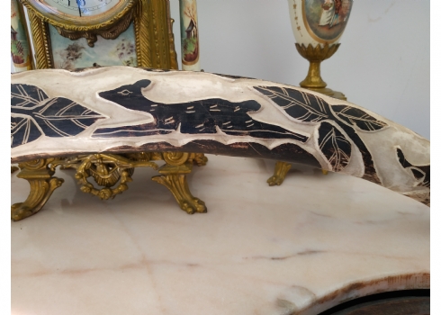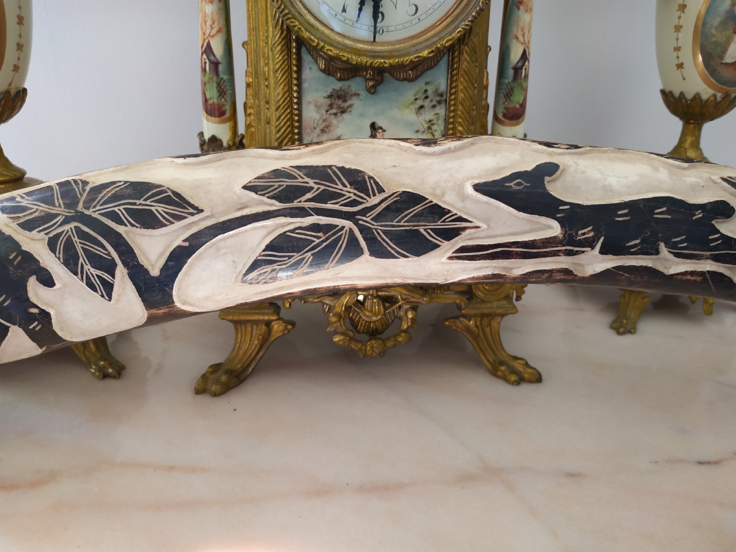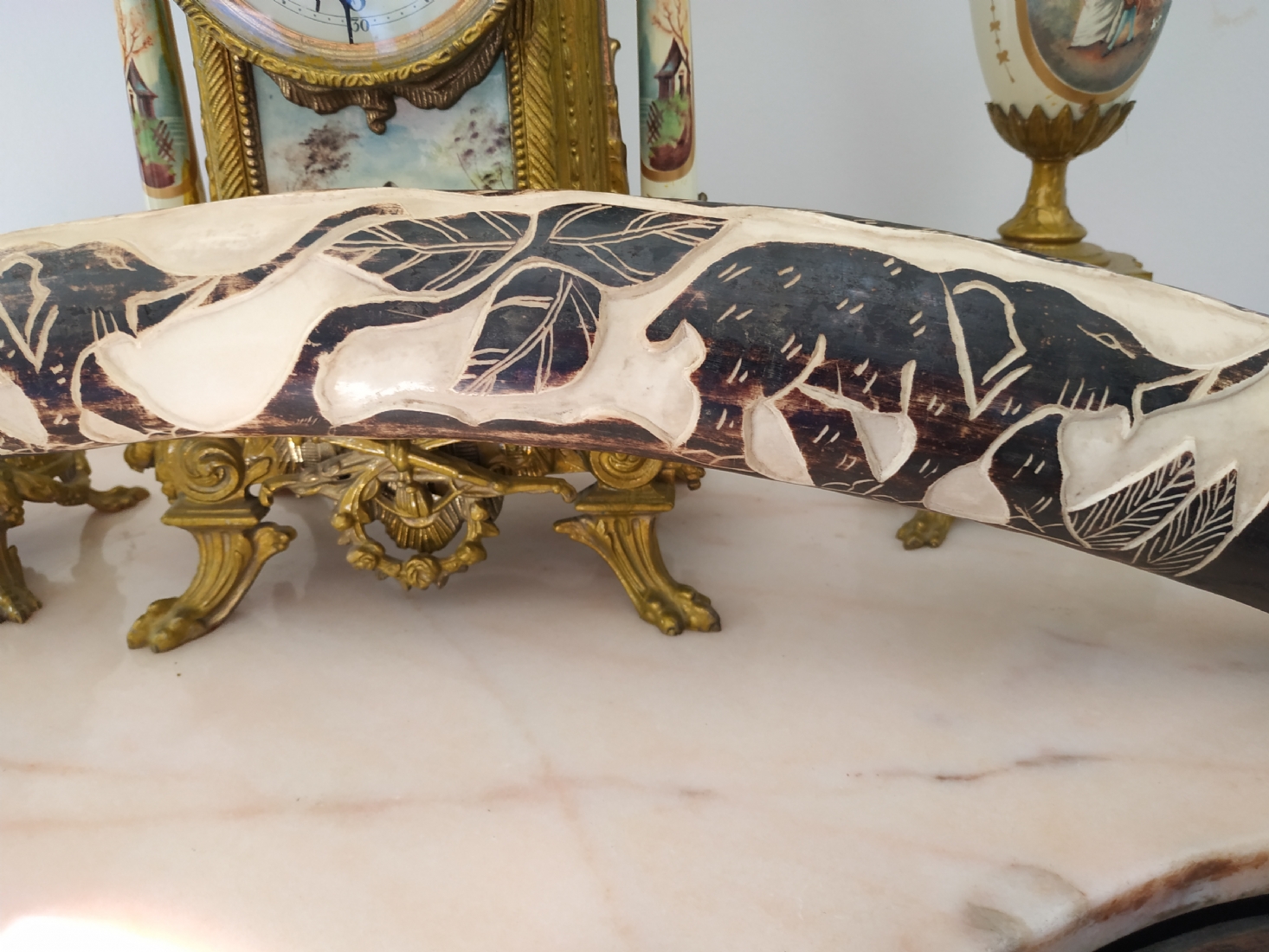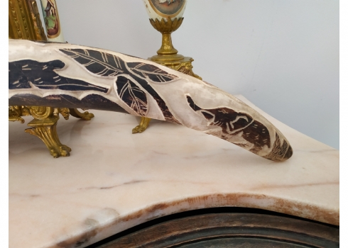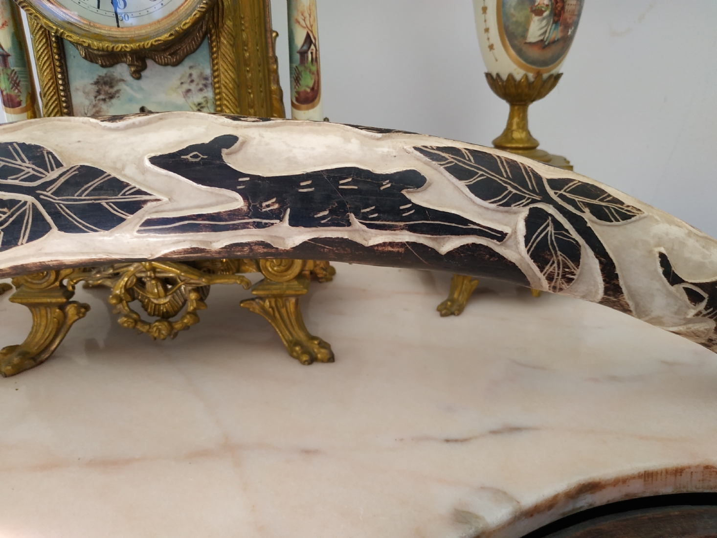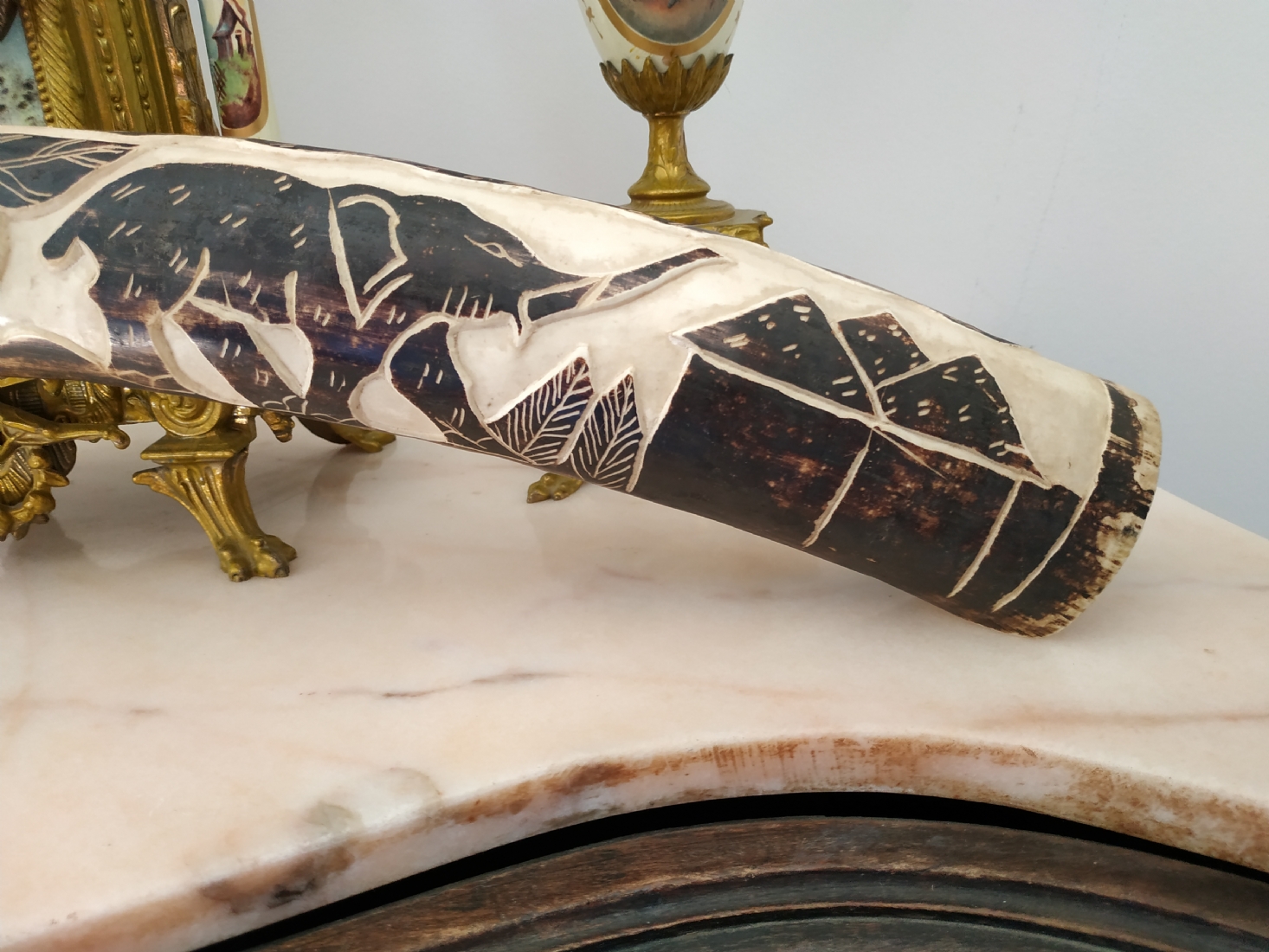 חט שנהב (שן פיל) אפריקאי ישן, מגולף וצבוע