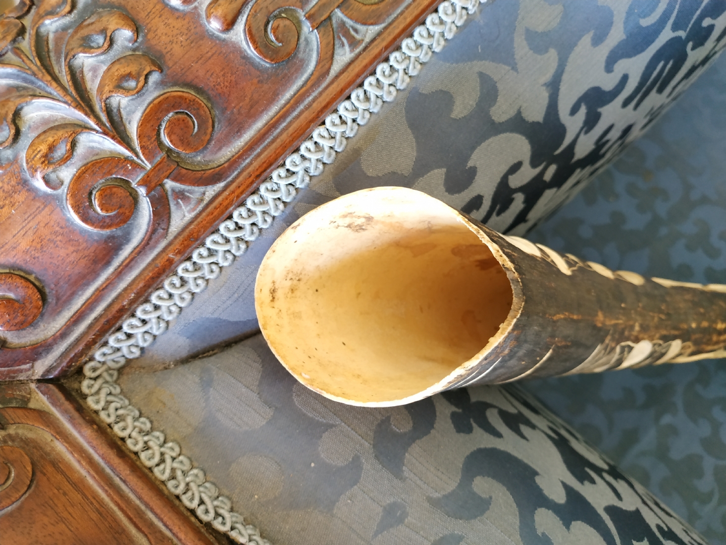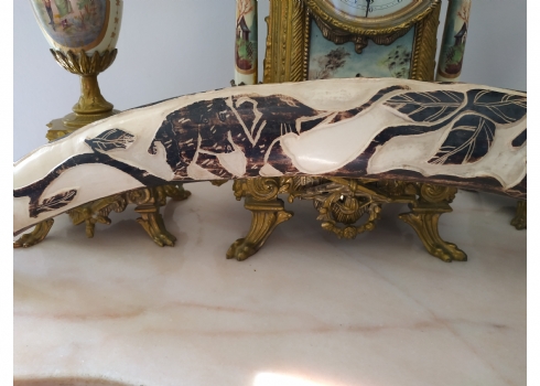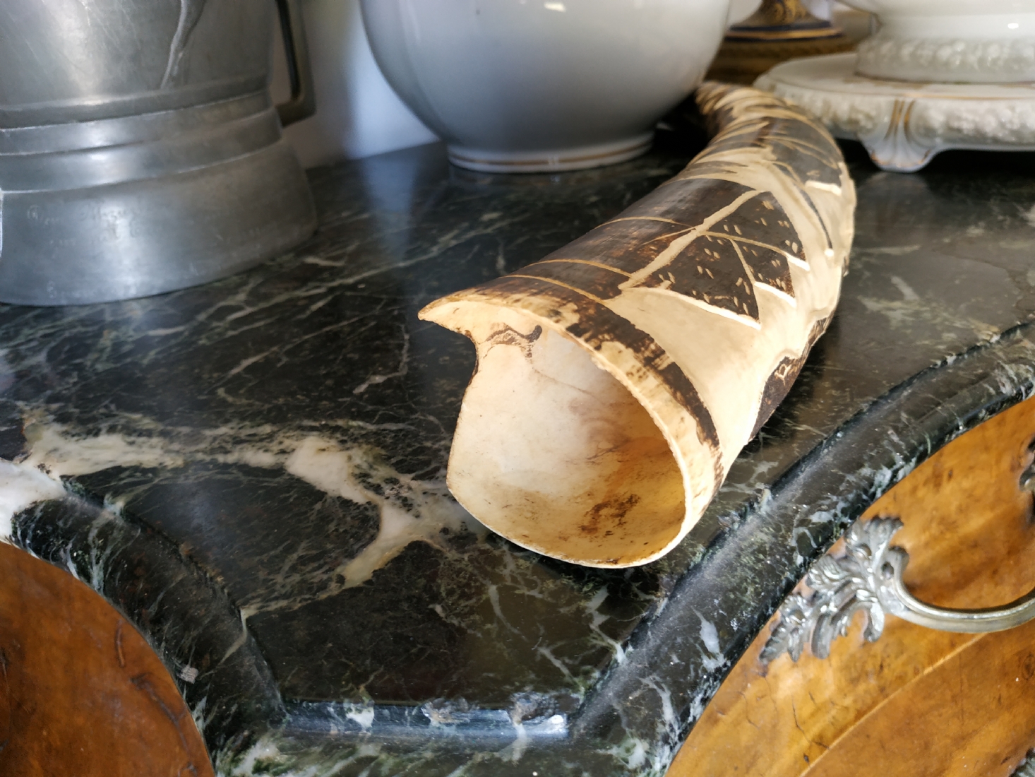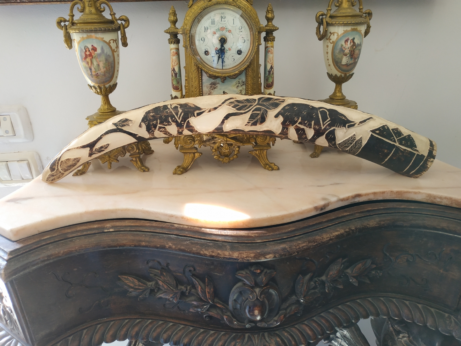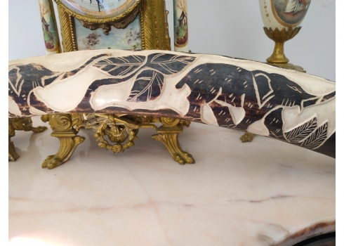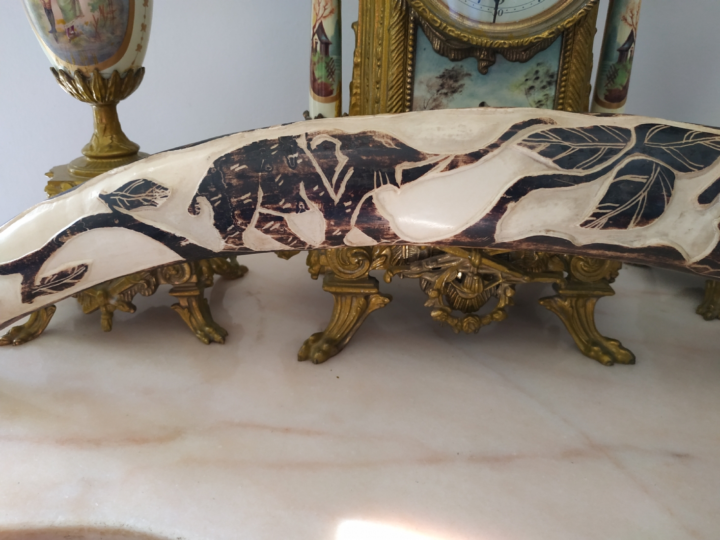 חט שנהב (שן פיל) אפריקאי ישן, מגולף וצבוע