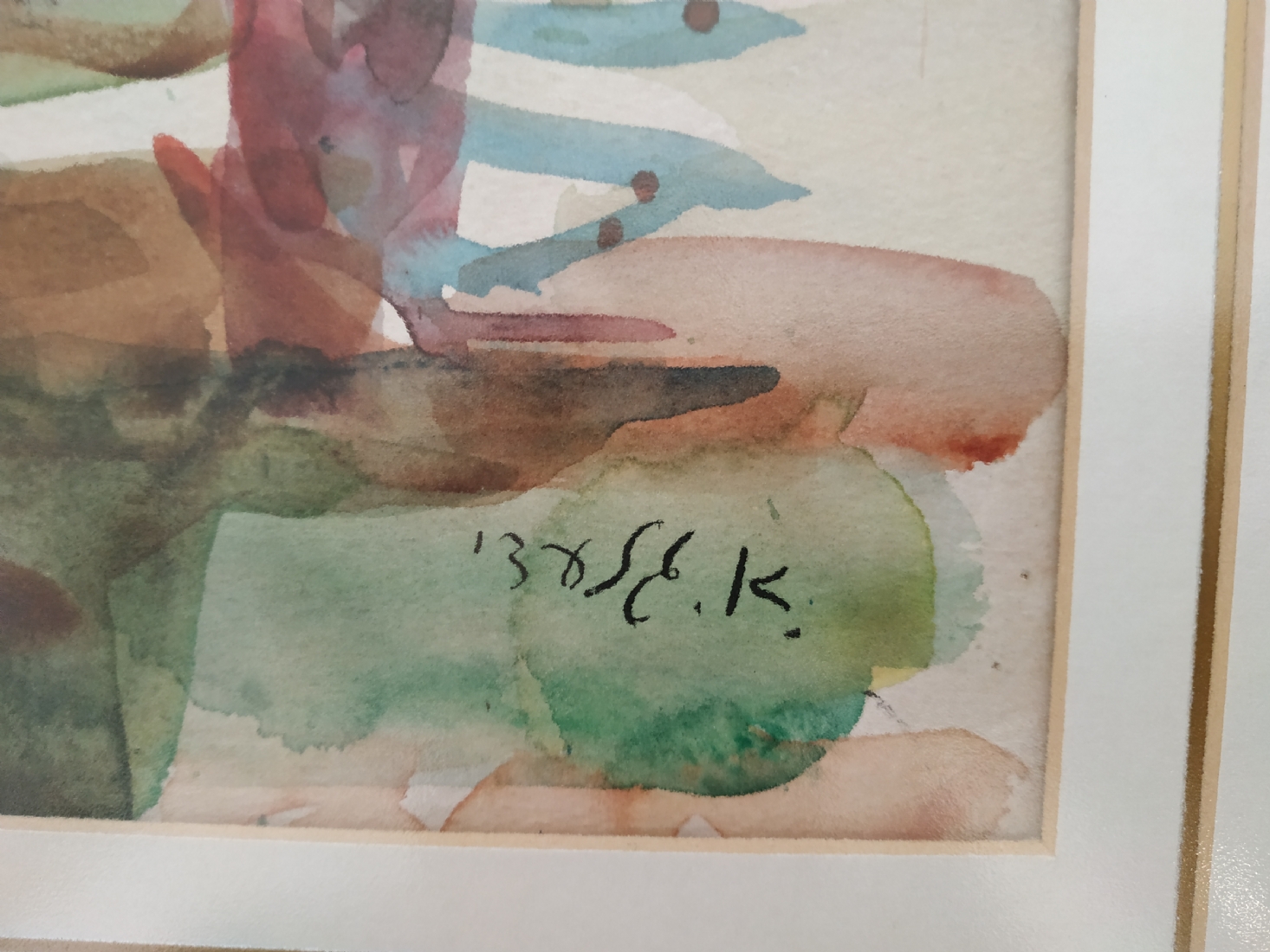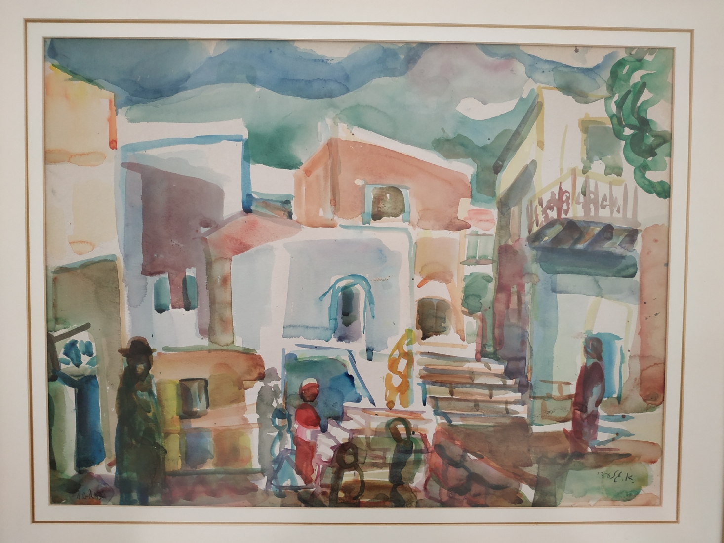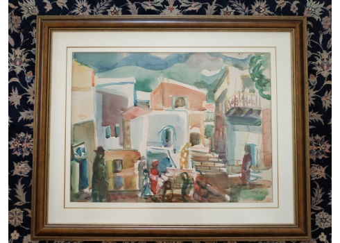 מספר הפריט בקטלוג 68אהרון גלעדי (גולודץ) ((Aharon Giladi (Golodetz) - 'דמויות בצפת' - ציור גדול ויפה במיוחד, רישום ואקוורל על נייר, חתום, מידות: 47X62 ס"מ.