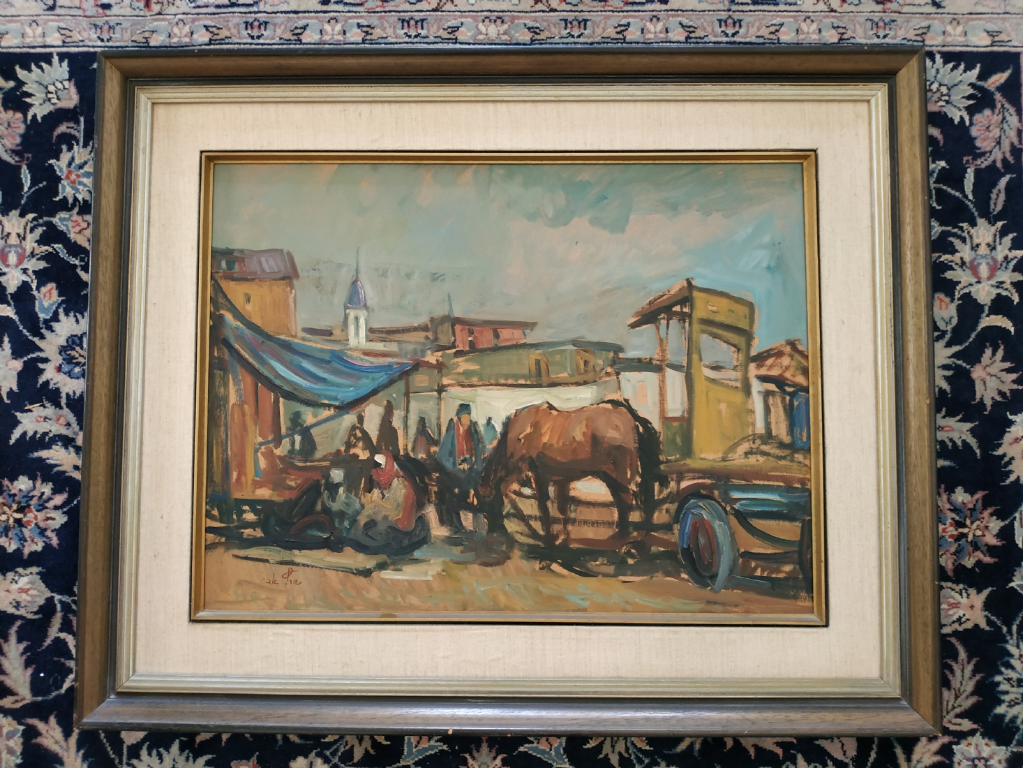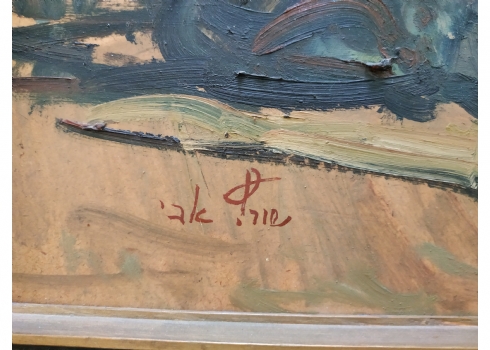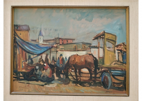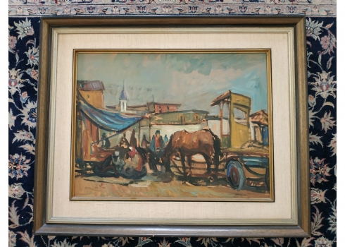 מספר הפריט בקטלוג 72אבי שוורץ (Avi Schwartz) - 'עגלונים בשוק ביפו' - ציור ישן, שמן על לוח, חתום, מידות: 47X63 ס"מ.