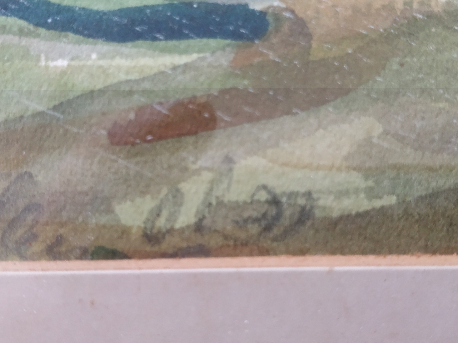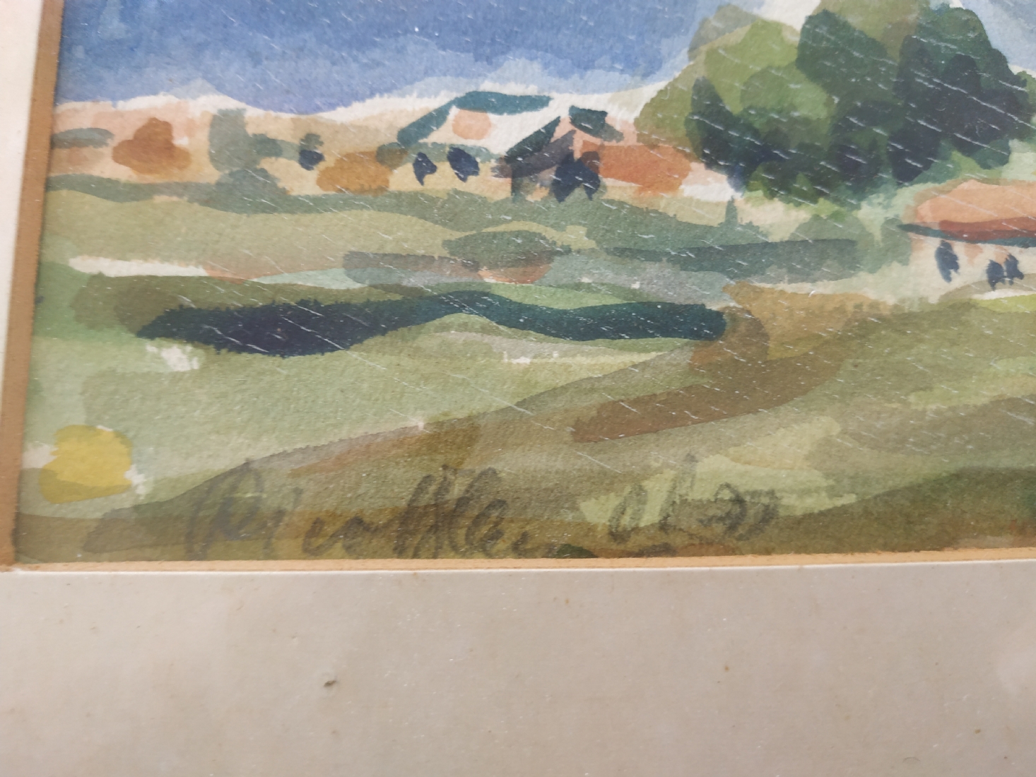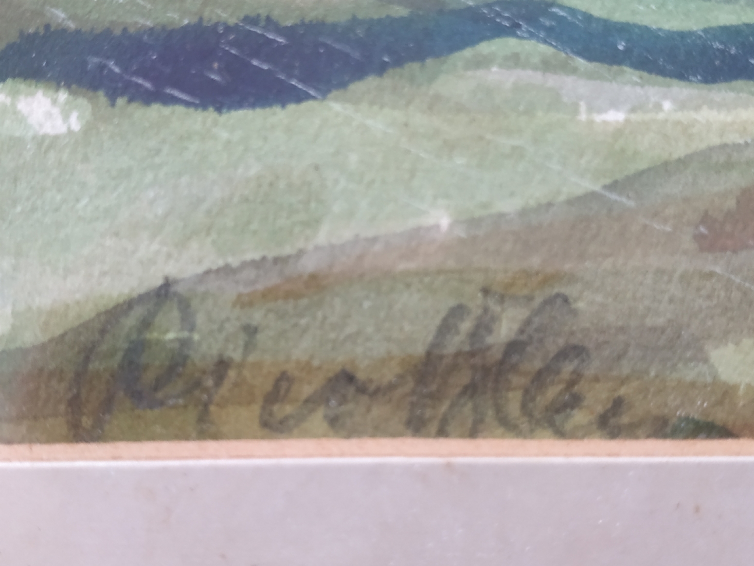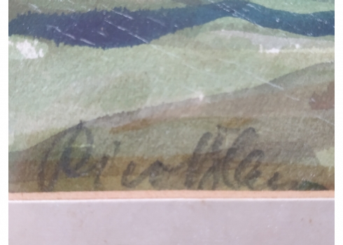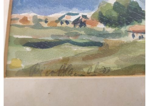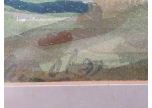 'נוף כינרת' - ציור ישן ויפה, אקוורל על נייר, חתום (נשמח לעזרה בזיהוי האמן), מידות: 19X31 ס"מ.