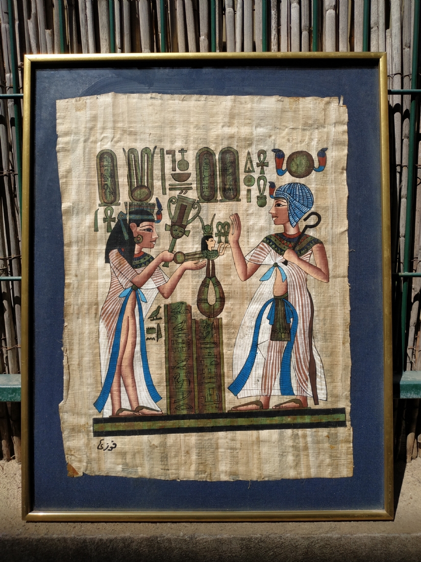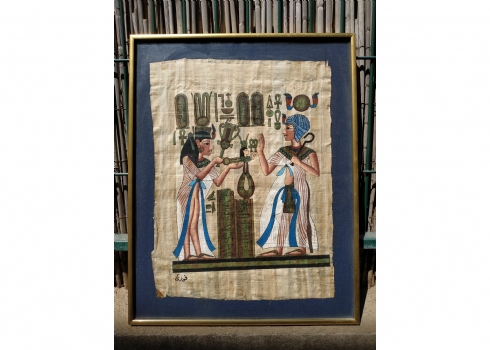 ציור מצרי ישן על נייר פפירוס, ממוסגר, מידות המסגרת: 48X38 ס"מ.