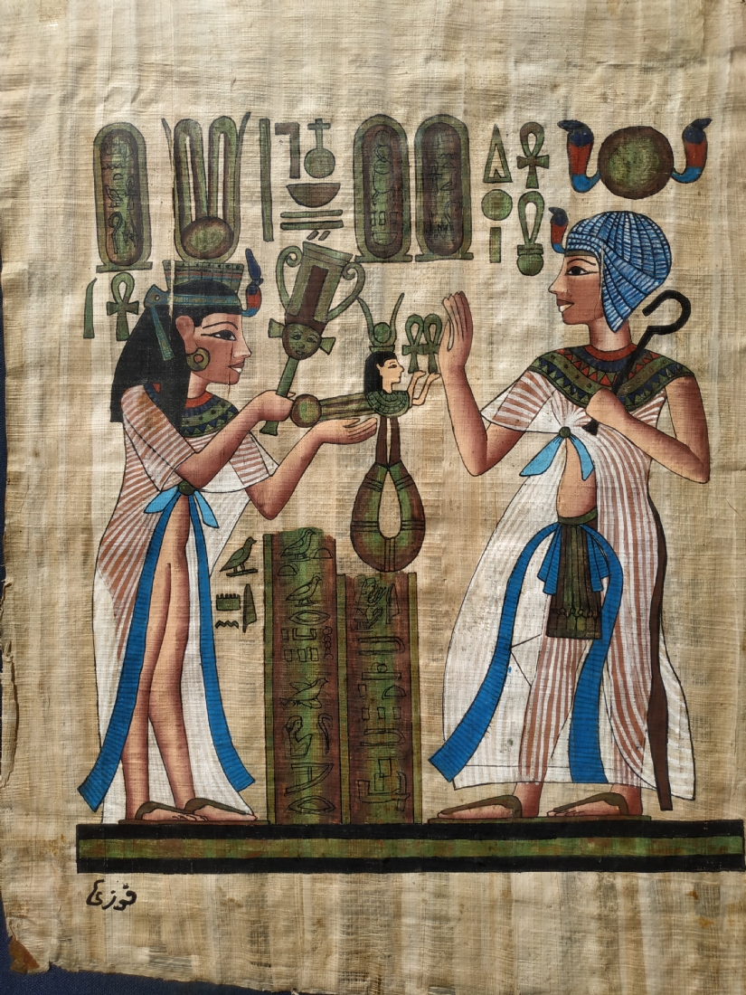 ציור מצרי ישן על נייר פפירוס