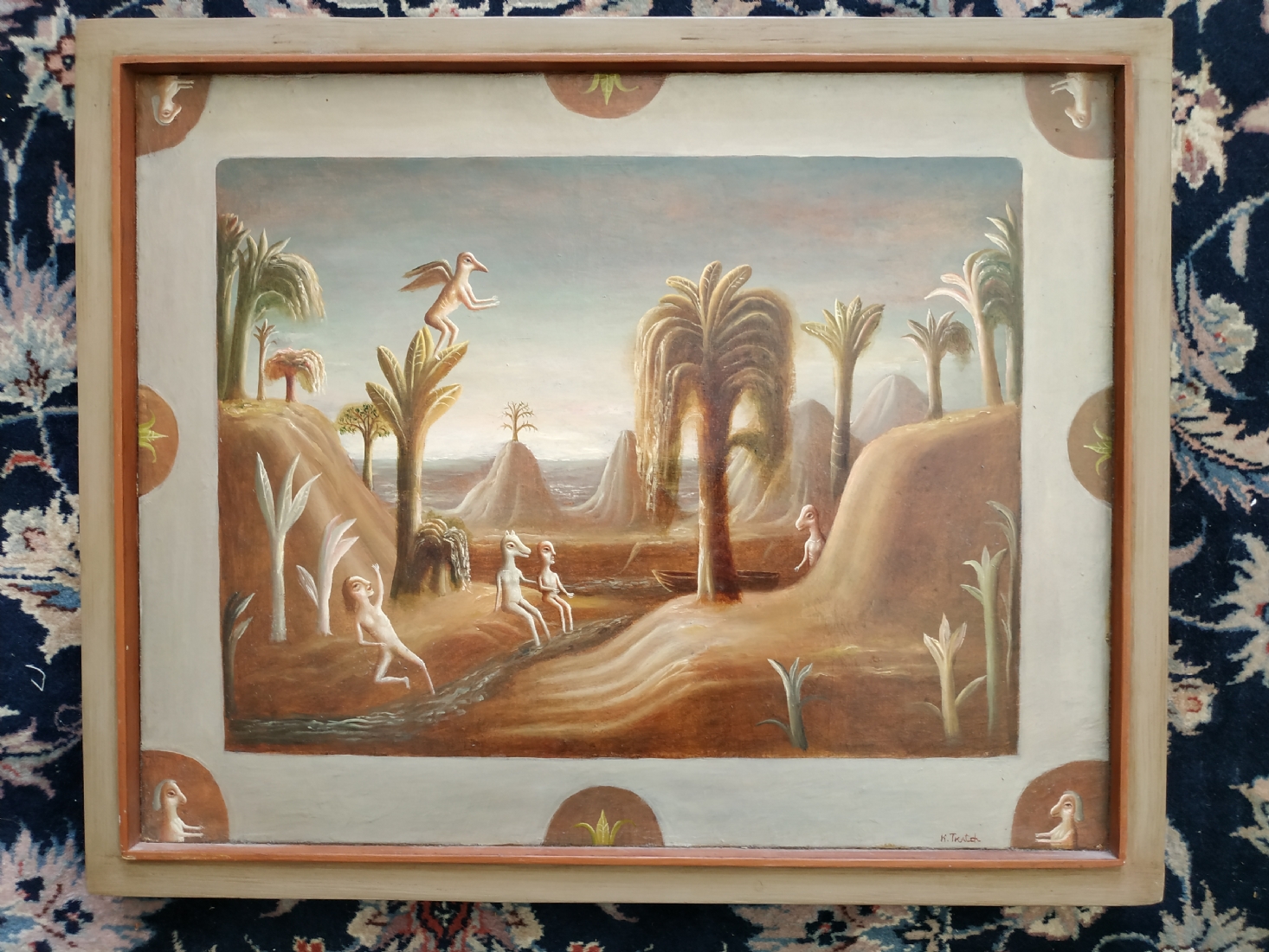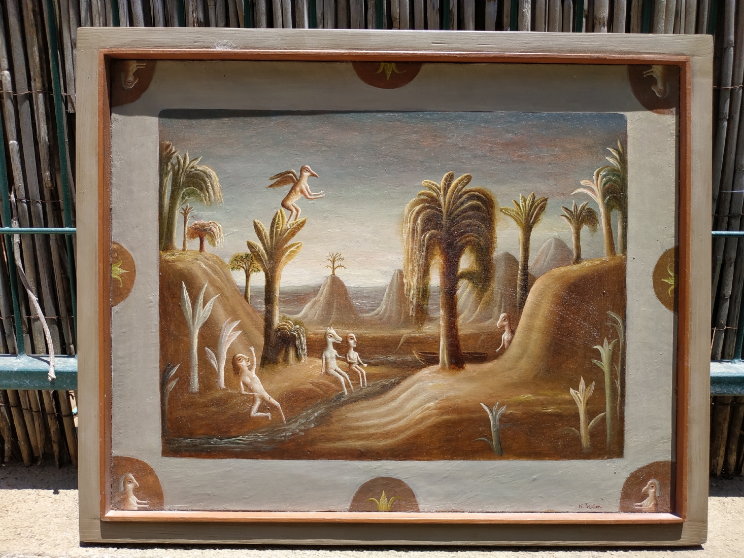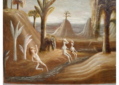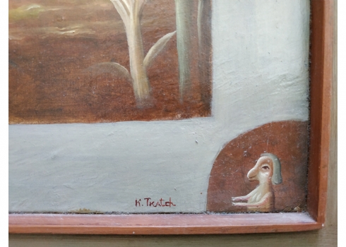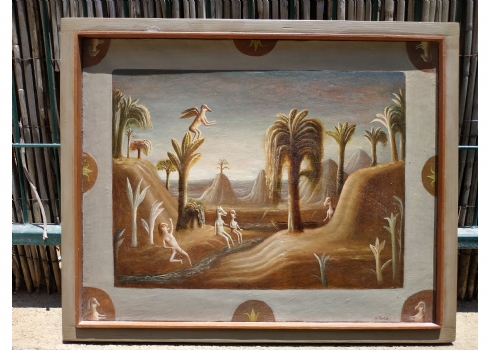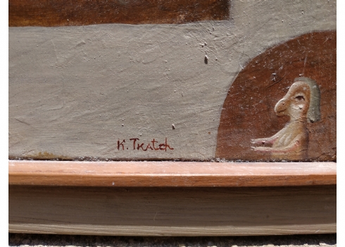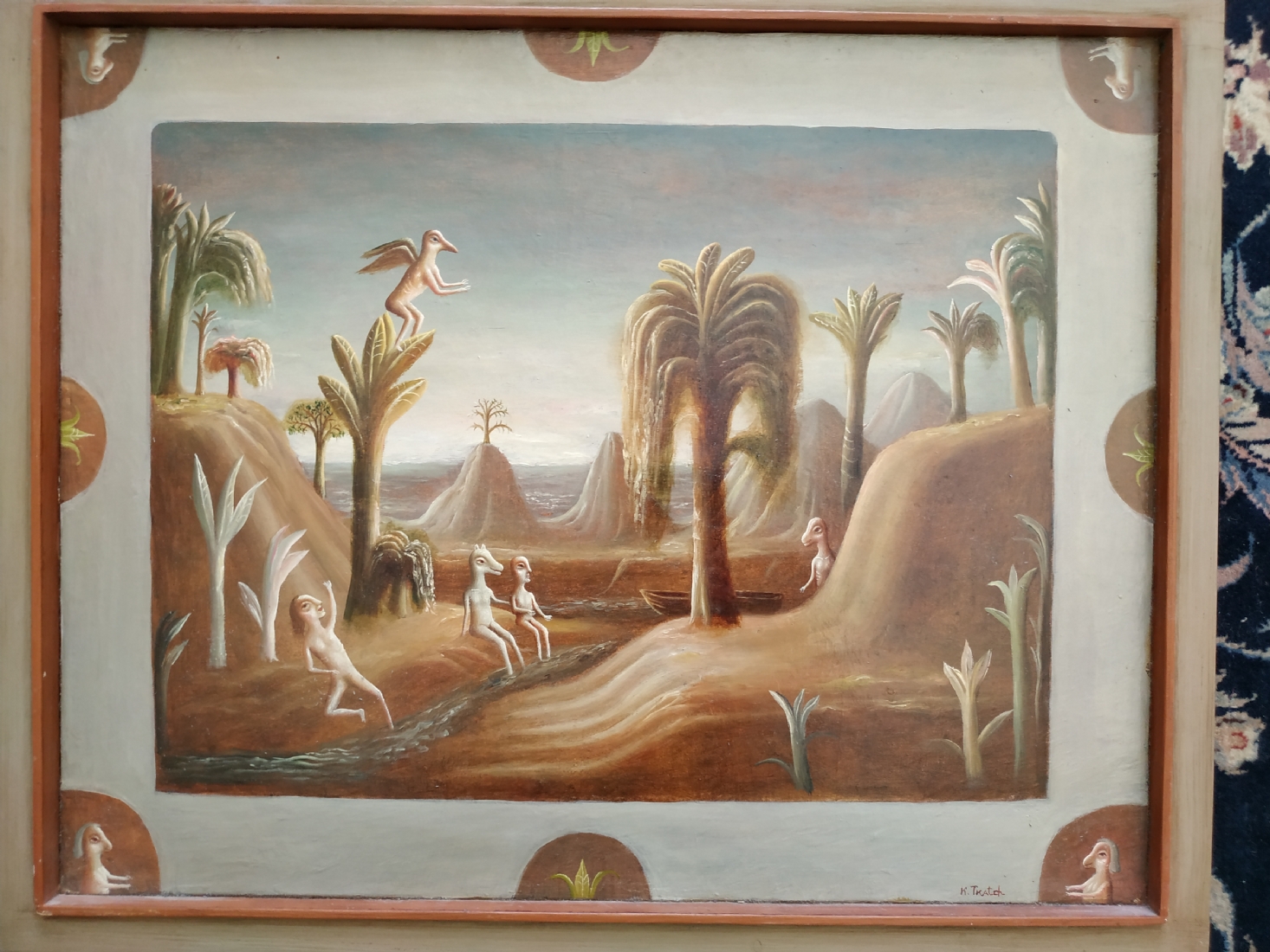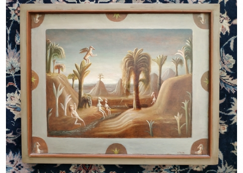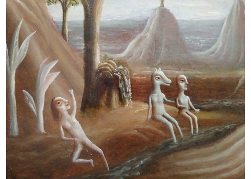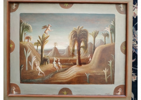 טקץ', קים (Kim Tkatch) - 'דמויות בנוף' - ציור ישן ויפה, שמן על בד, חתום, מידות: 36X45 ס"מ.