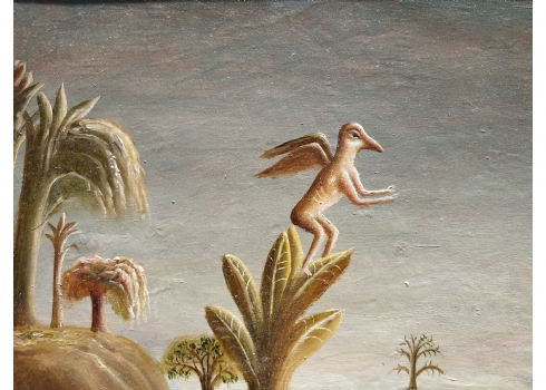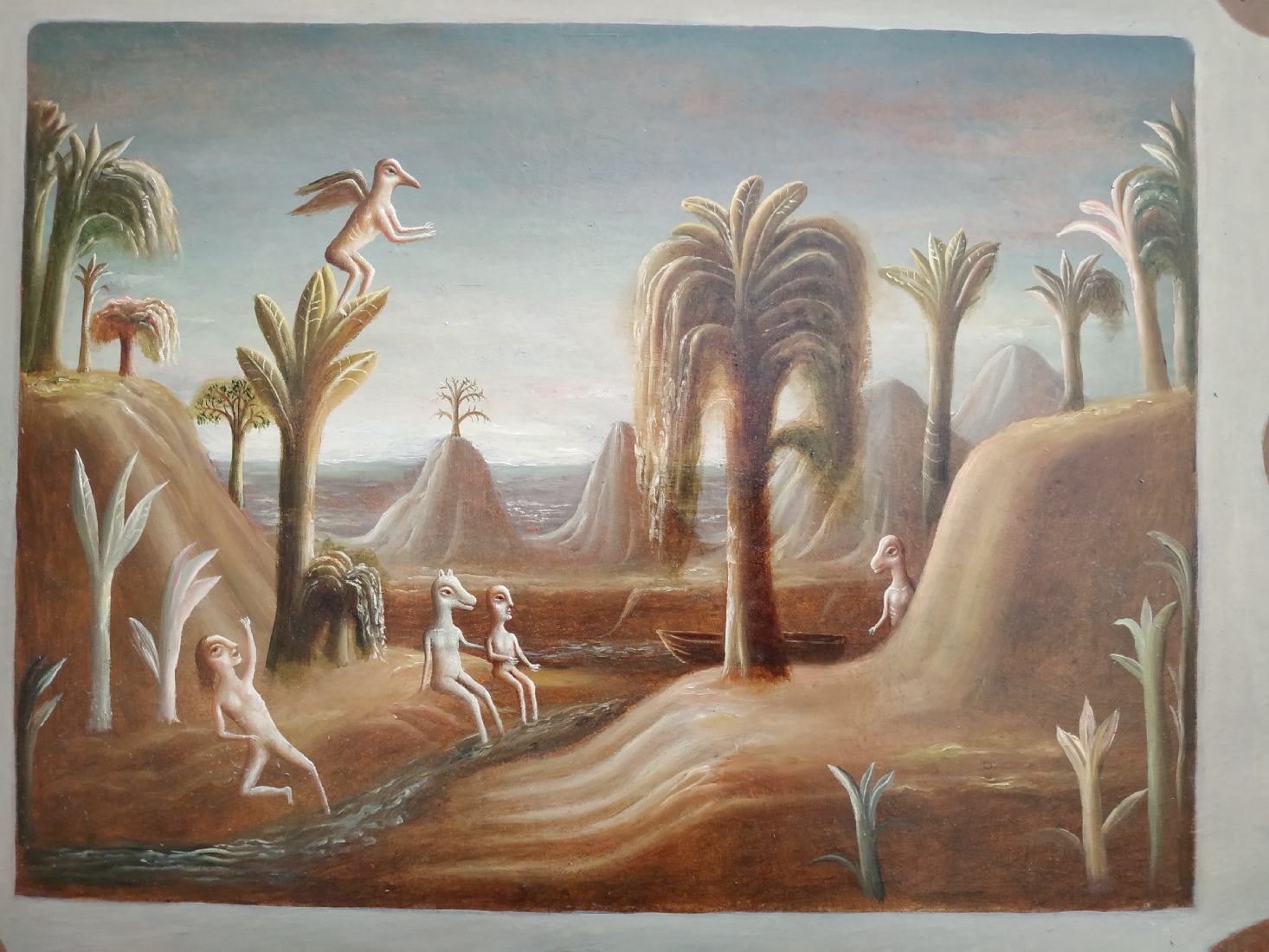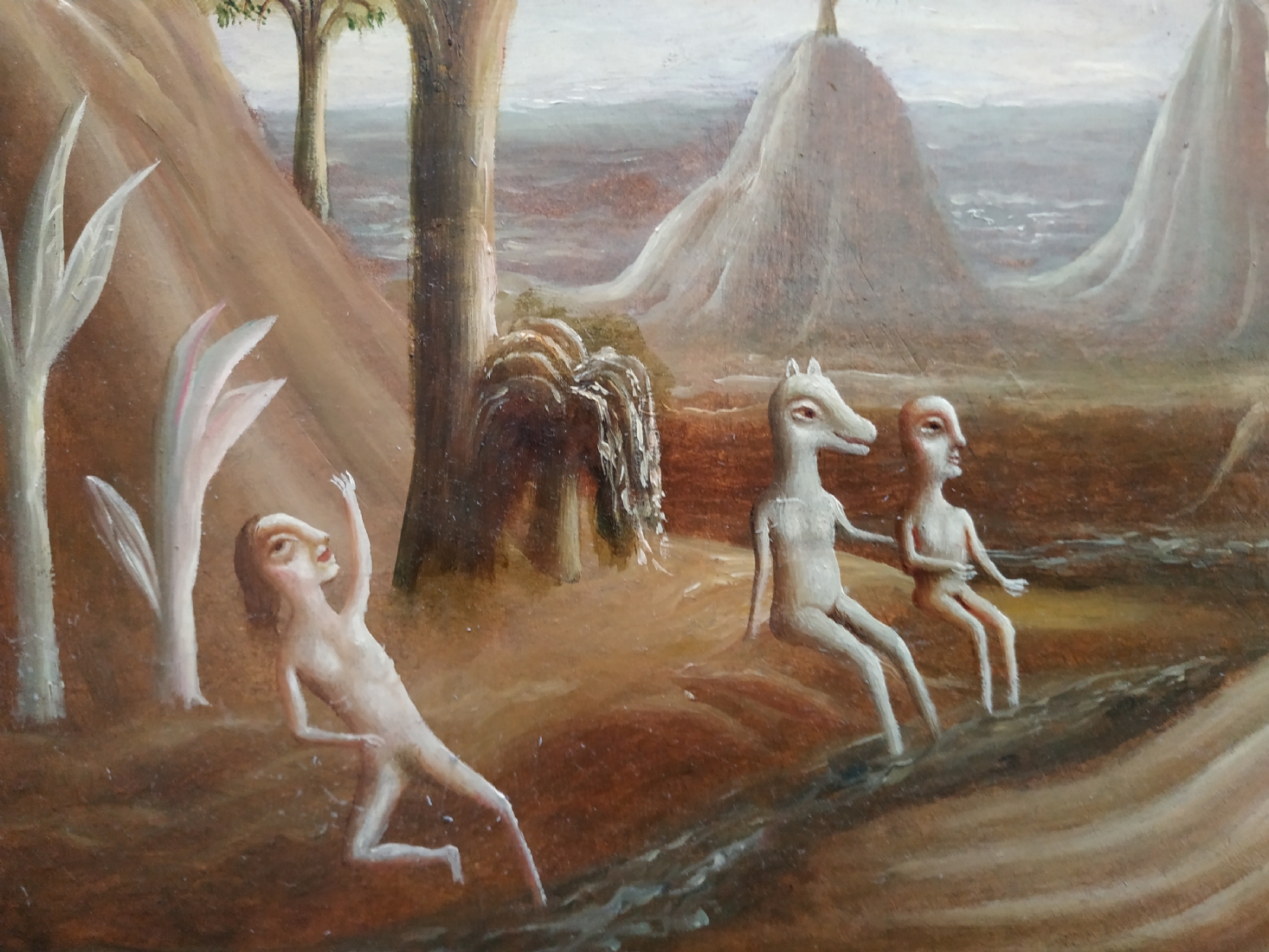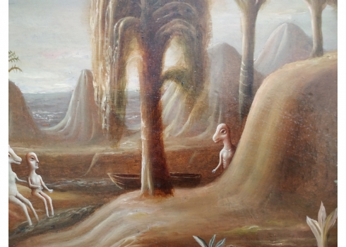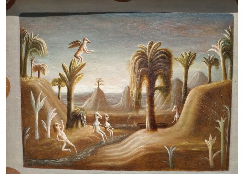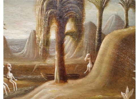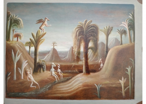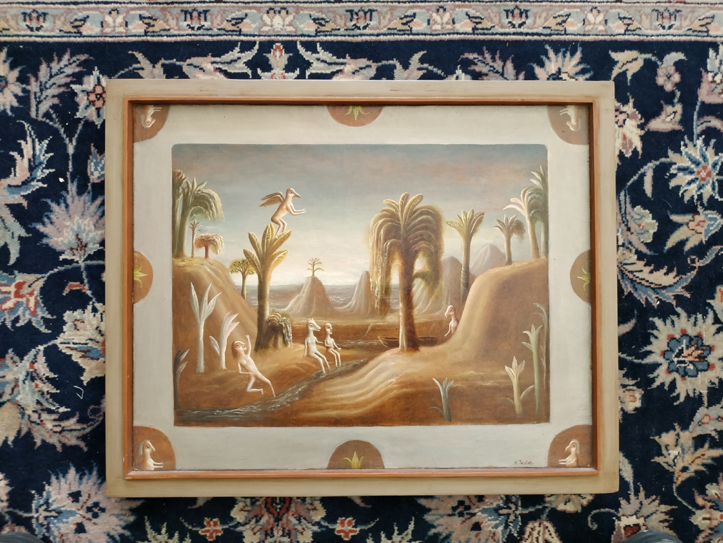 טקץ', קים (Kim Tkatch) - 'דמויות בנוף' - ציור ישן ויפה, שמן על בד, חתום, מידות: 36X45 ס"מ.