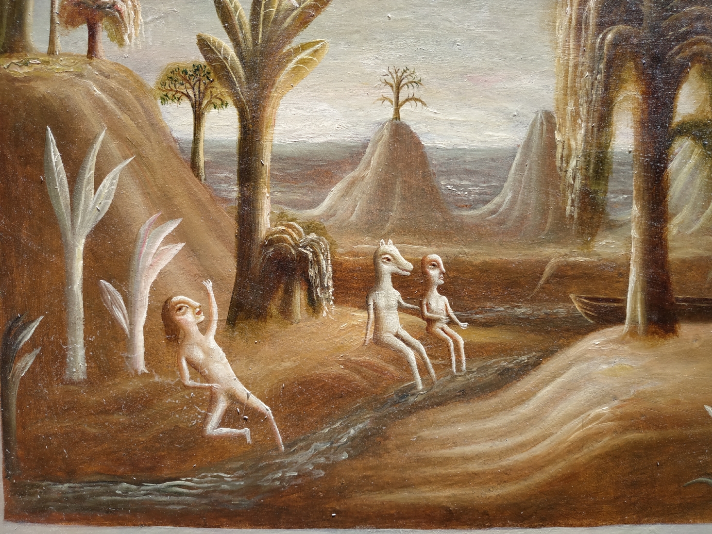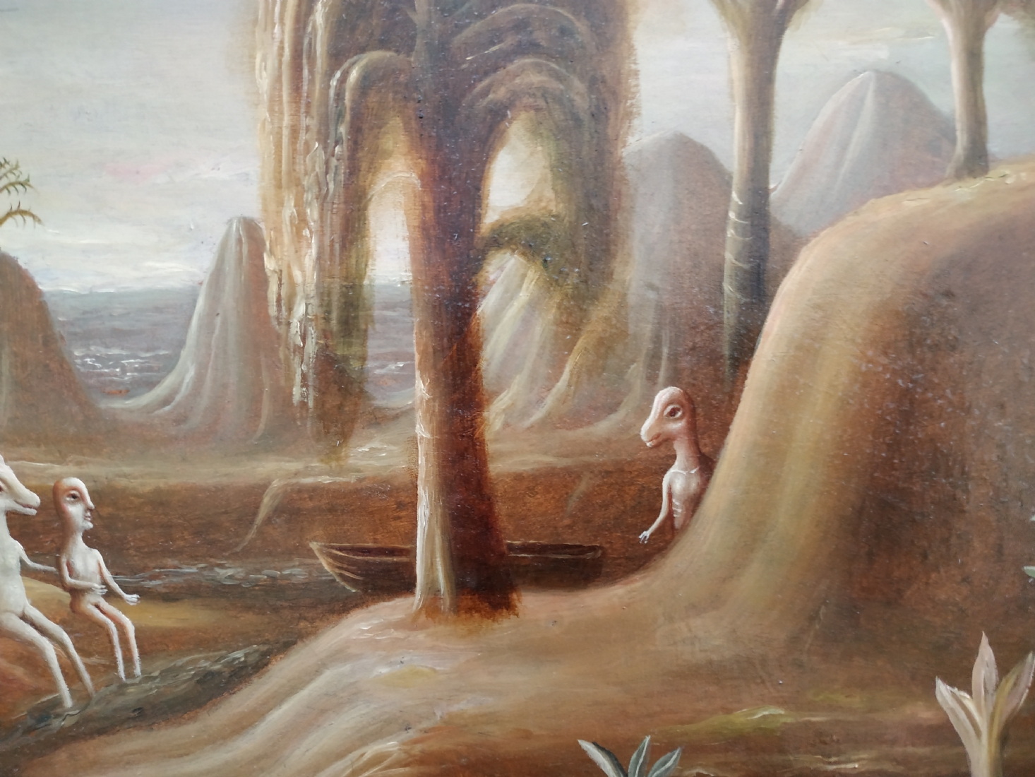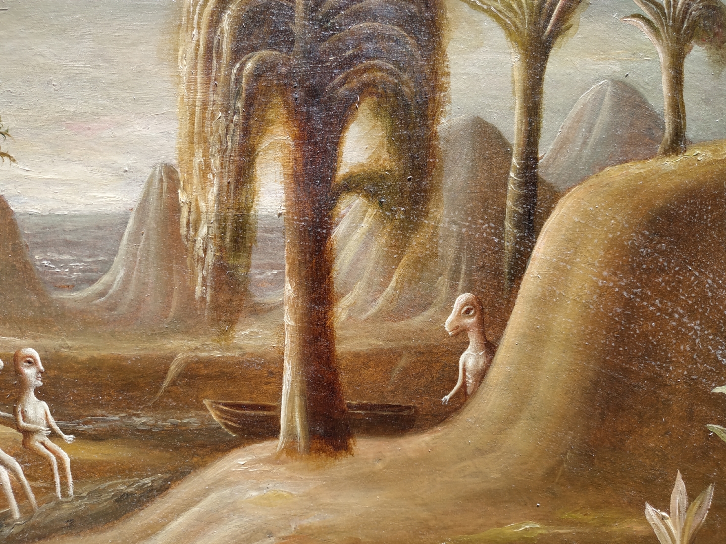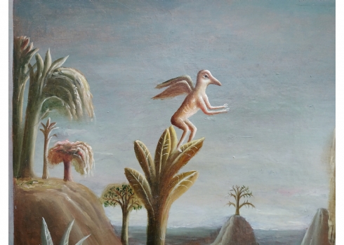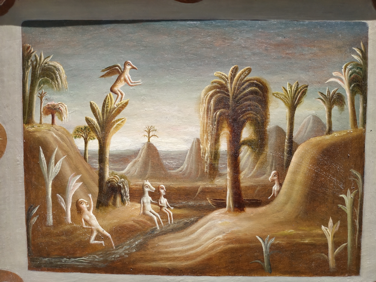 טקץ', קים (Kim Tkatch) - 'דמויות בנוף' - ציור ישן ויפה, שמן על בד, חתום, מידות: 36X45 ס"מ.