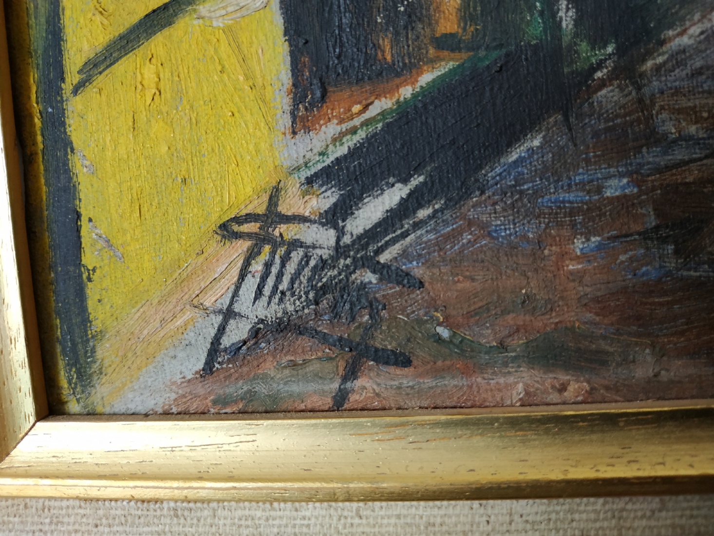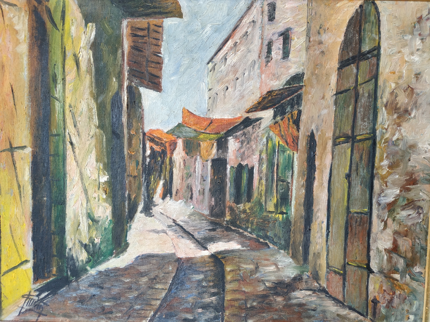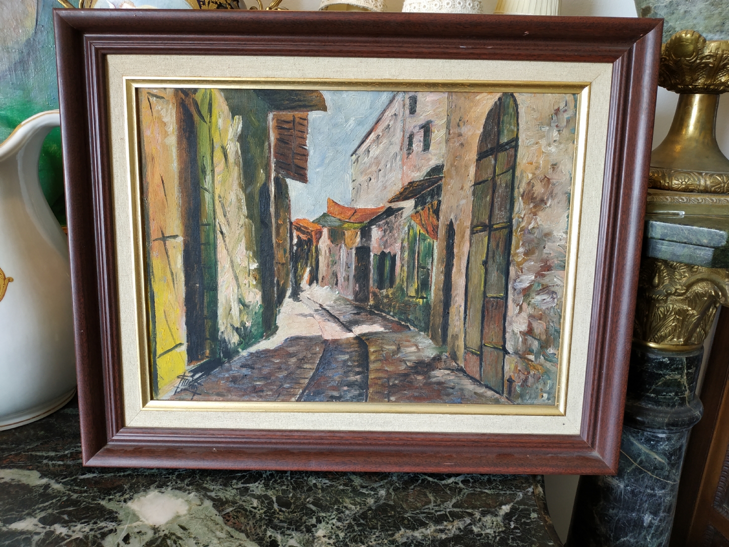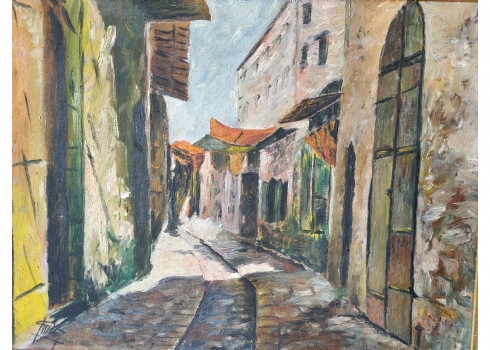 ציור ישן, שמן על בד, חתום, מידות: 35X46 ס"מ.