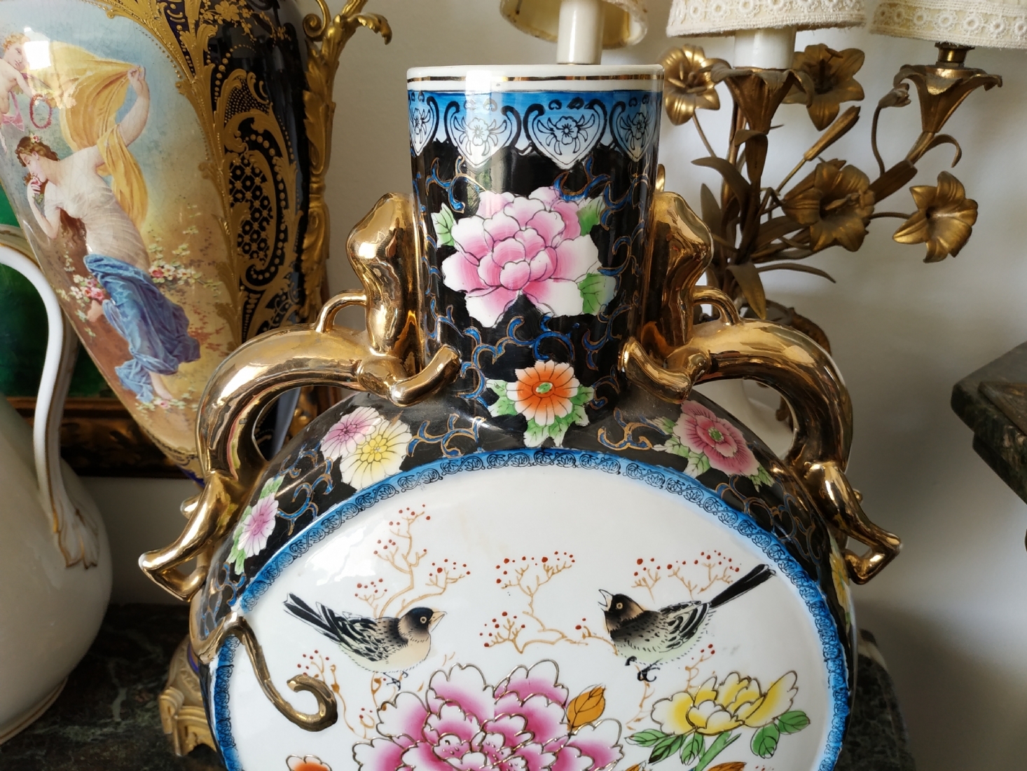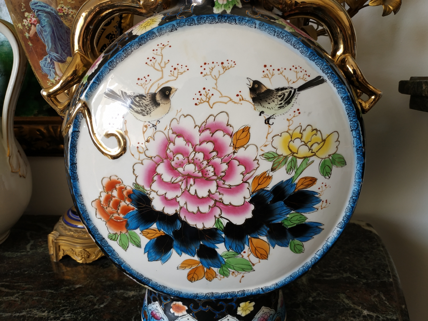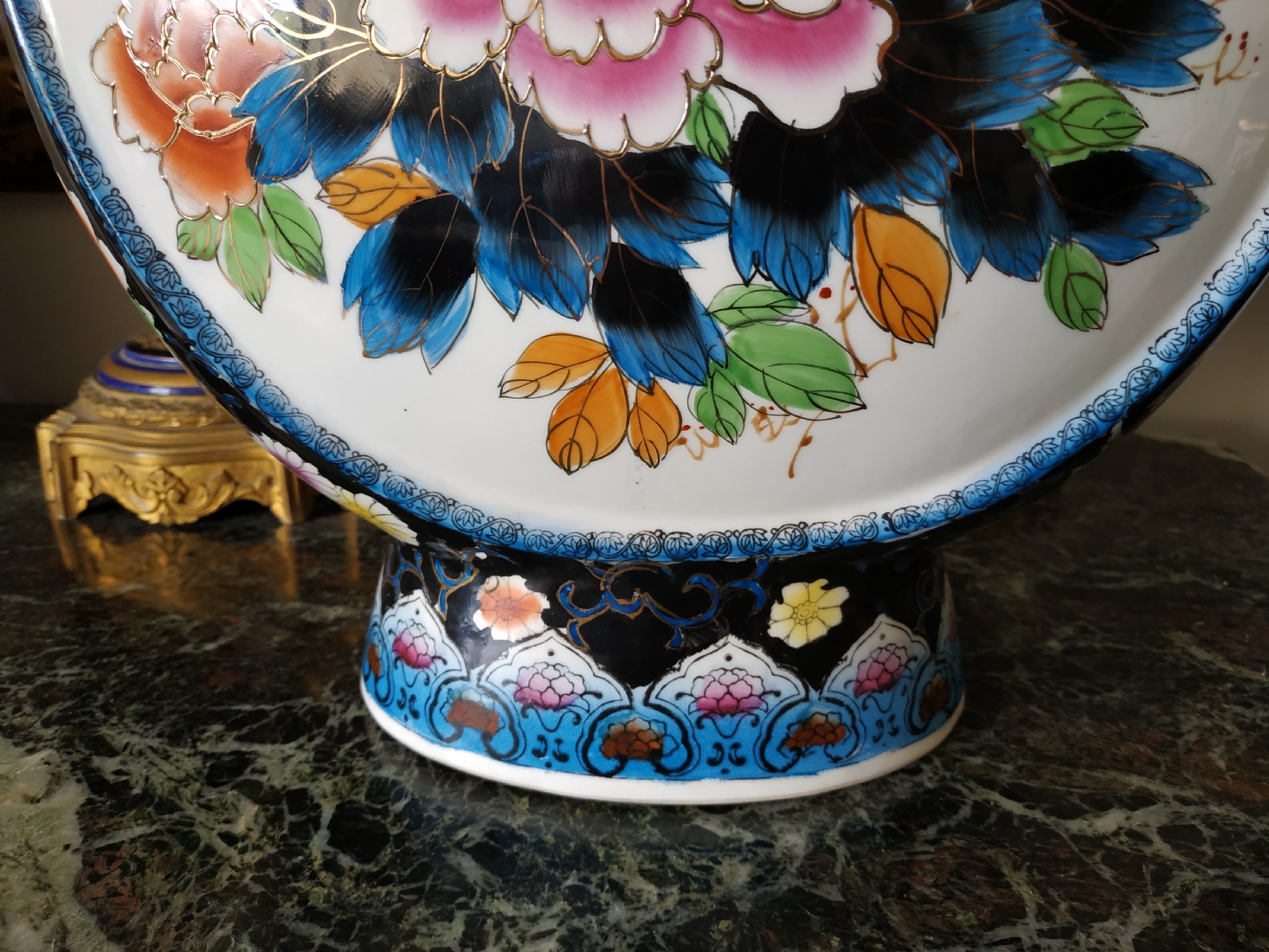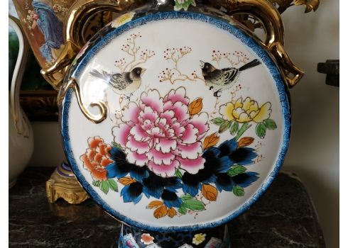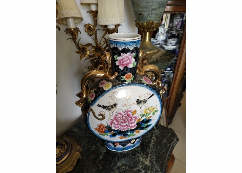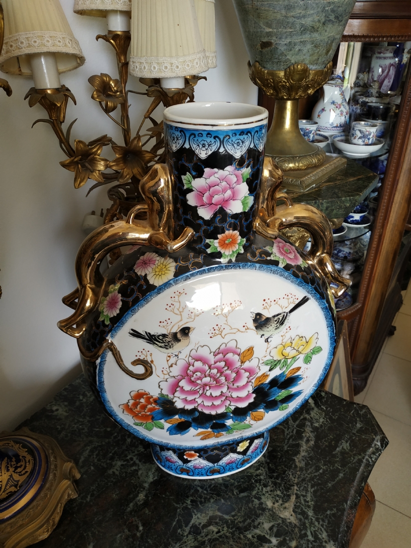 אגרטל סיני גדול מיימדים, בצורת פלאסק מעוטר באמייל ובזהב, גובה: 47 ס"מ.