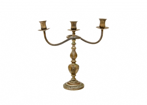 קנדלברה ישנה, עשויה פליז, מעוטרת עיטורי בלט, גובה: 33 ס"מ.