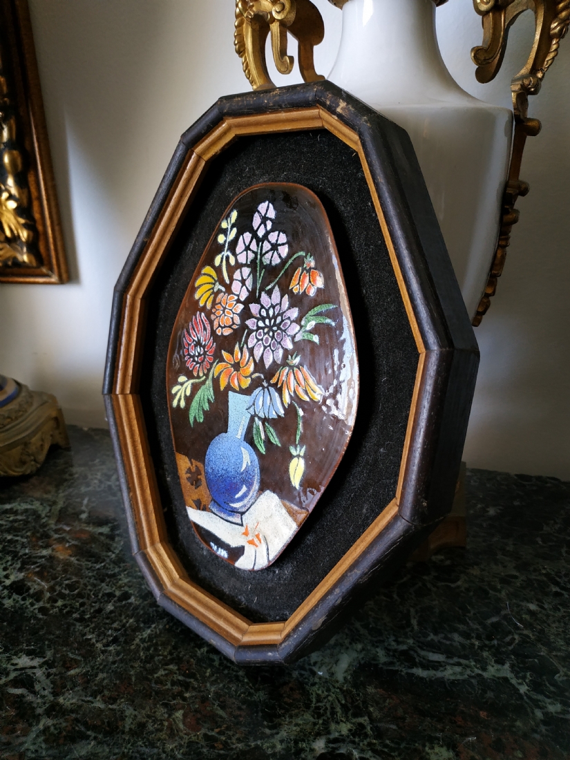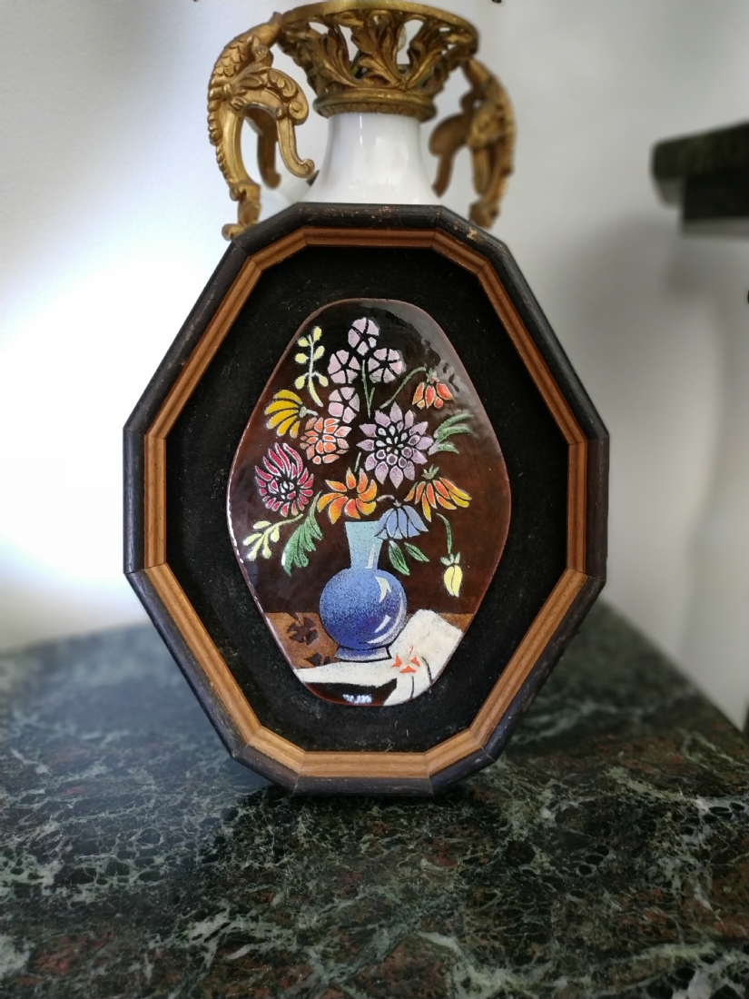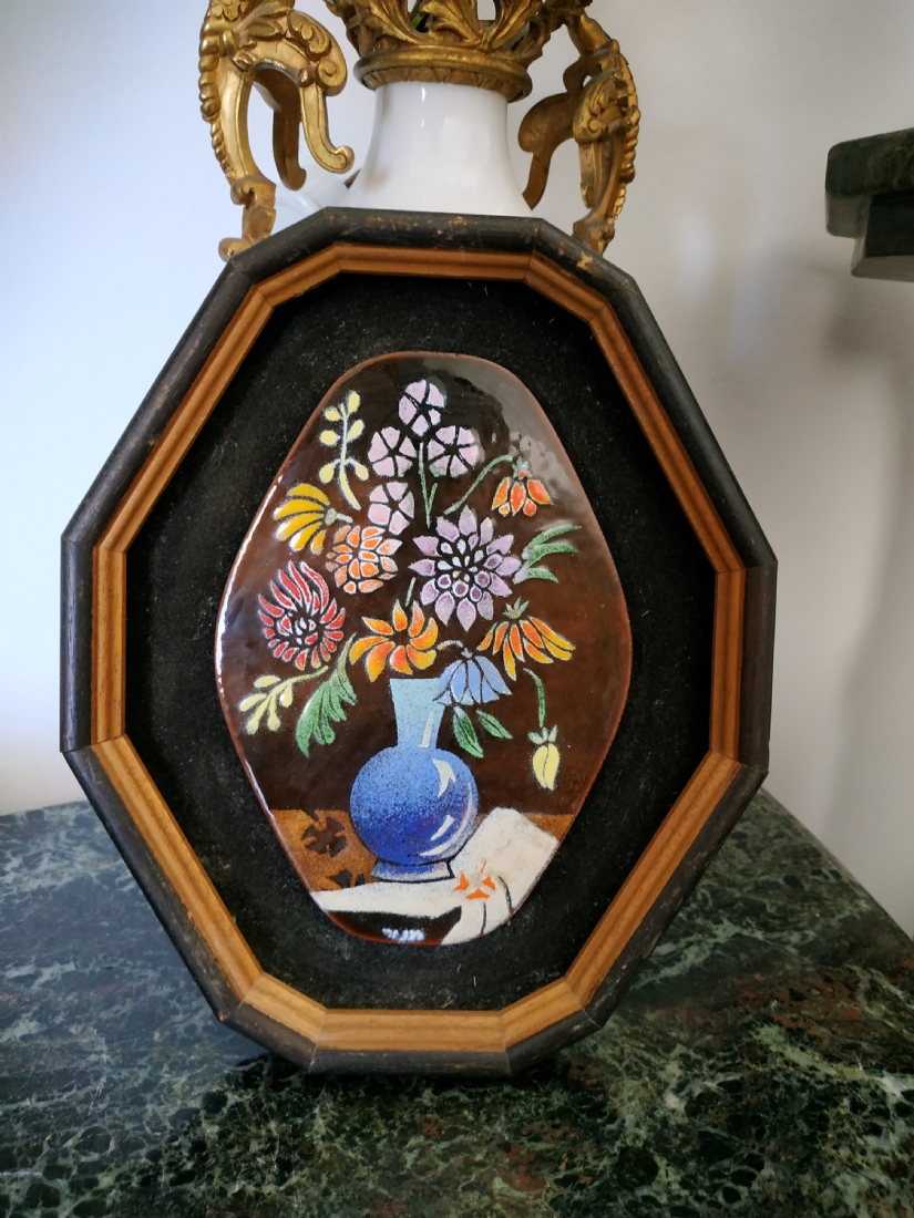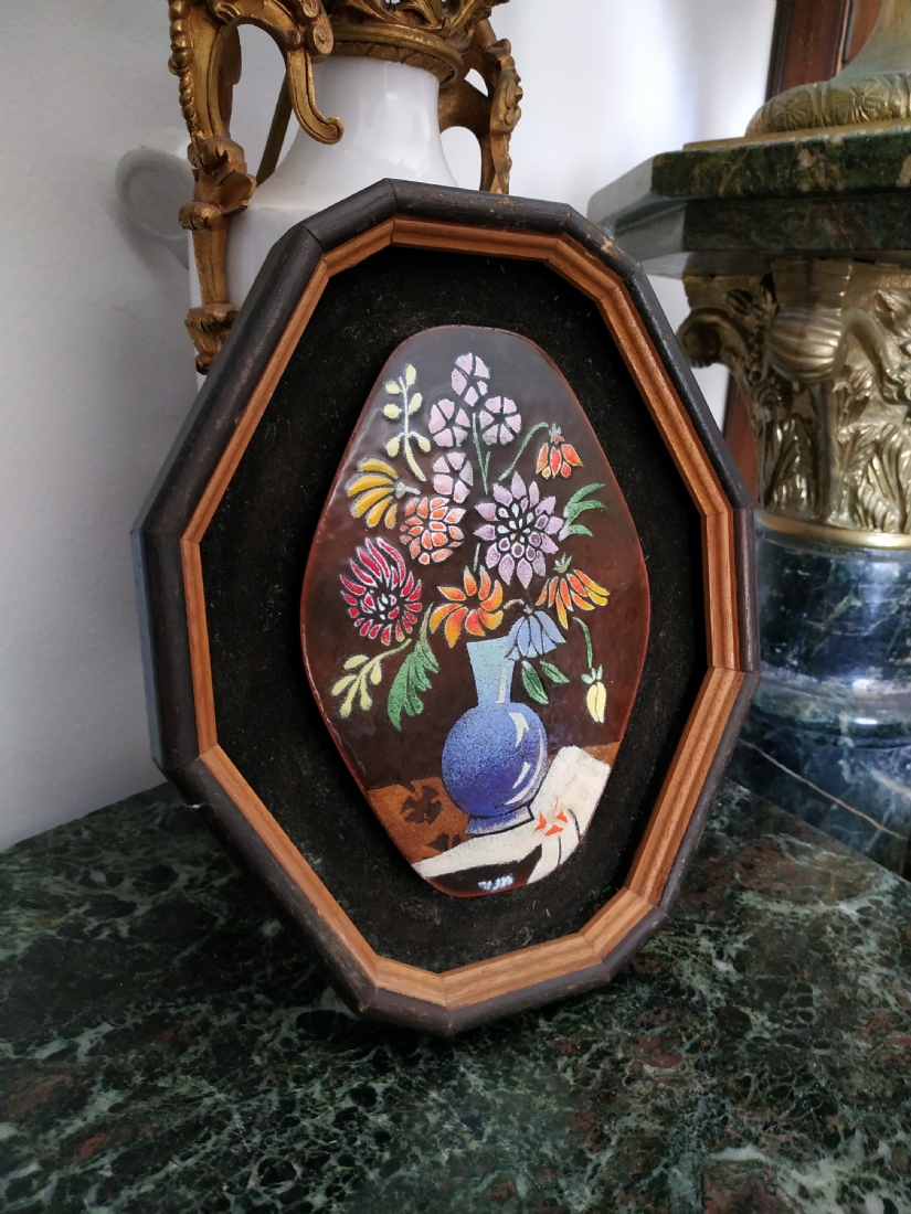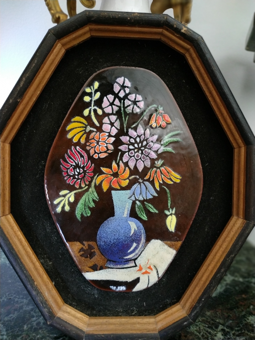 תמונת אמייל על לוח נחושת, חתום: 'מנור', ממוסגר, גובה המסגרת: 24 ס"מ, רוחב המסגרת: 19.5 ס"מ.