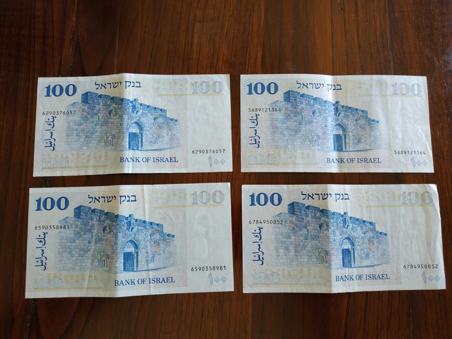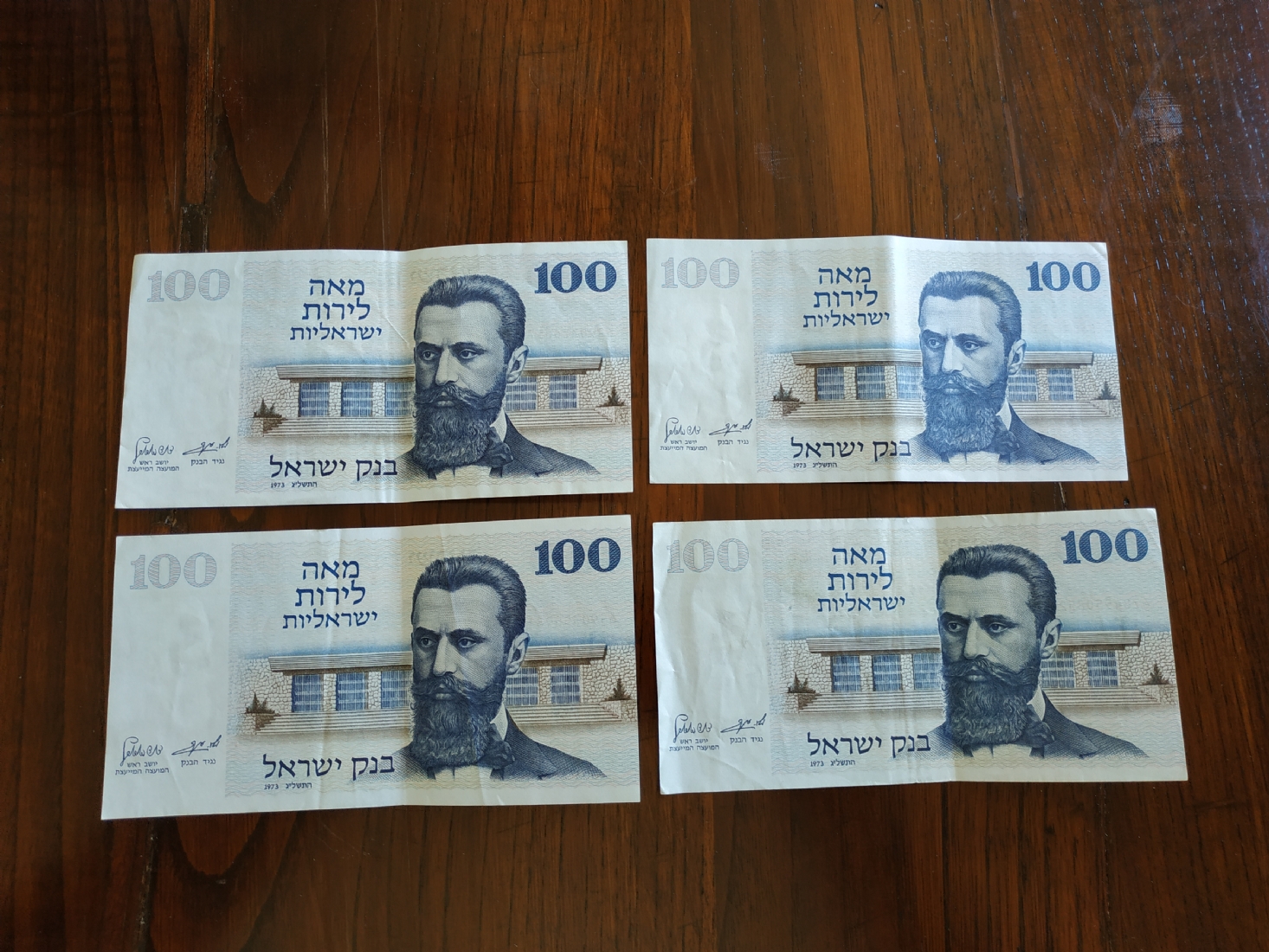 לאספני שטרי כסף - לוט של 4 שטרי כסף ישראלים ישנים.