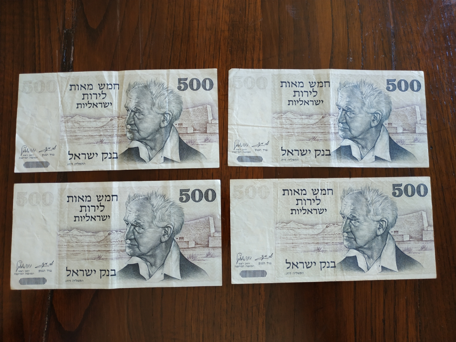 לאספני שטרי כסף - לוט של 4 שטרי כסף ישראלים ישנים.