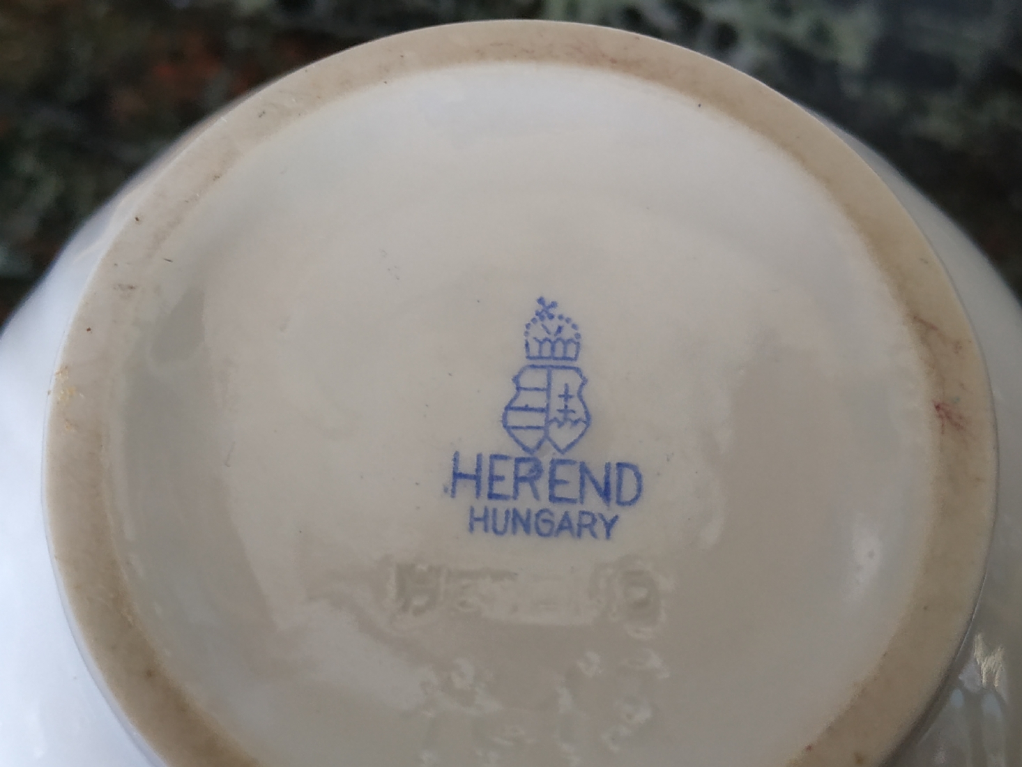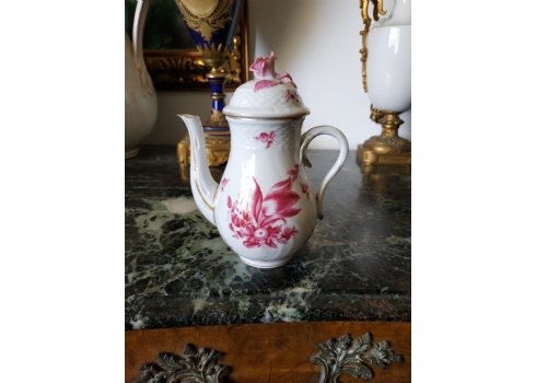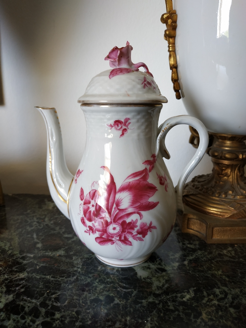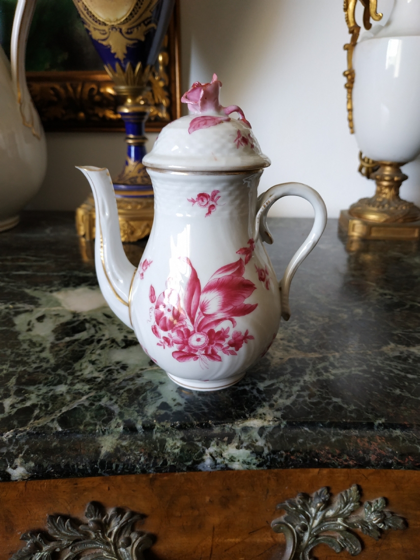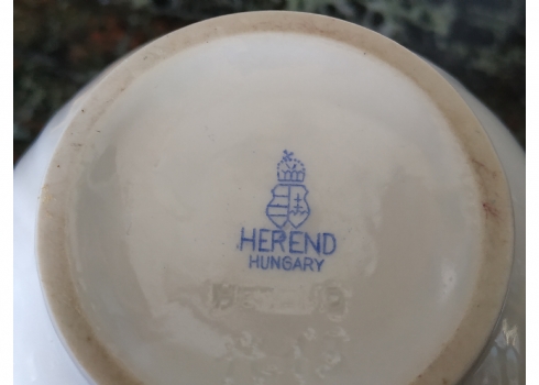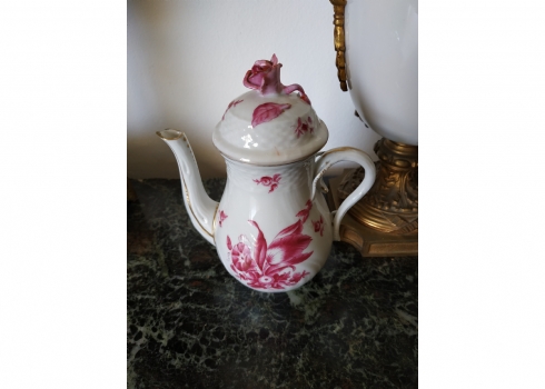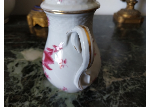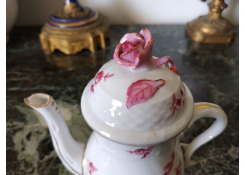 קנקן פורצלן הונגרי איכותי ויפה מתוצרת: 'הרנד' (Herend) ומכסה תואם, מעוטרים