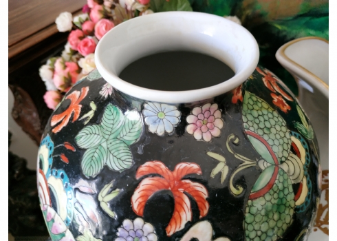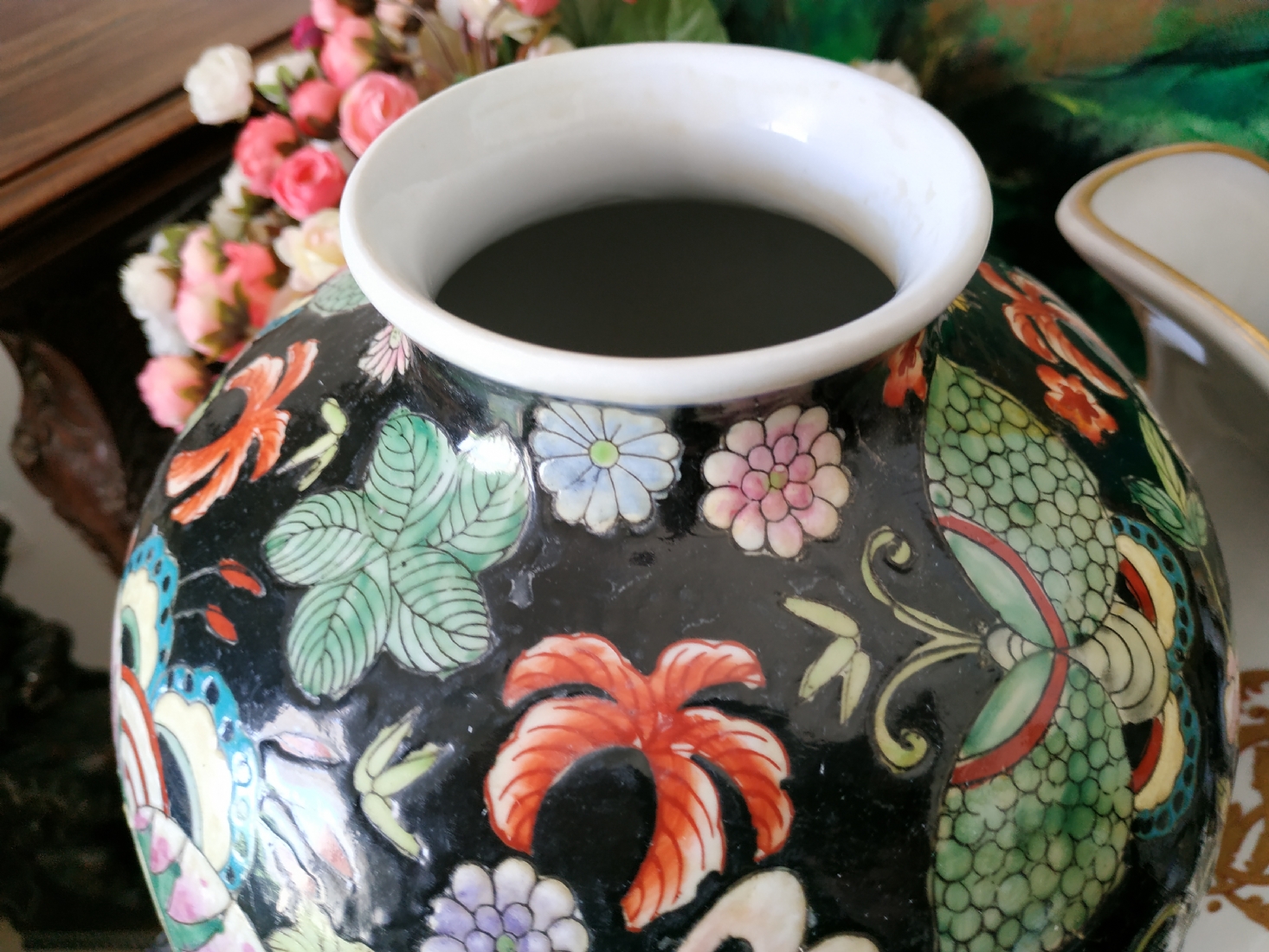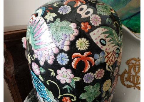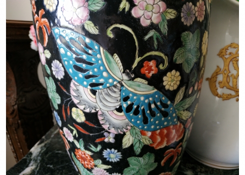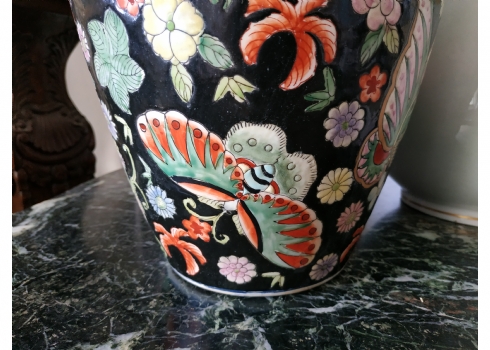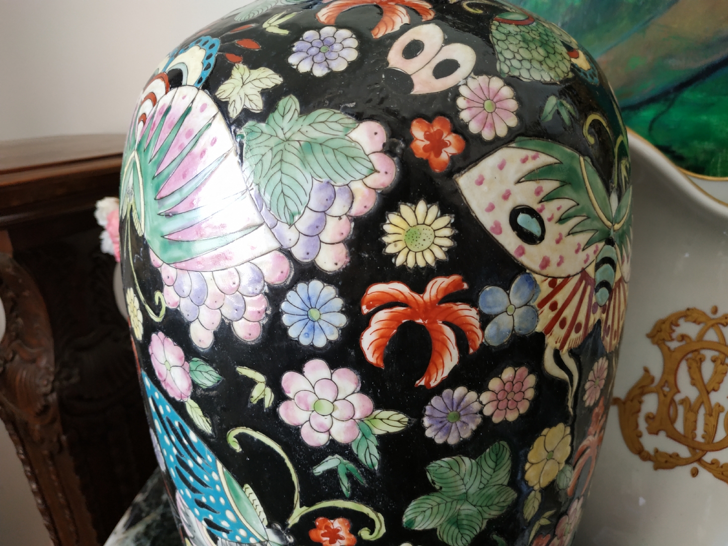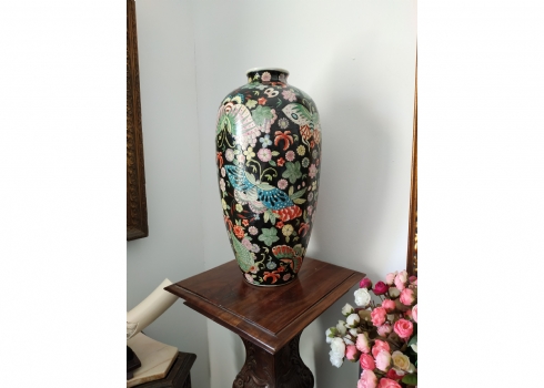 אגרטל סיני דקורטיבי גדול (גבוה), עשוי חרס מעוטר באמייל פוליכרום בדגם פרפרים