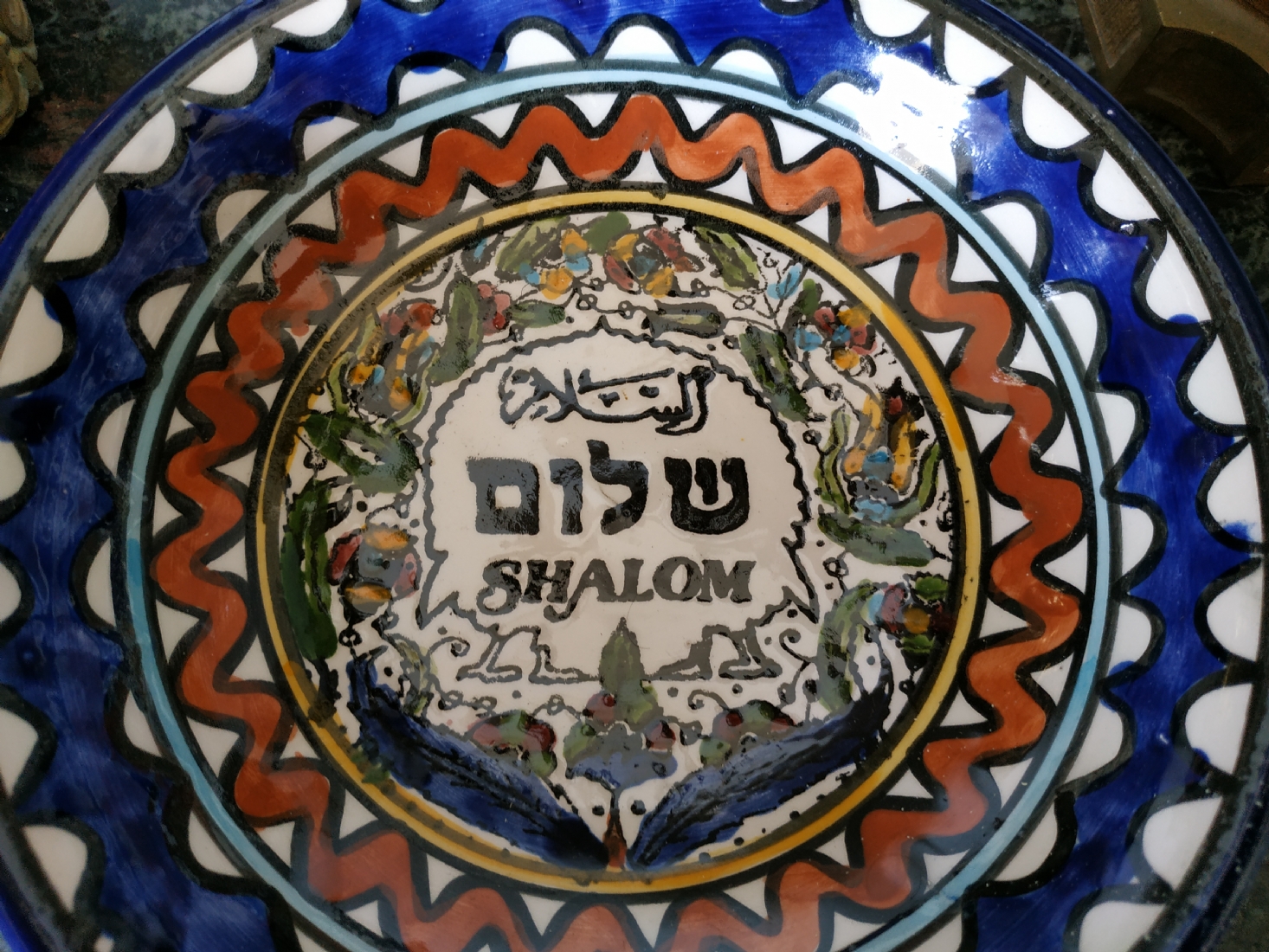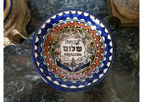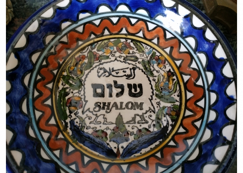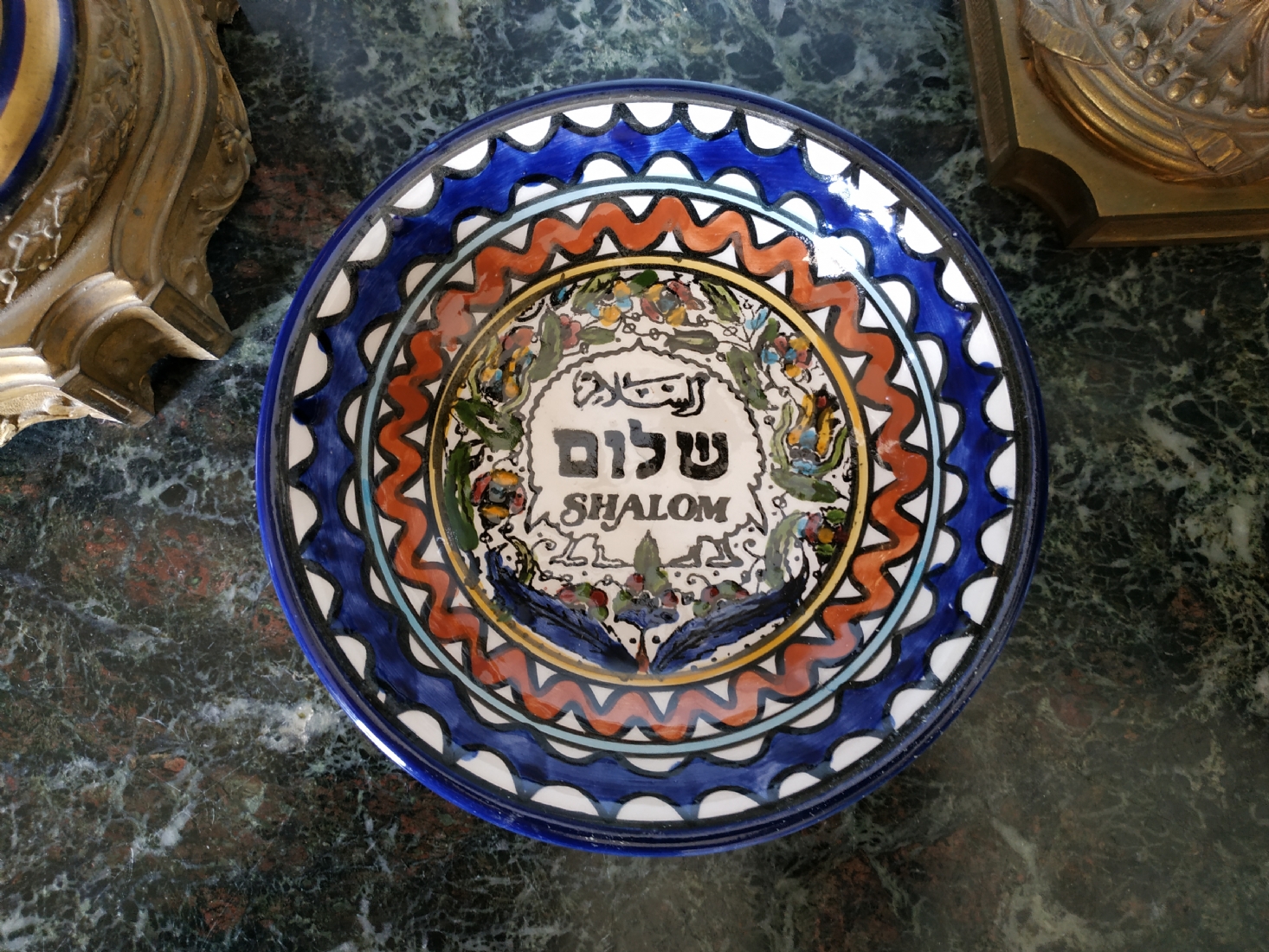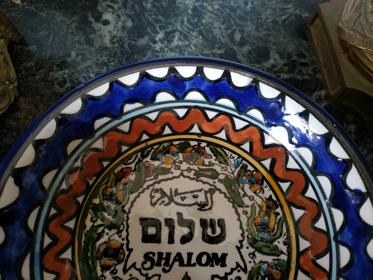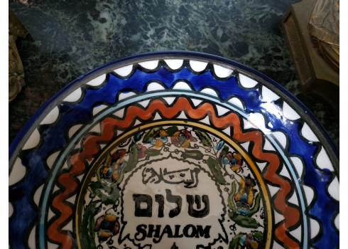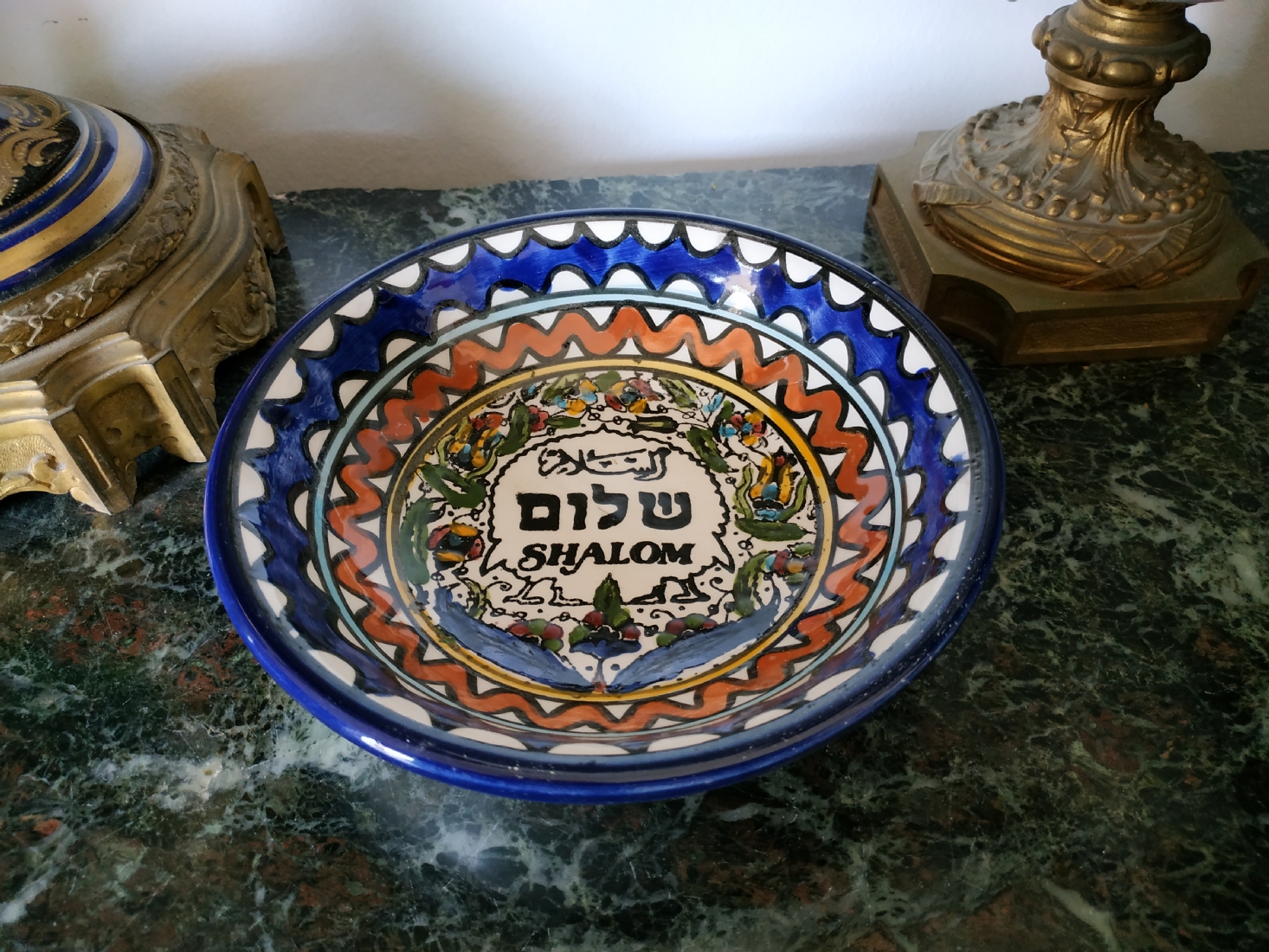 לאספני קרמיקה ארמנית ישנה - קערה ארמנית עשויה חרס מעוטרת ציורי יד וכיתוב עברי