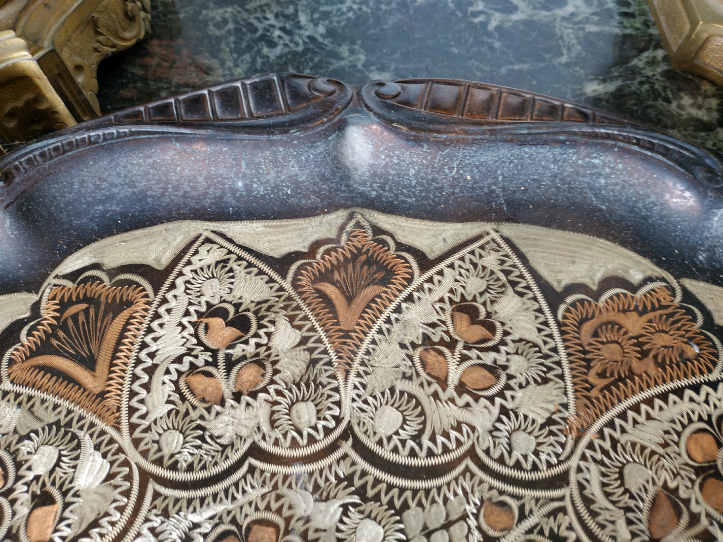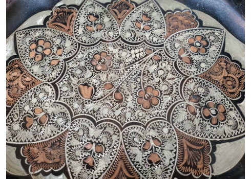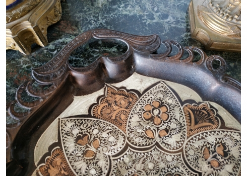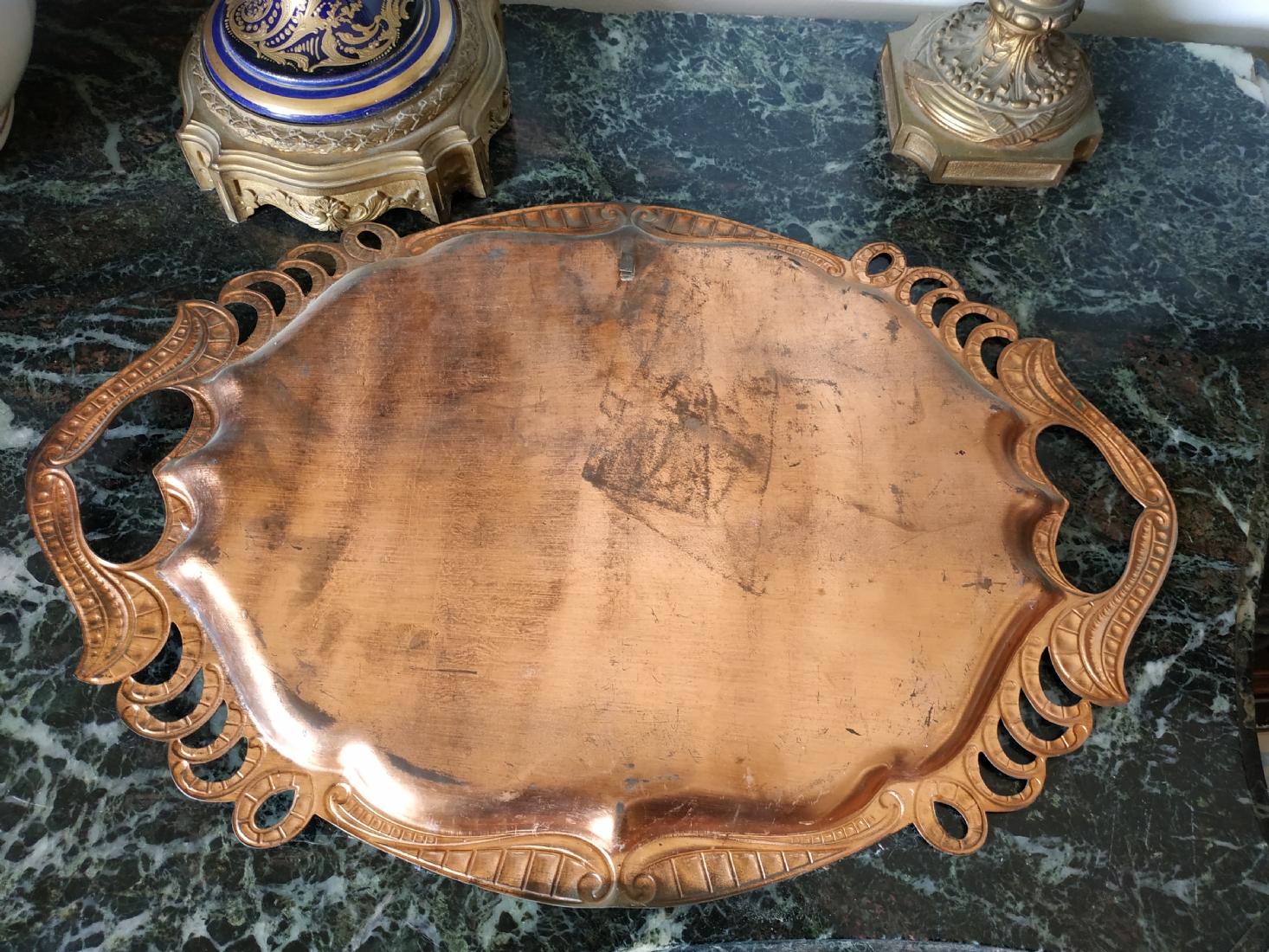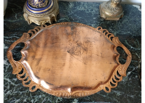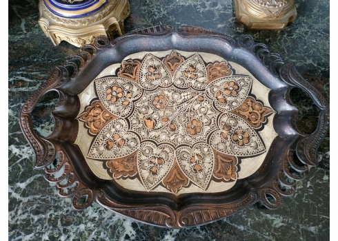 מגש נחושת הודי מעוטר, רוחב: 32 ס"מ, אורך: 48 ס"מ.