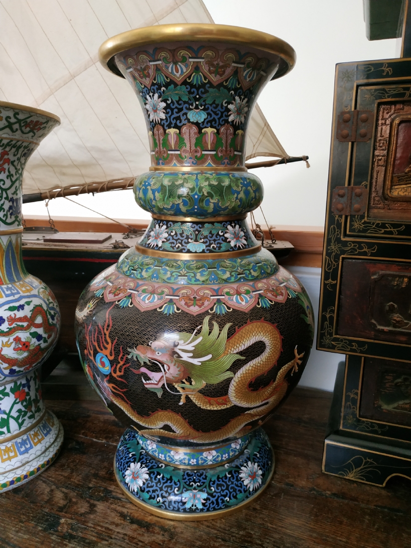 אגרטל קלואזונה (Cloisonne) סיני ישן ואיכותי, עשוי נחושת ומעוטר באמייל, גובה: 51 ס"מ.