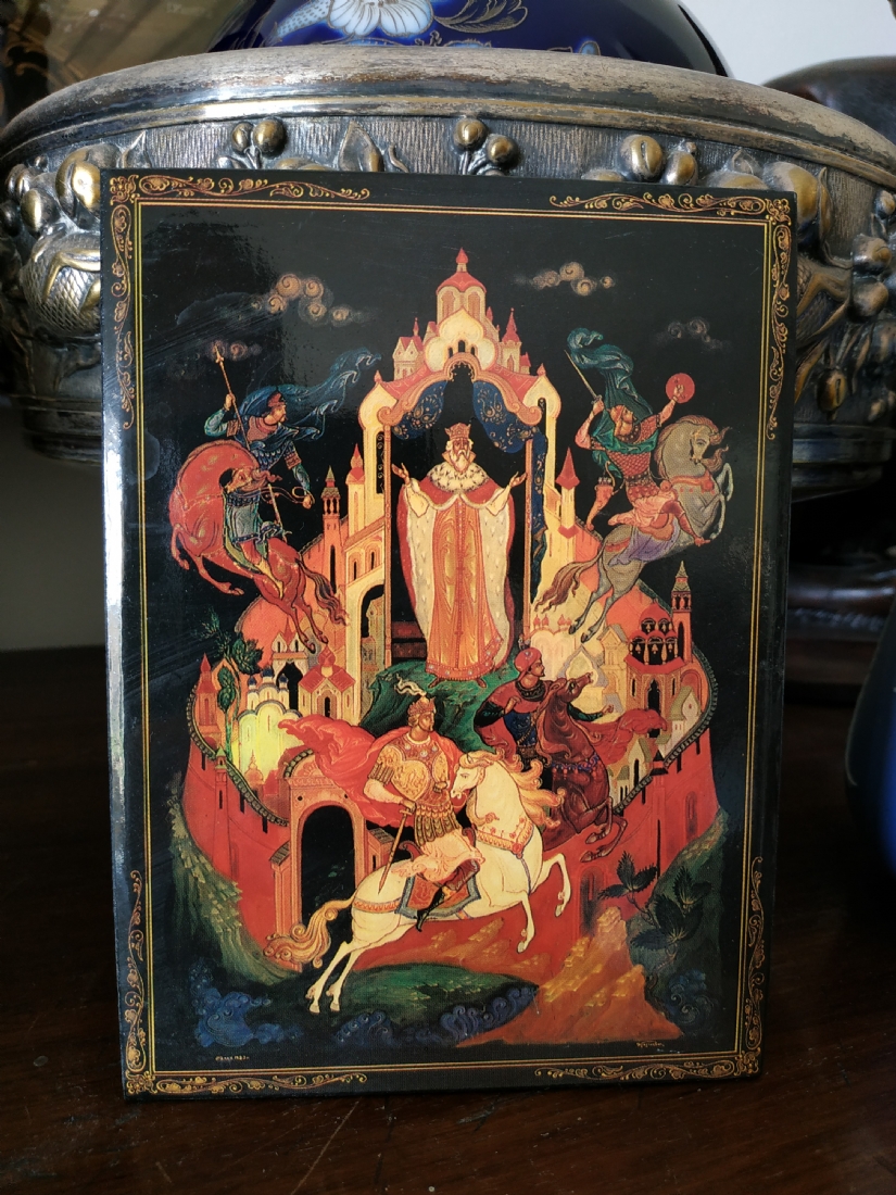 תמונת 'פלך' רוסית (Russian Palekh) מצויירת על לוח עץ, חתומה
