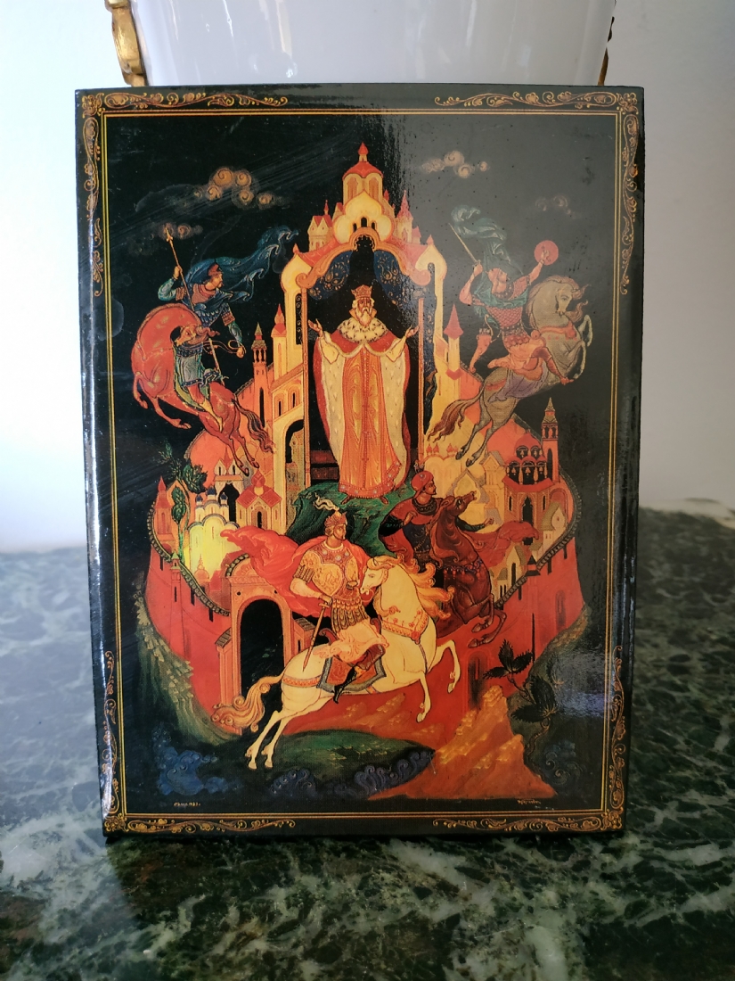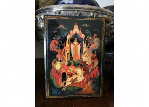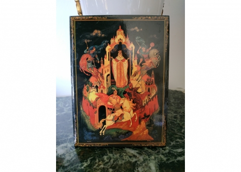 תמונת 'פלך' רוסית (Russian Palekh) מצויירת על לוח עץ, חתומה, מידות: 15X11 ס"מ.