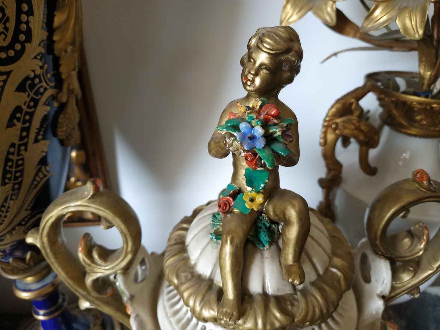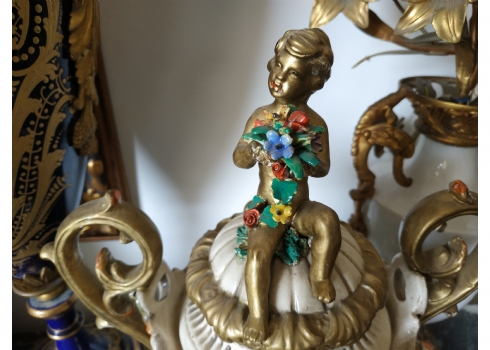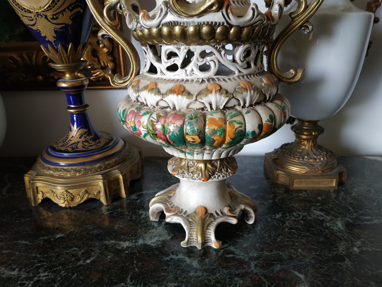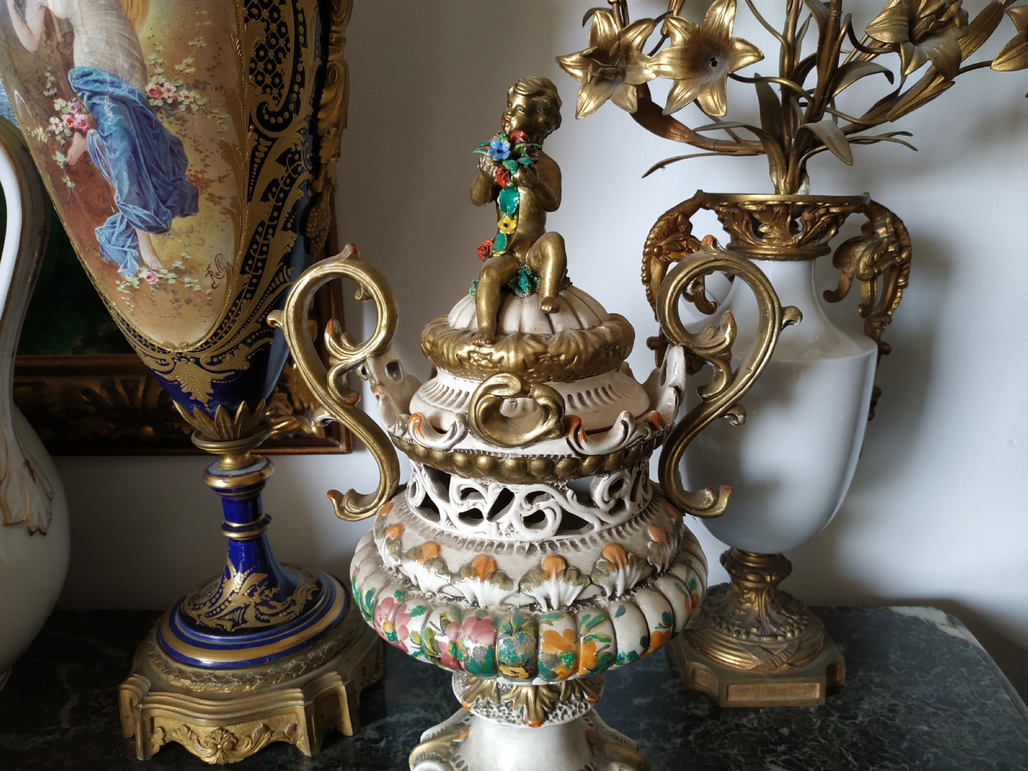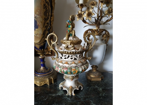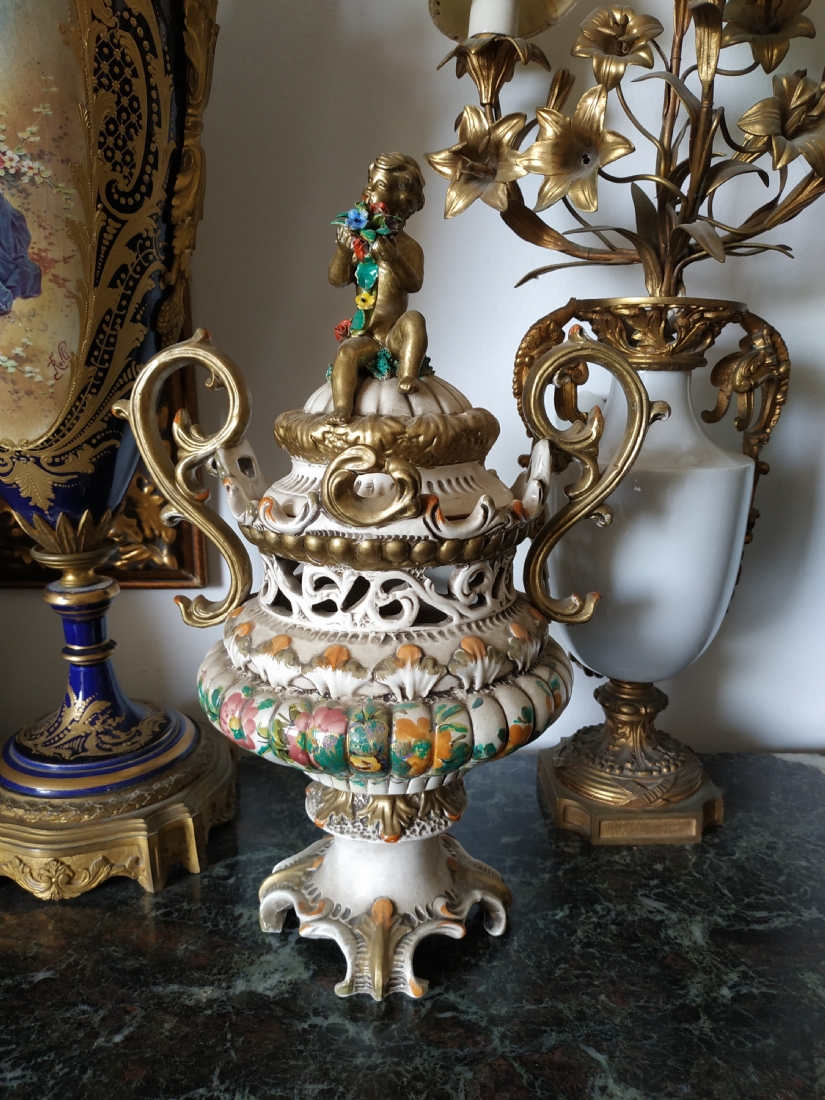 אגרטל איטלקי מרשים ומכסה תואם, עשויים חרס מעוטר, חתום