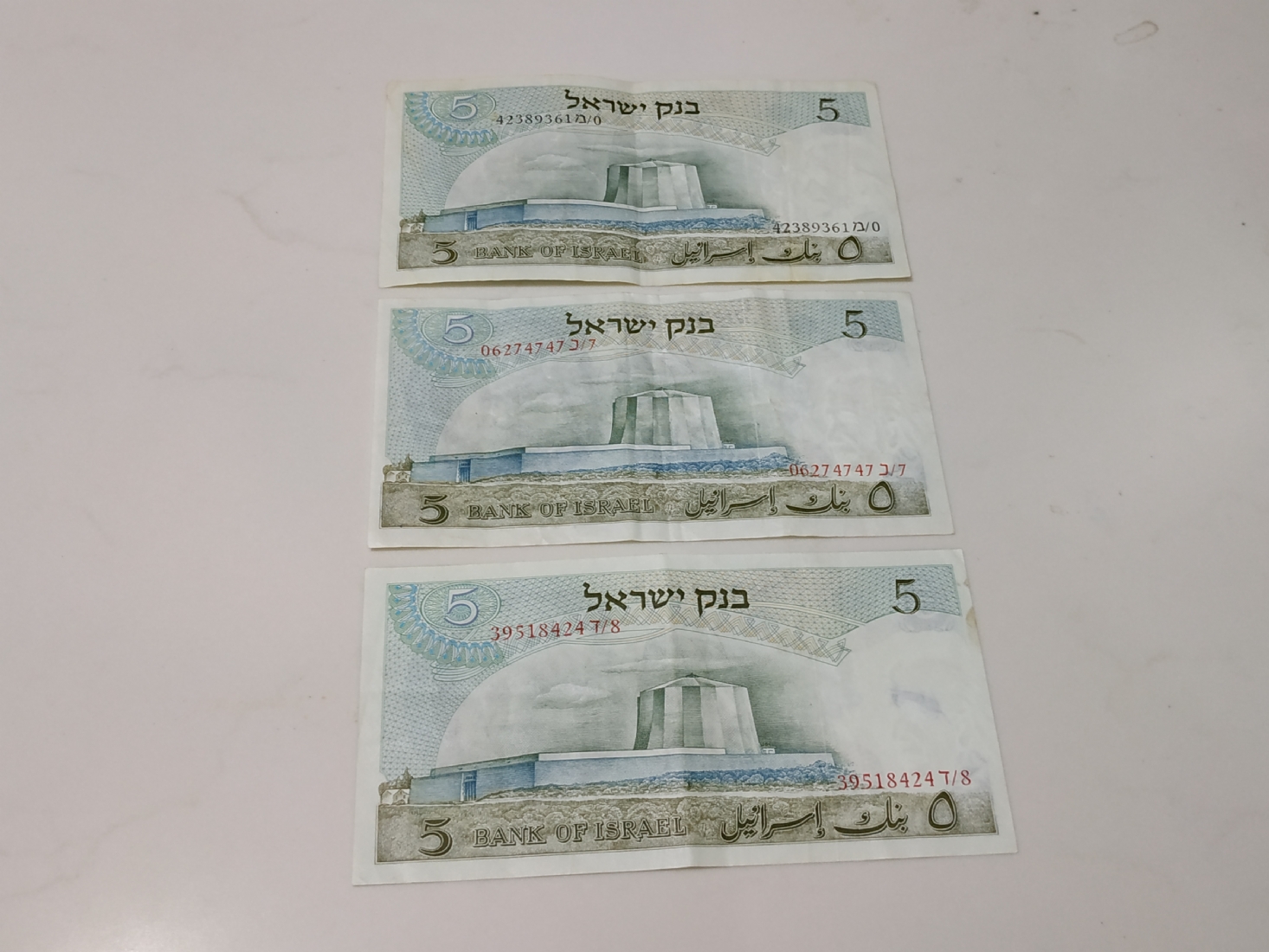לאספני שטרות כסף - לוט של 3 שטרי כסף ישראלים ישנים.