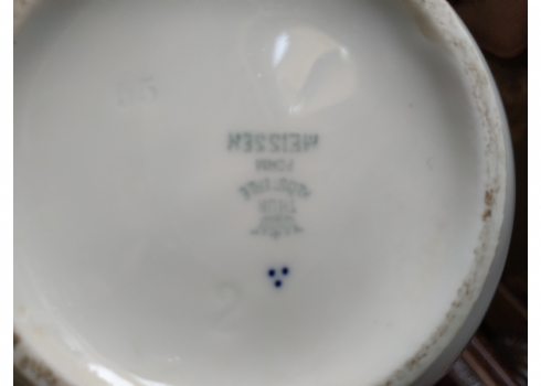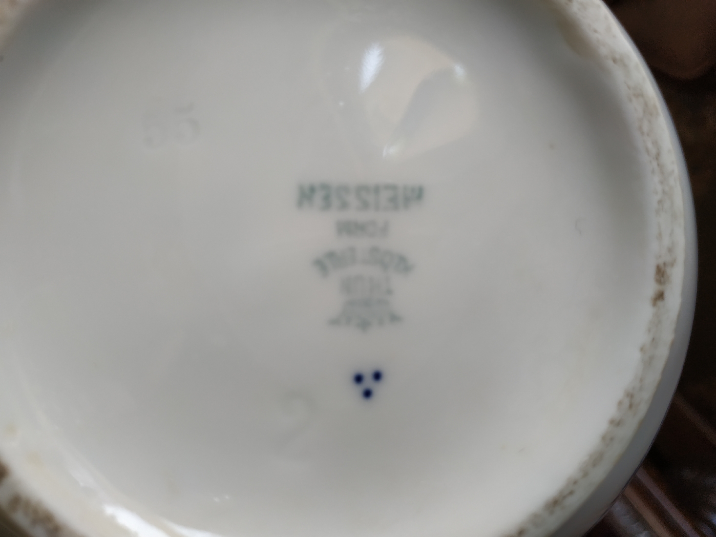 מספר הפריט בקטלוג 341קנקן פורצלן גרמני עתיק לשוקו, מעוטר בכחול קובלט בדגם 'הבצל הכחול' (Blue Onion) הידוע גם כ: 'צביבלמוסטר' (Zwiebelmuster), חתום, גובה: 23 ס"מ.