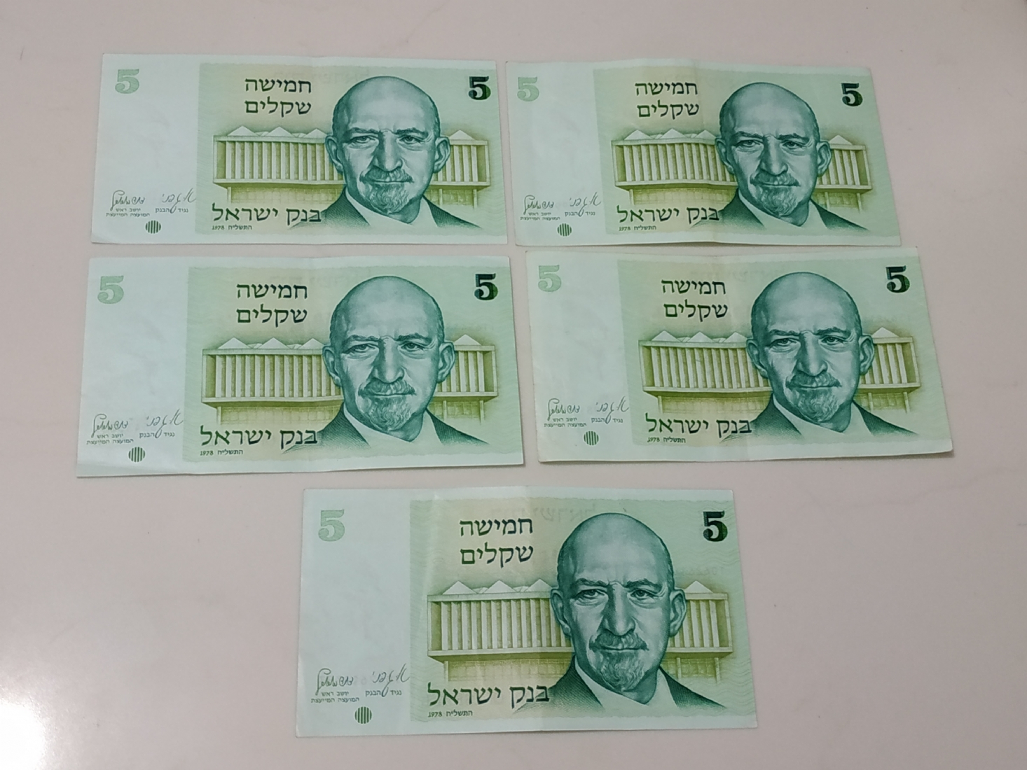 לאספני שטרי כסף ישנים - לוט של 5 שטרי כסף ישראלים ישנים.
