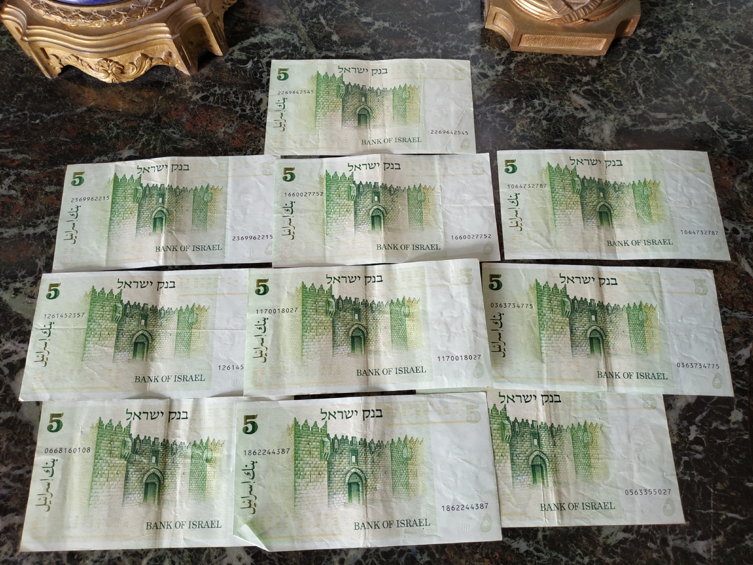 לאספני שטרות כסף - לוט של 10 שטרי כסף ישראלים ישנים.