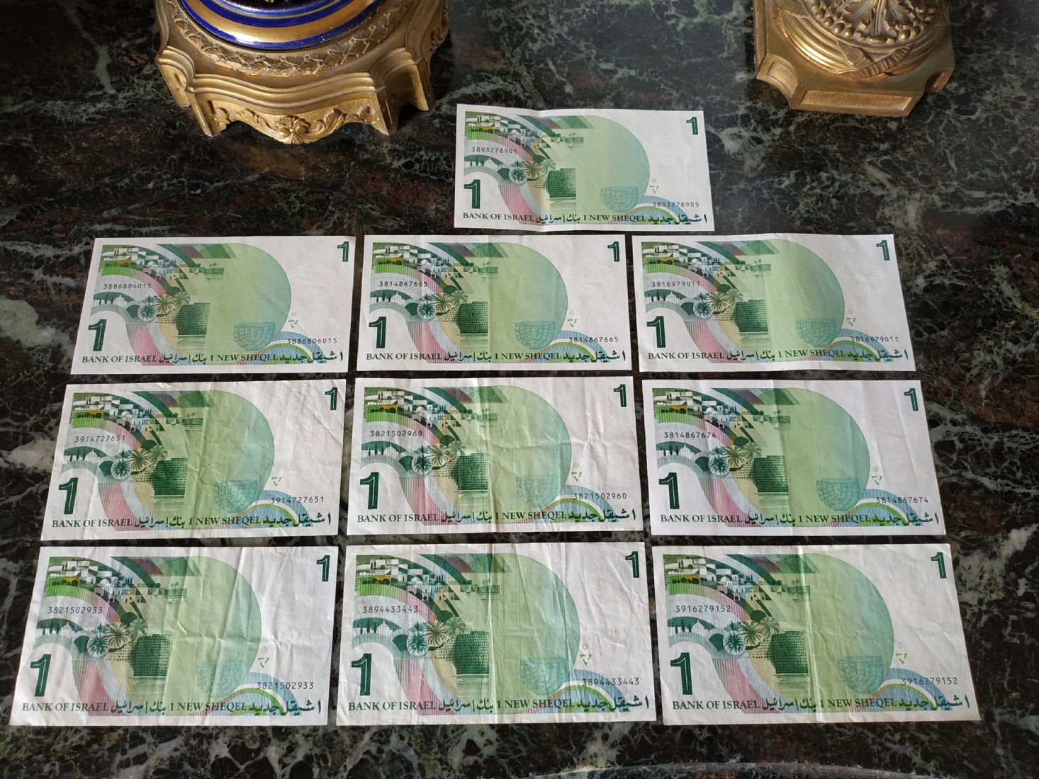 לאספני שטרות כסף - לוט של 10 שטרי כסף ישראלים ישנים.