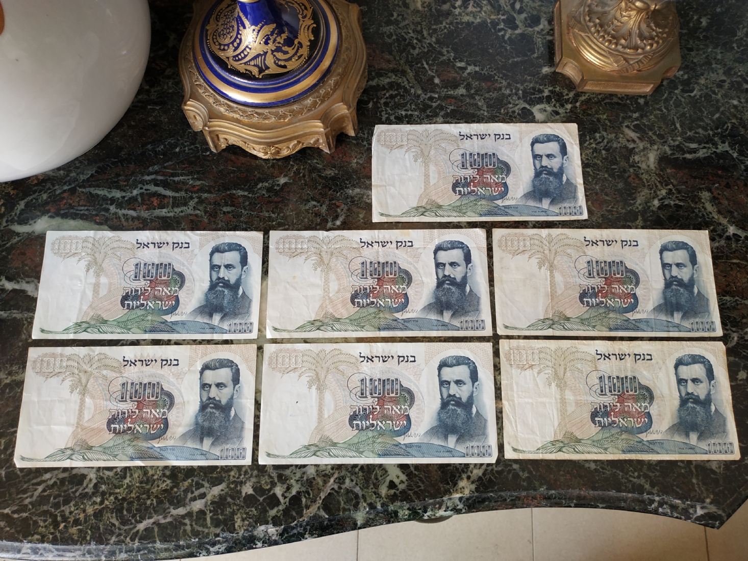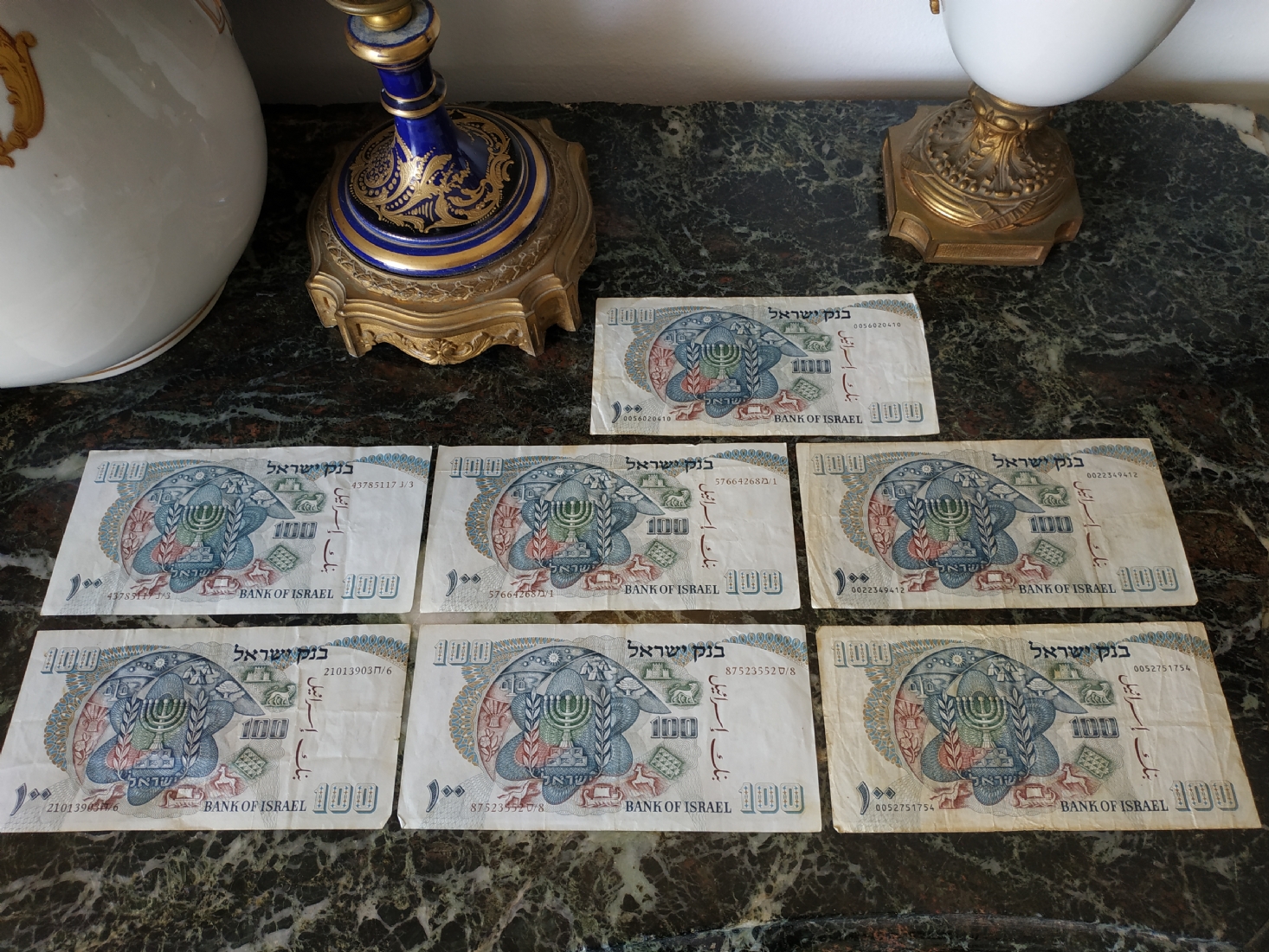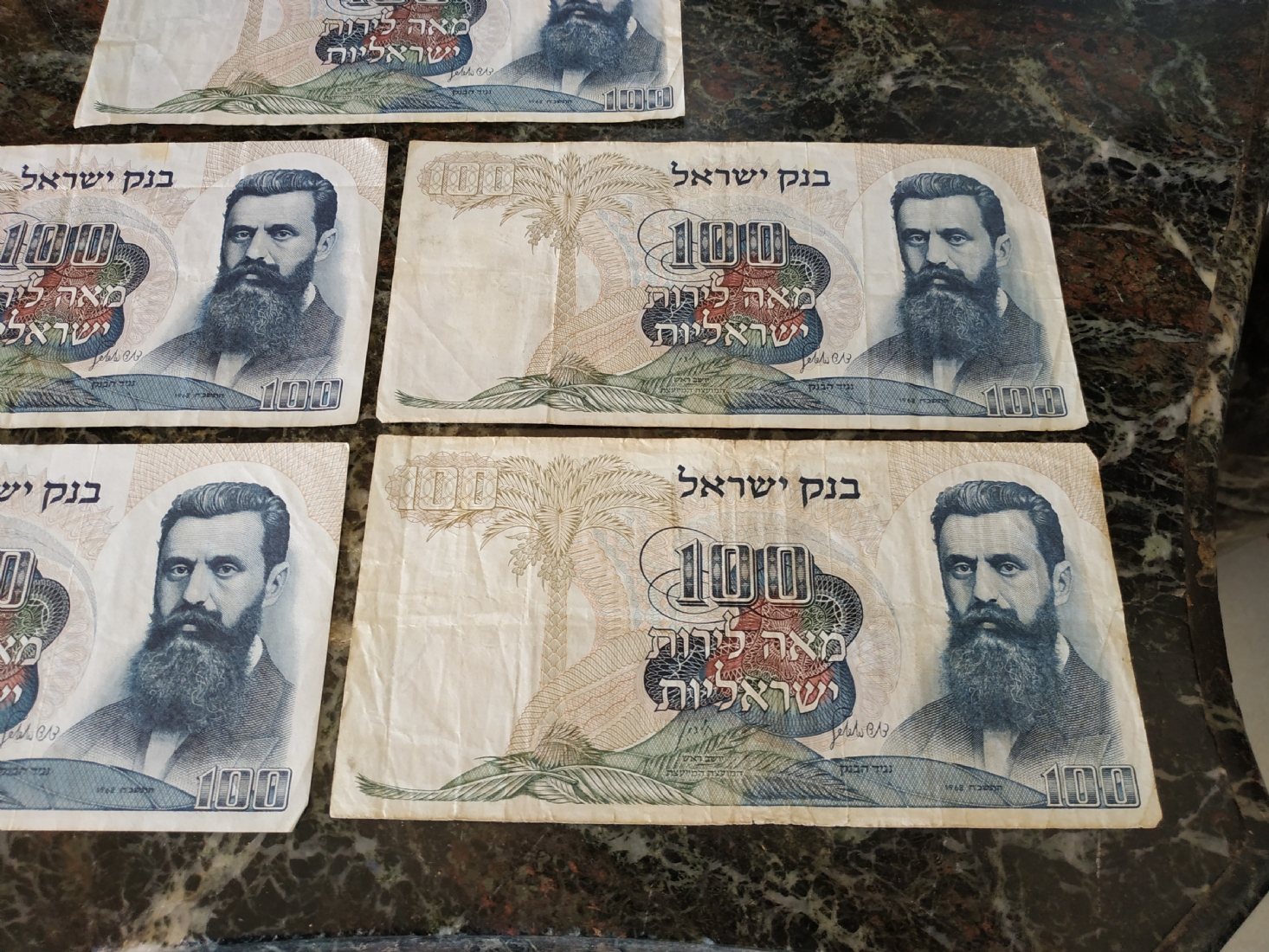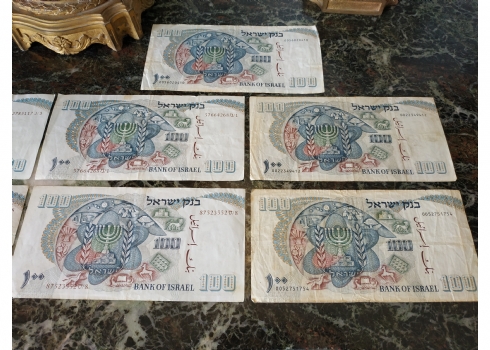 לאספני שטרי כסף ישנים - לוט של 7 שטרות כסף ישראלים ישנים משומשים.